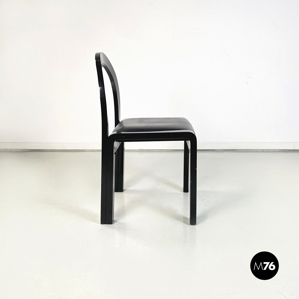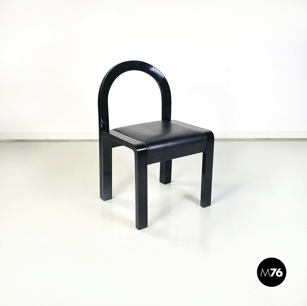 Sedie in legno laccato nero e pelle nera, 1980 ca.