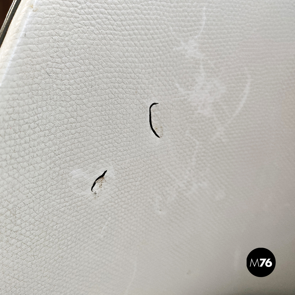 Buone condizioni. La pelle presenta leggeri graffi e leggere macchie. Un sedia presenta due piccoli fori sullo schienale. Graffi dati dall’utilizzo sulle zampe.