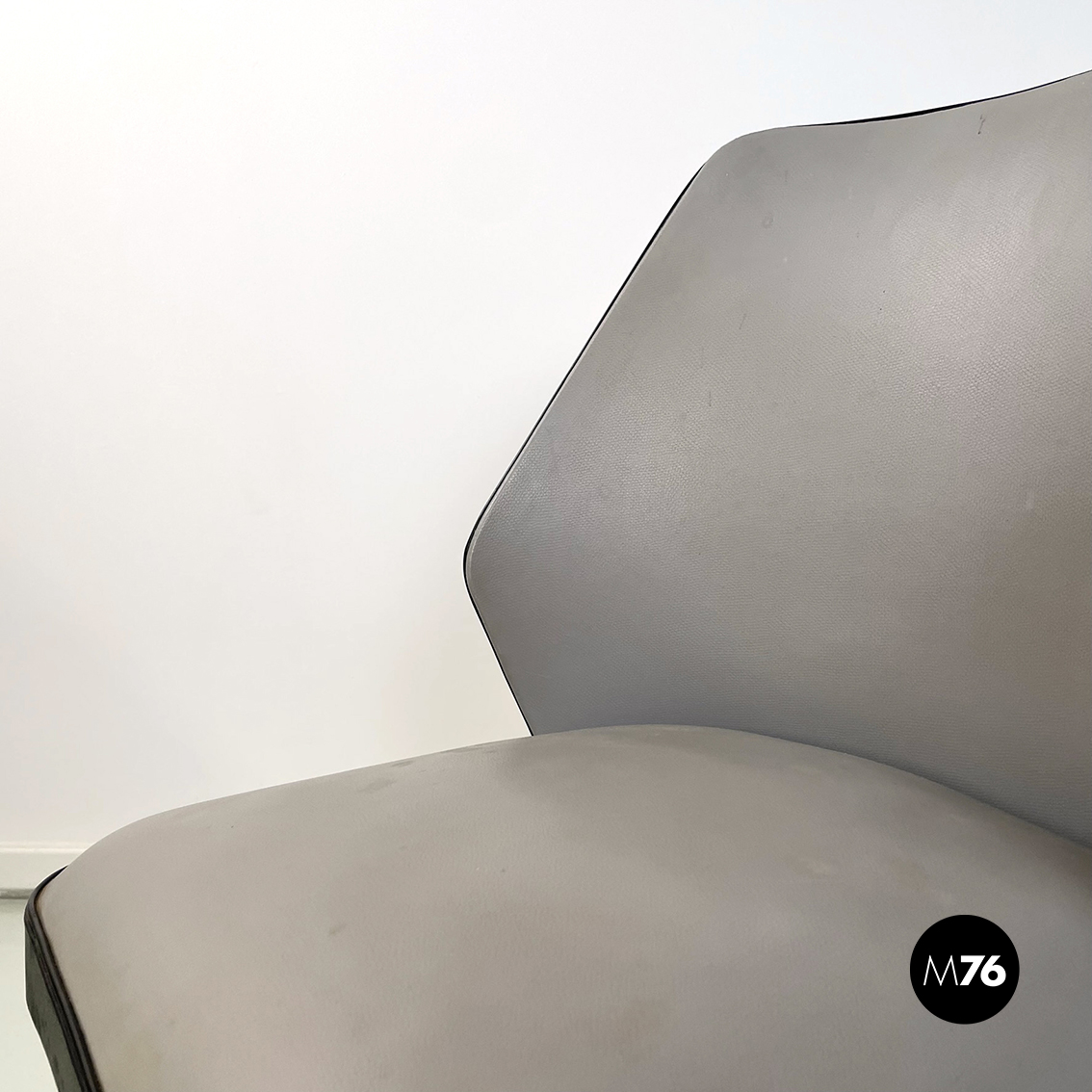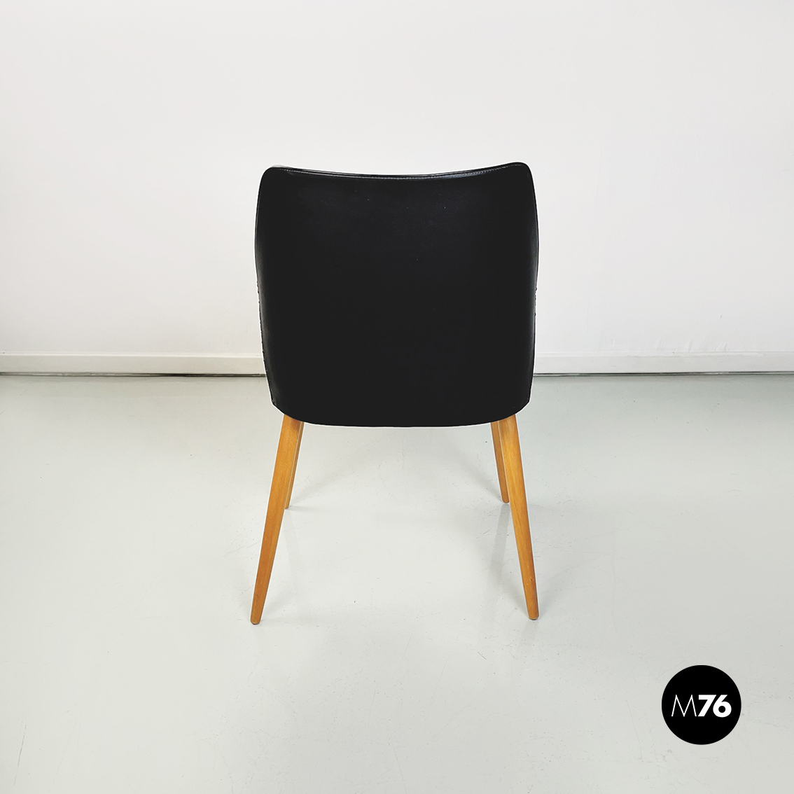 Sedie in legno, pelle nera e grigia, 1980 ca.