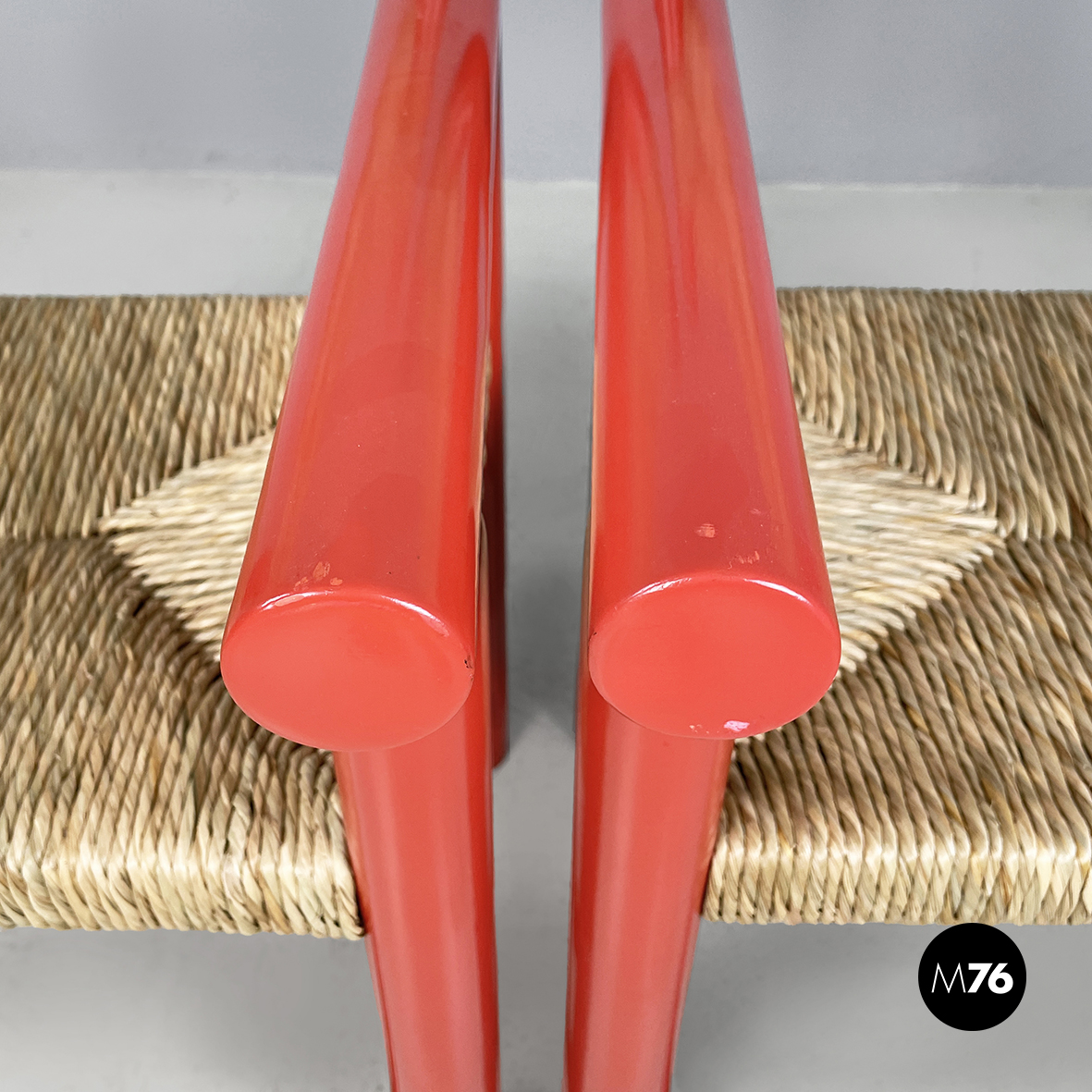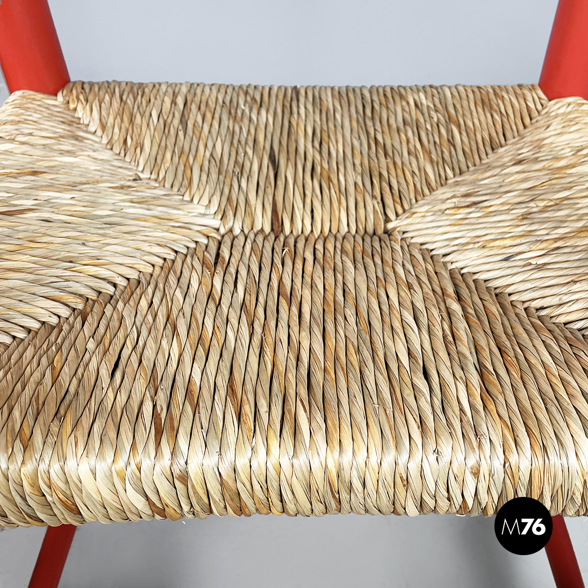 Sedie in legno rosso e paglia, 1970 ca.