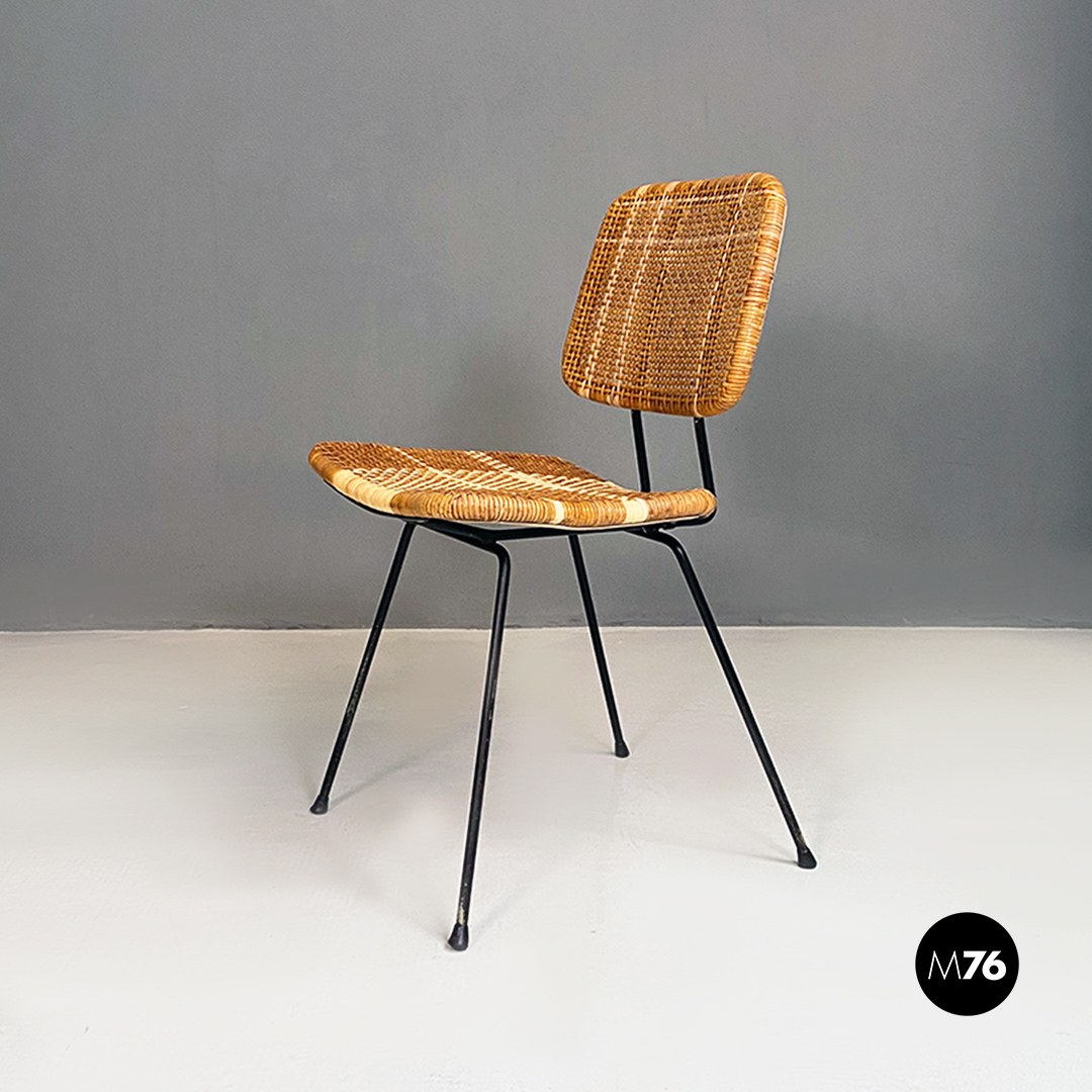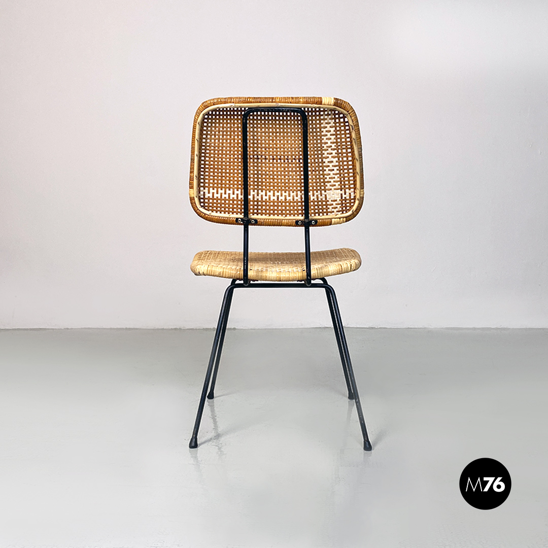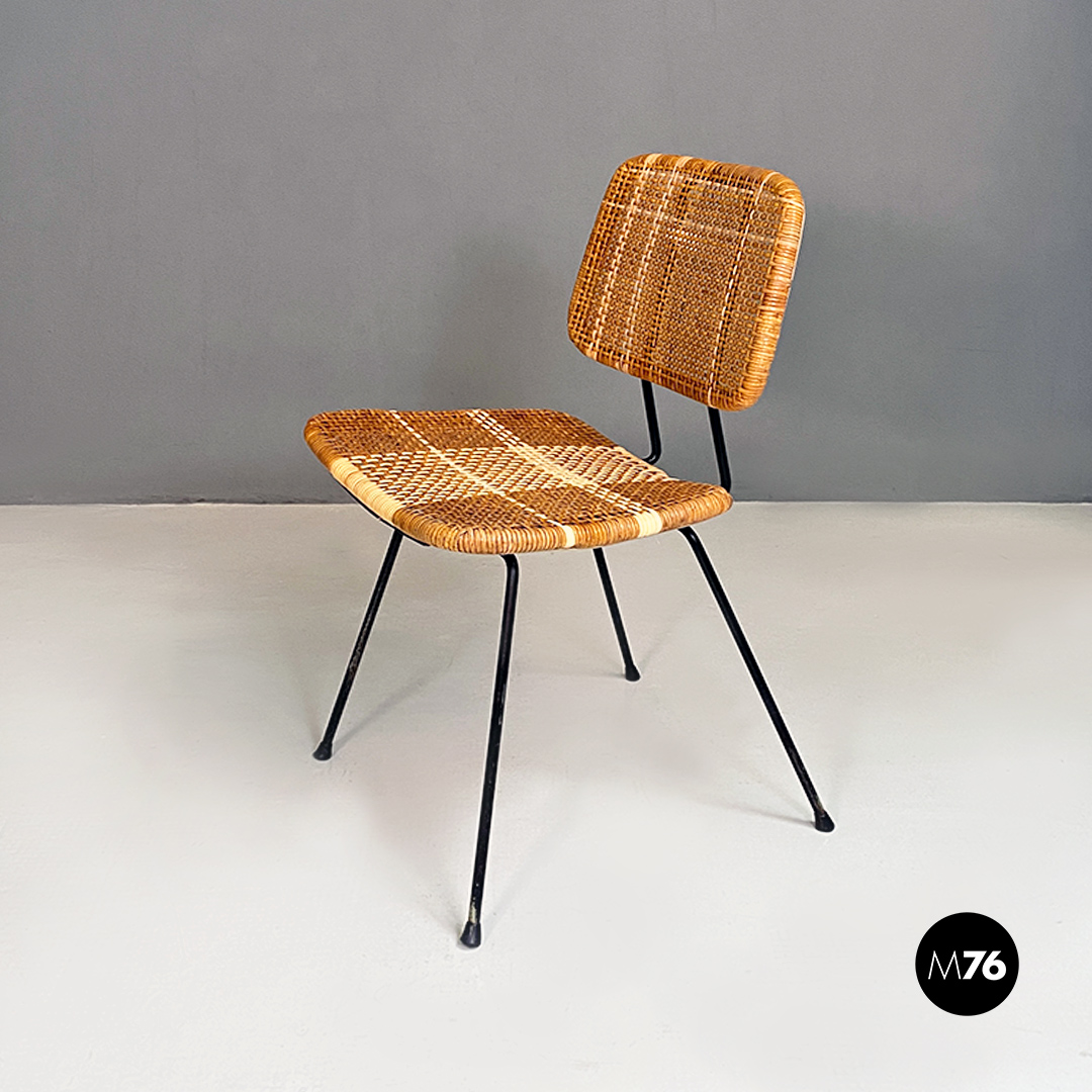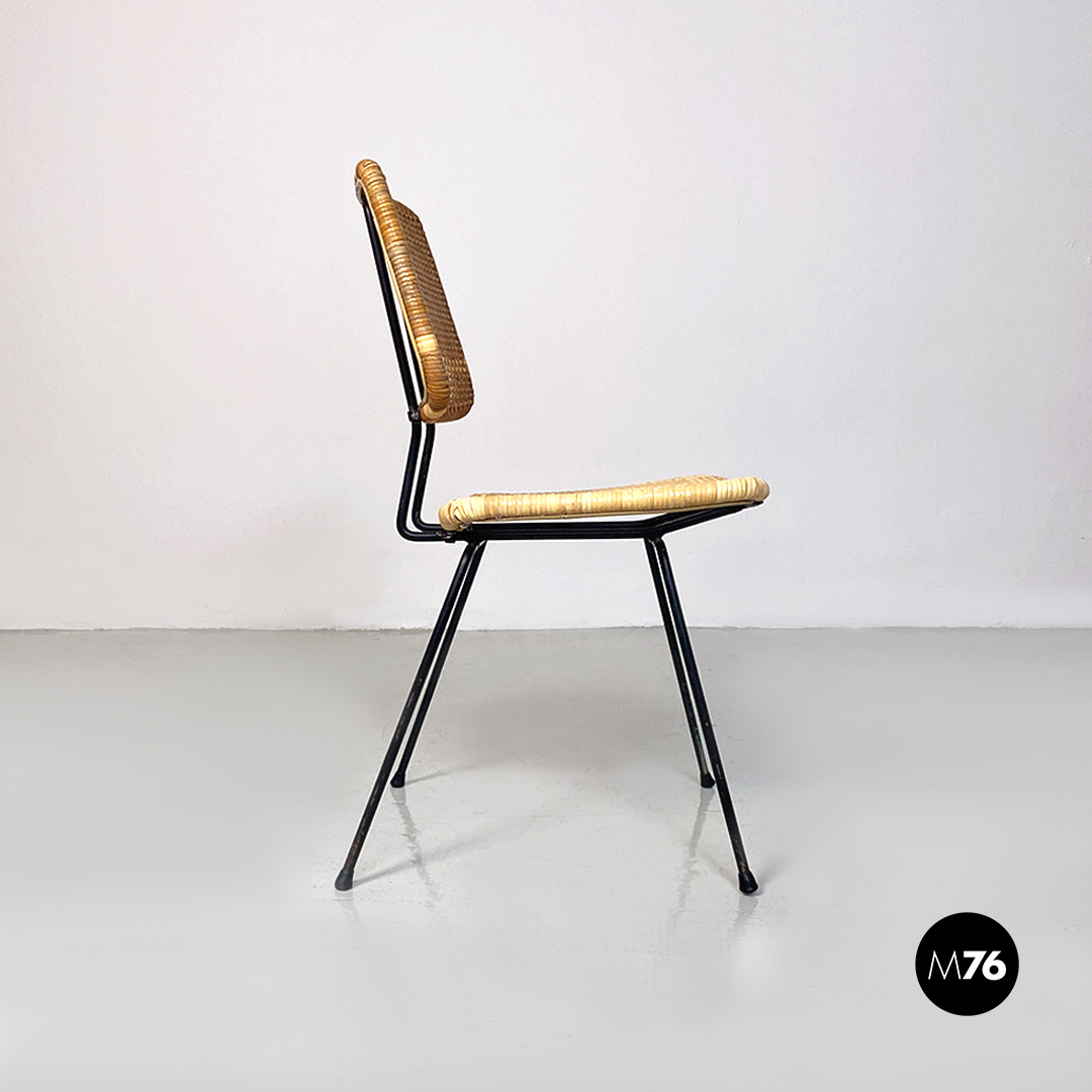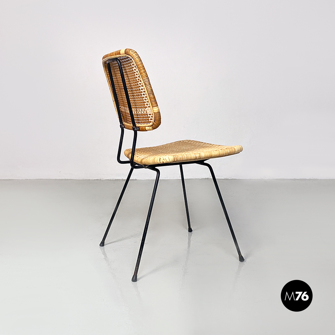 Sedie in metallo e rattan, 1960 ca.