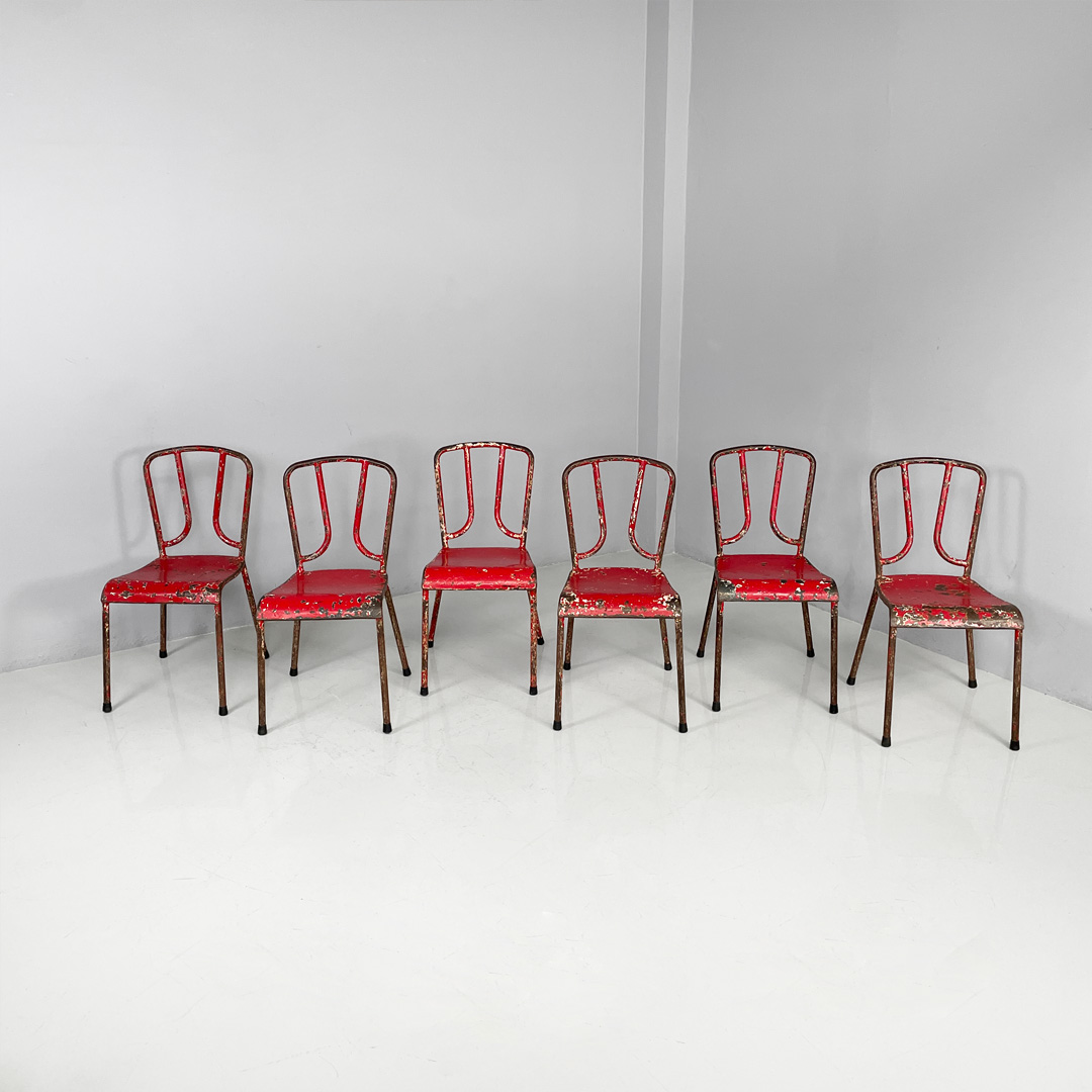 Sedie in metallo rosso, 1940 ca.