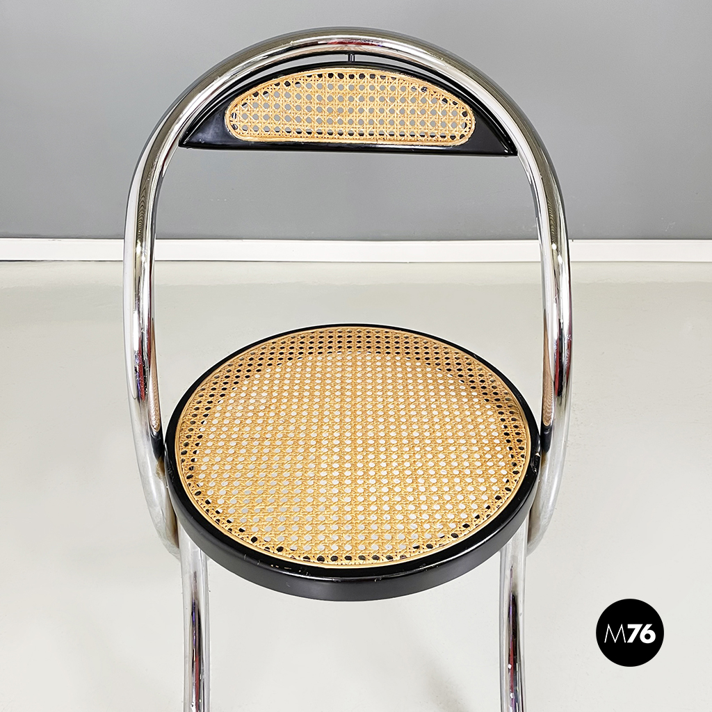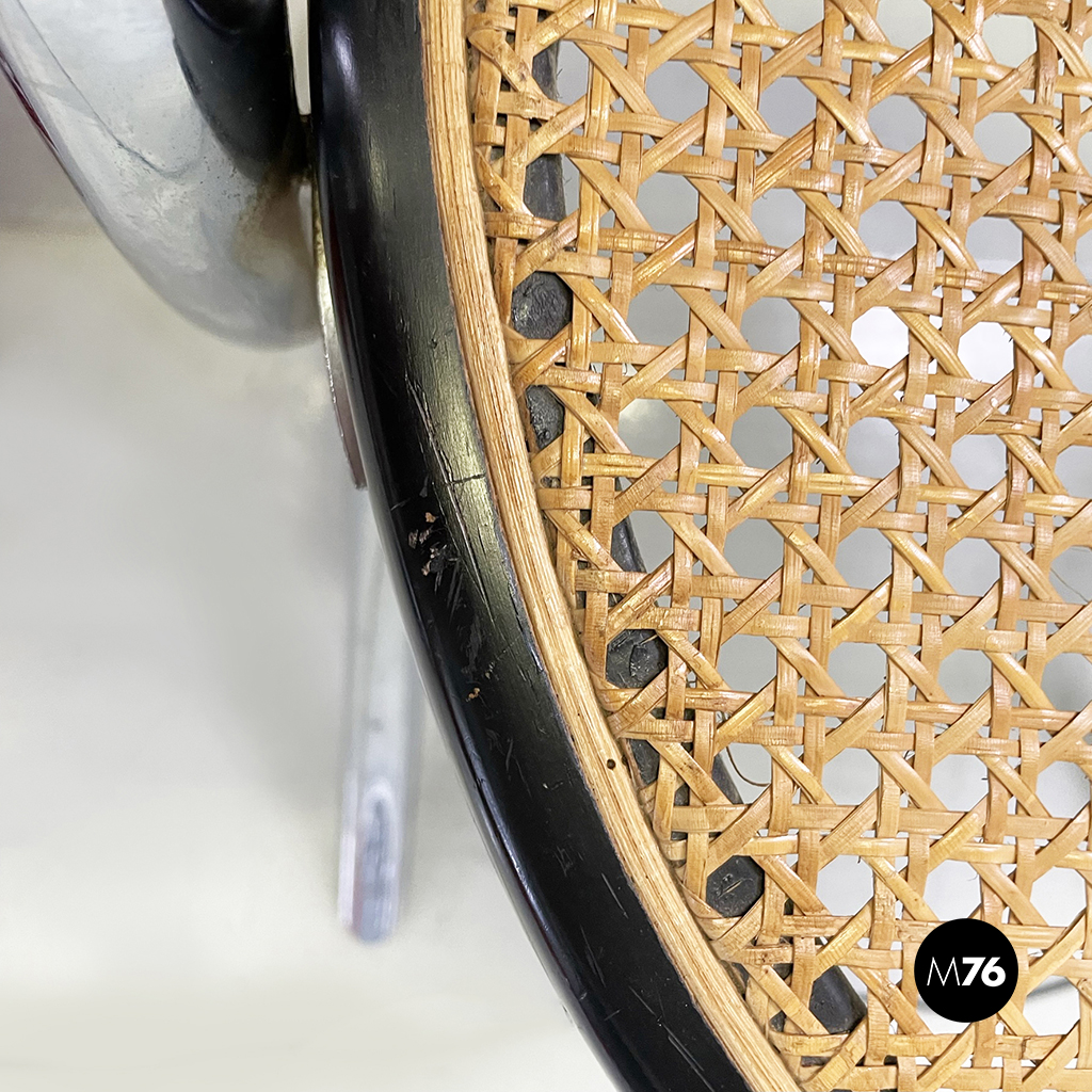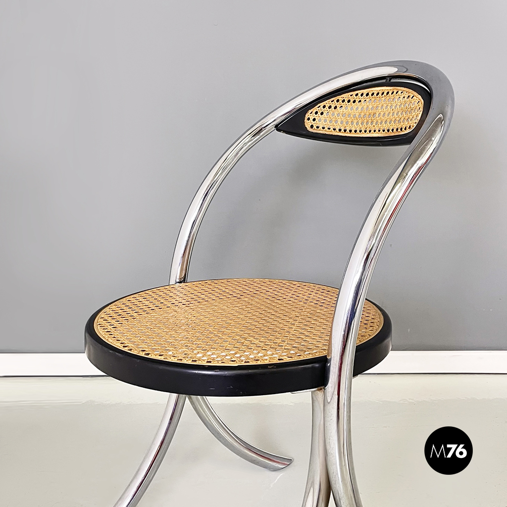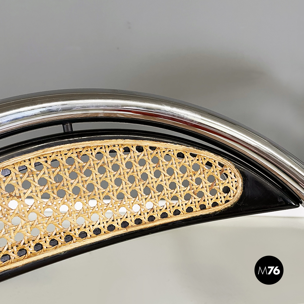 Sedie in paglia, acciaio e legno nero, 1970 ca.