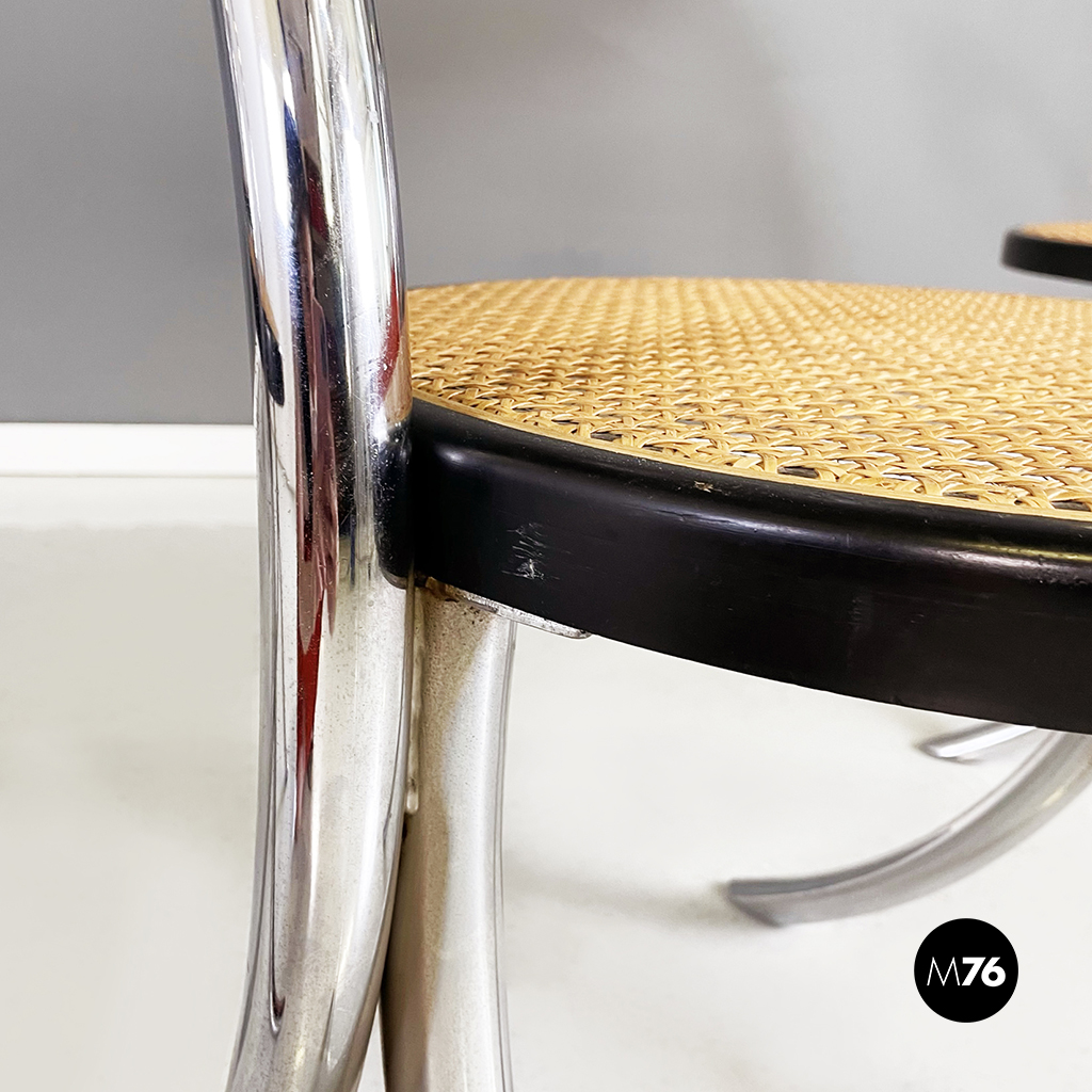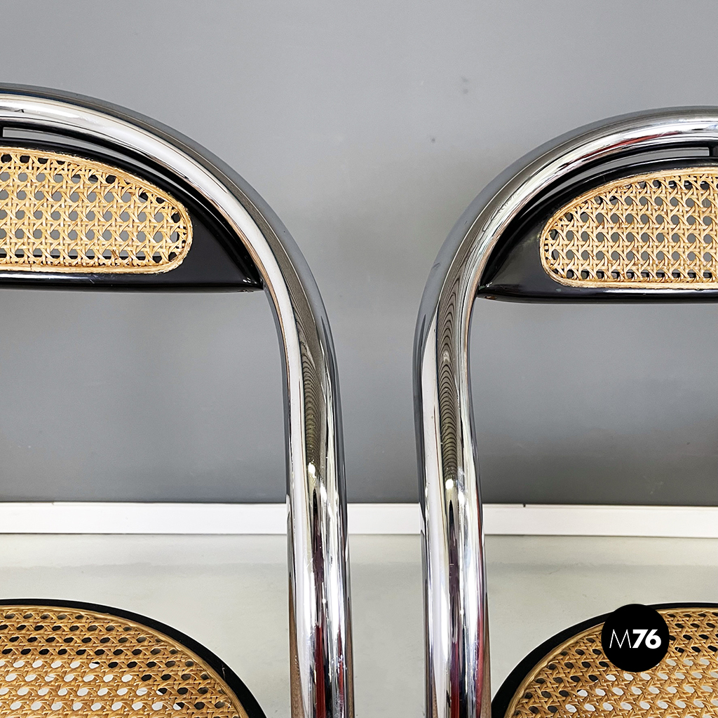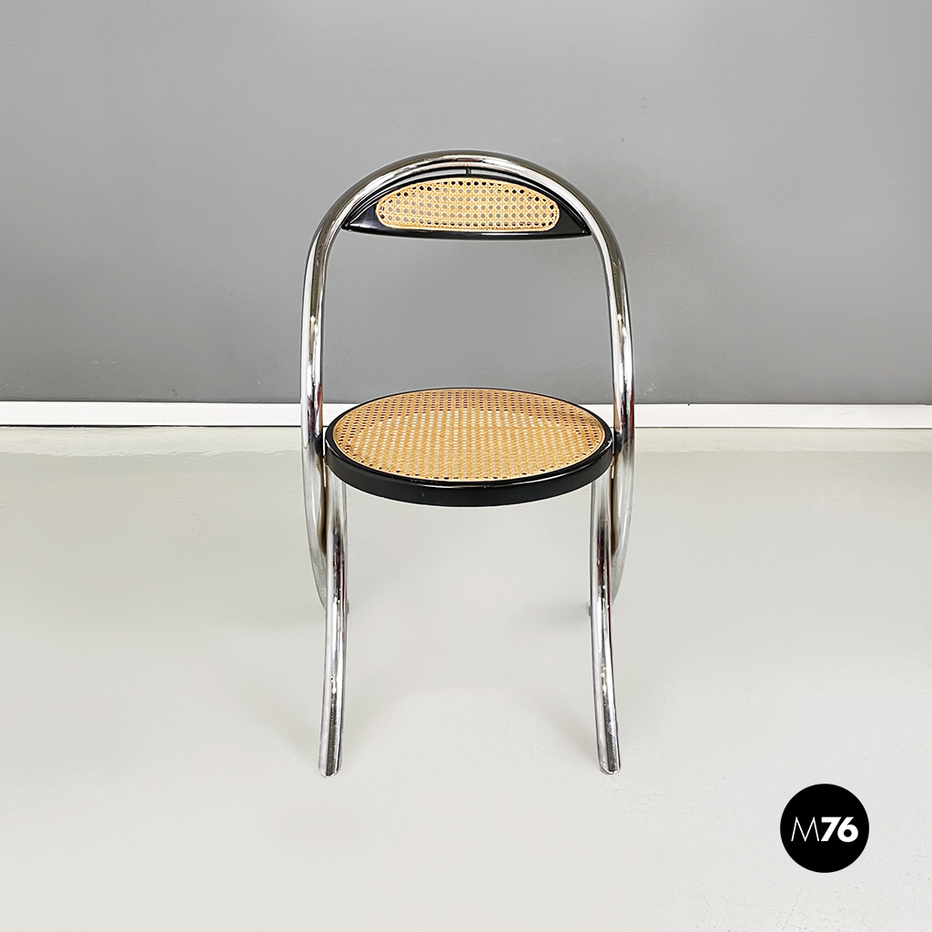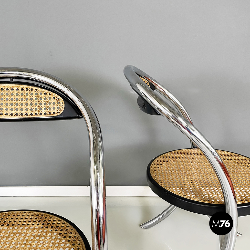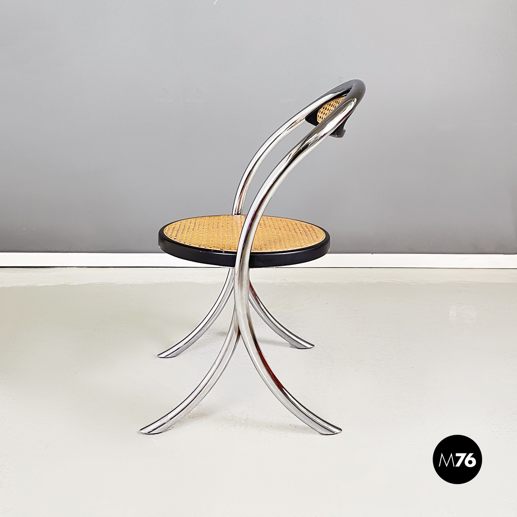Sedie in paglia, acciaio e legno nero, 1970 ca.