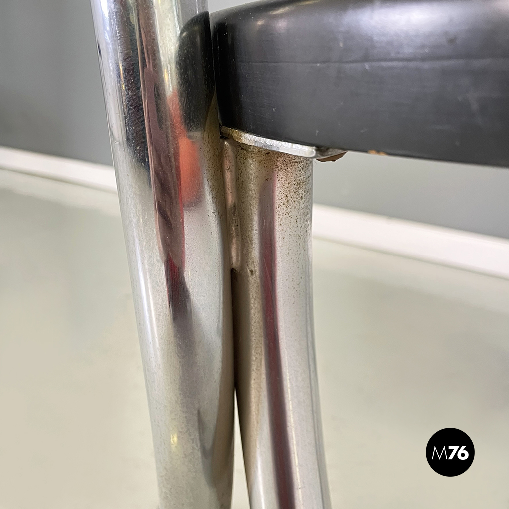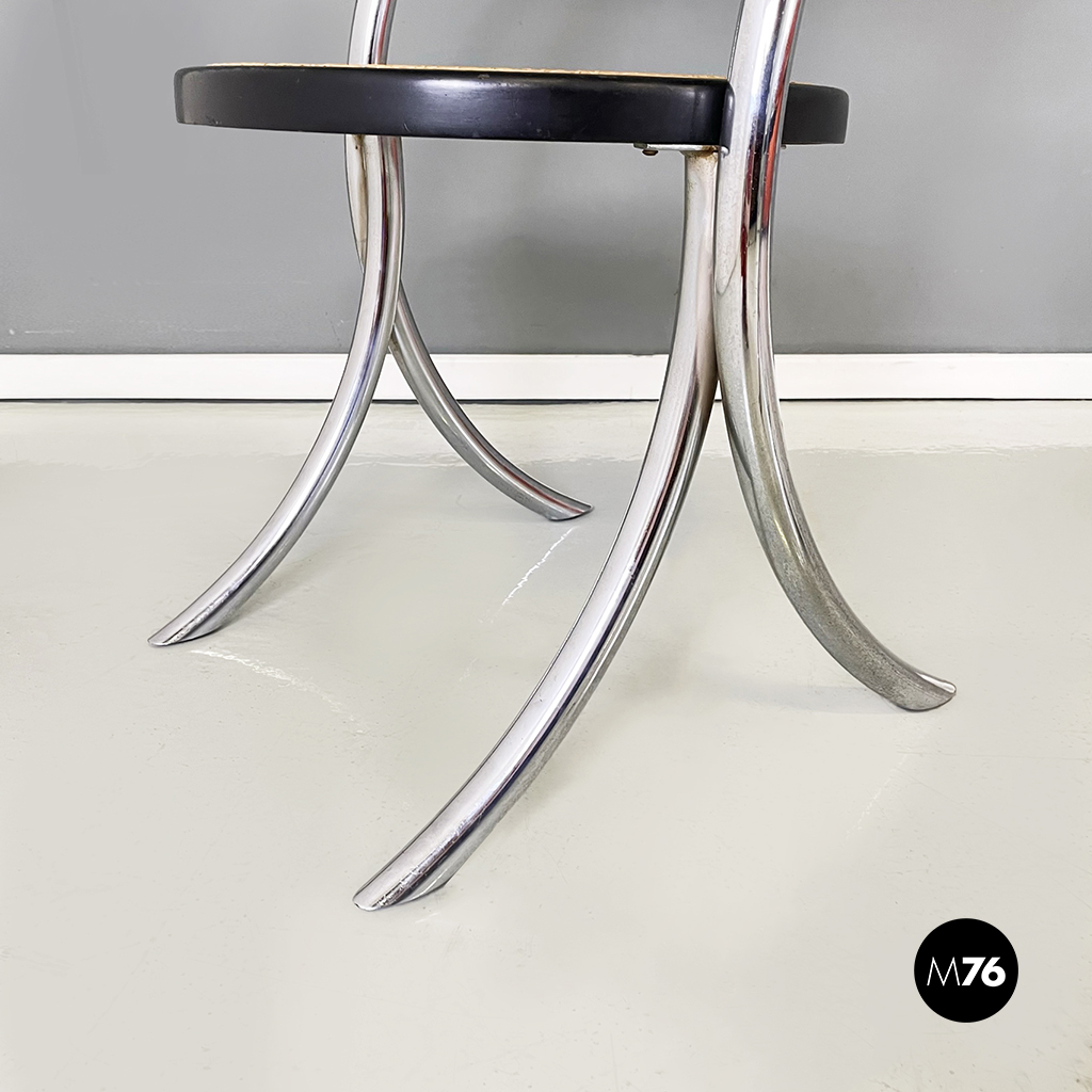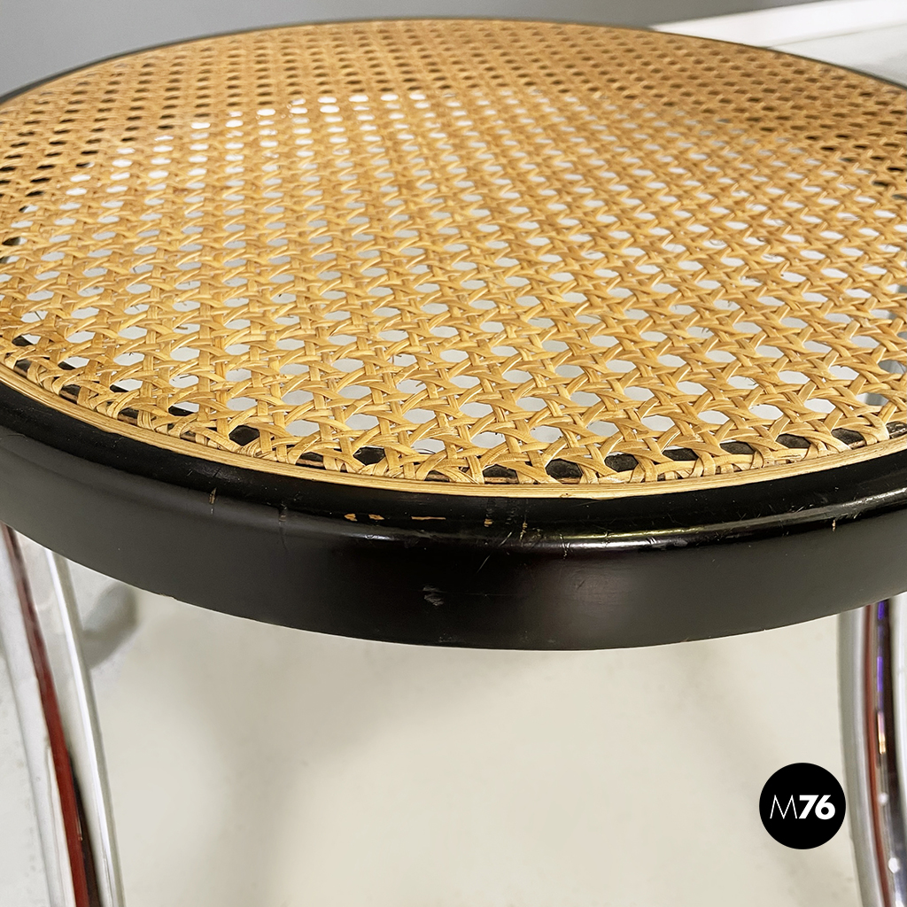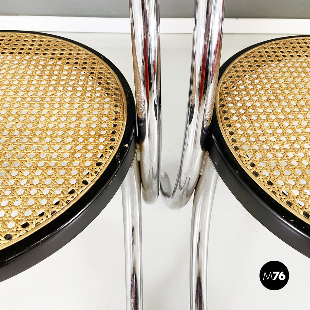 Sedie in paglia, acciaio e legno nero, 1970 ca.
