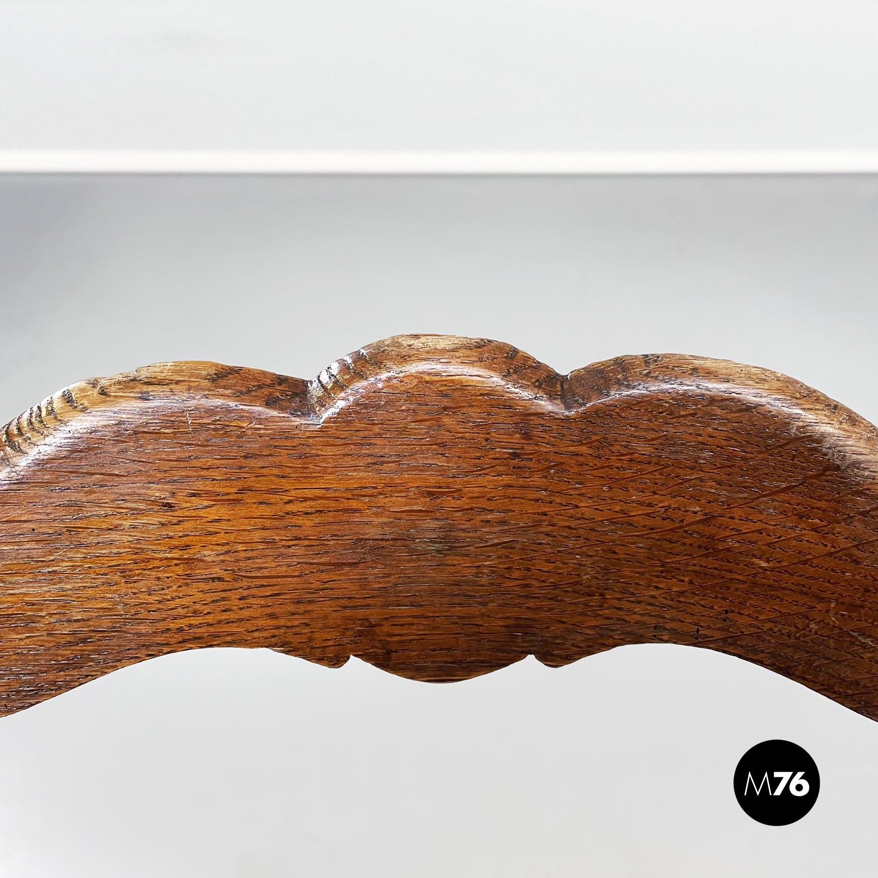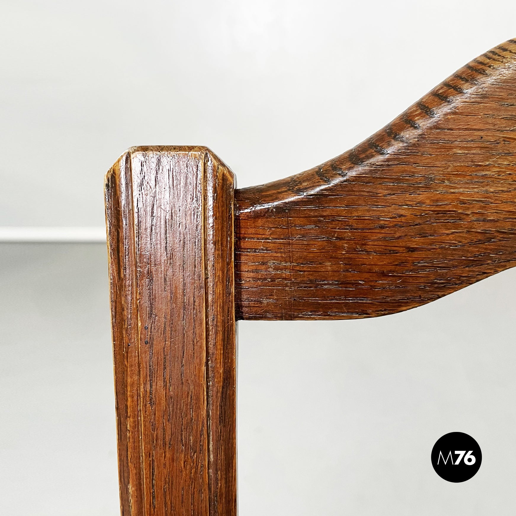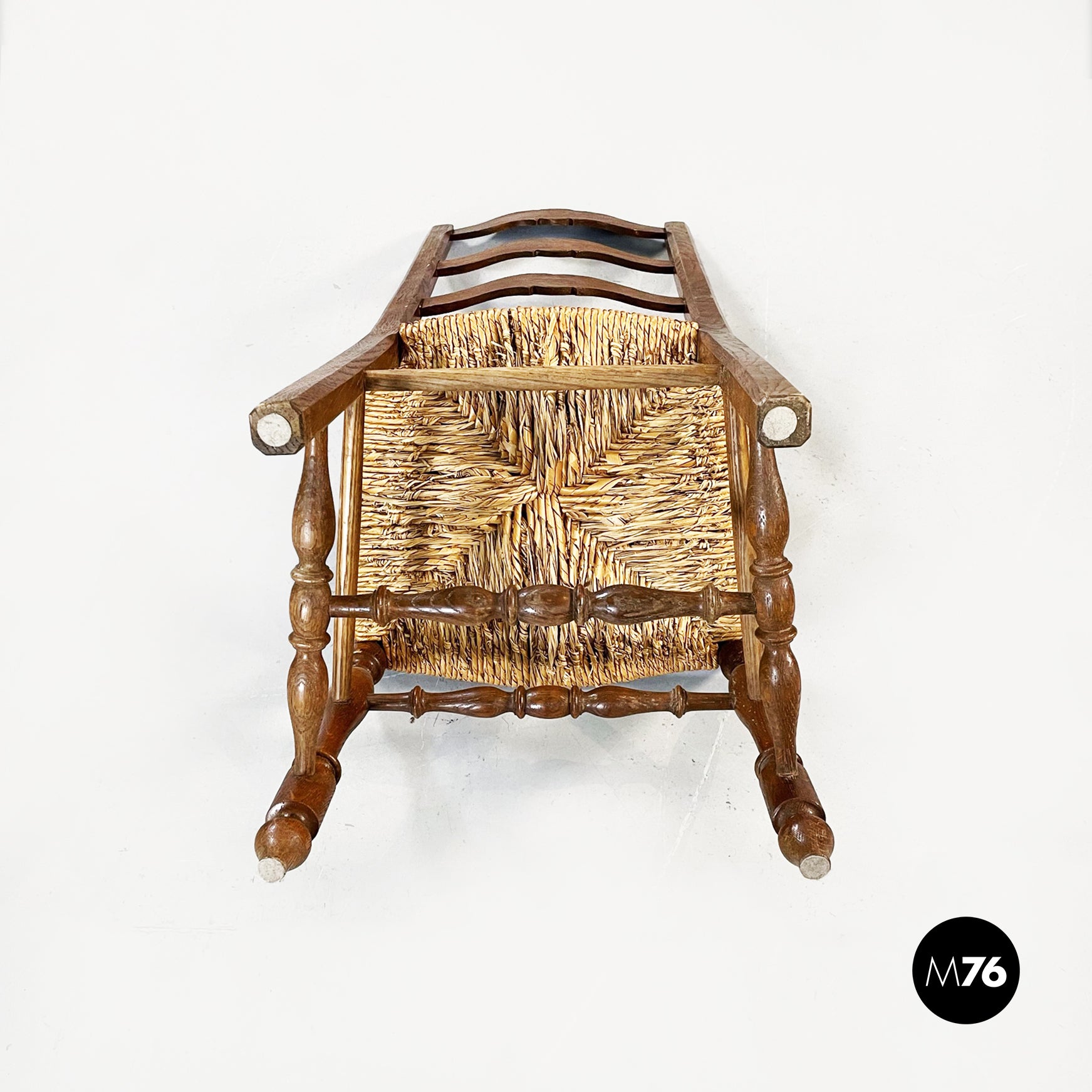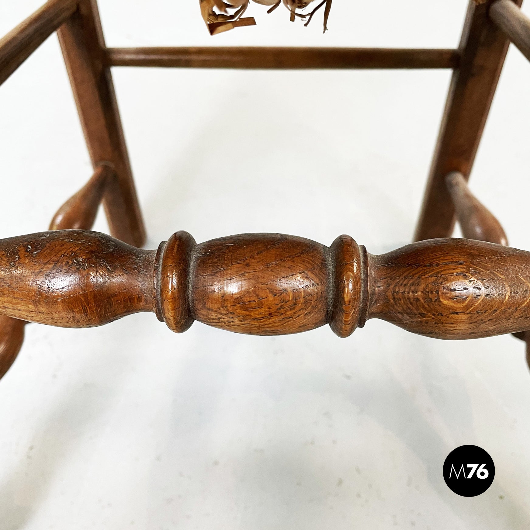 Set di sei sedie con seduta quadrata in paglia e struttura in legno finemente lavorata.