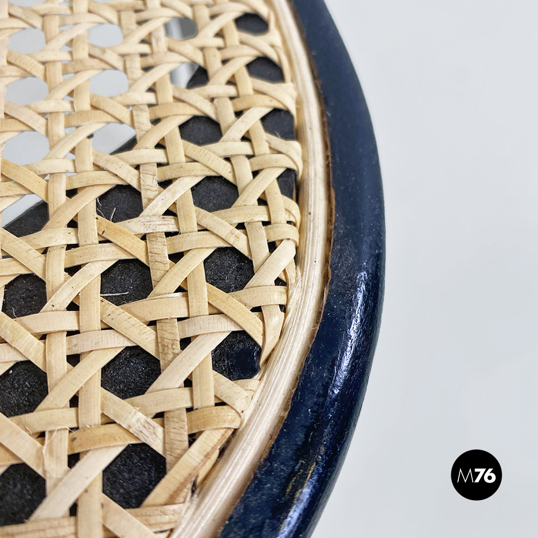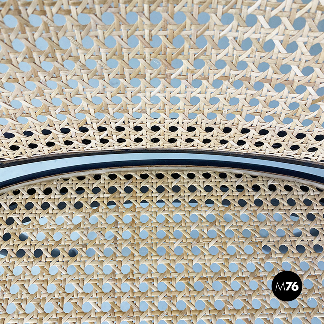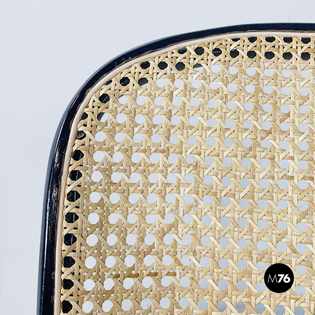 Set di otto sedie con seduta e schienale con angoli arrotondati in legno verniciato nero e in paglia di Vienna zampe a sezione tonda sempre in legno verniciato nero.