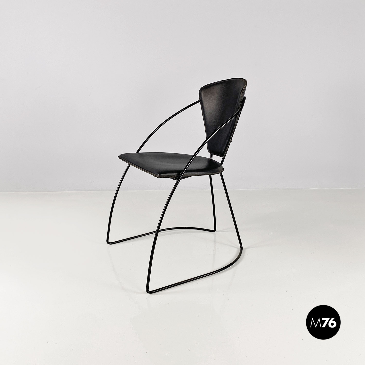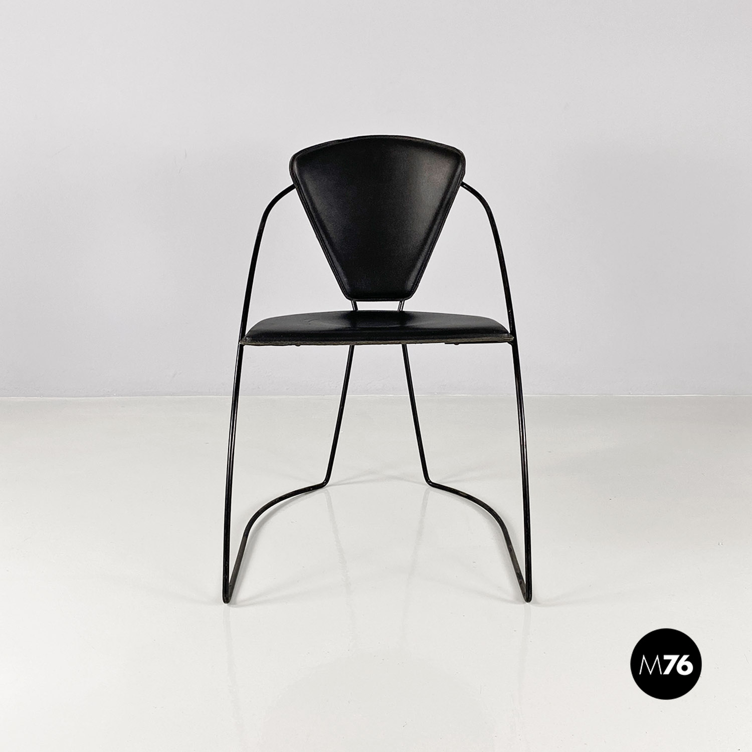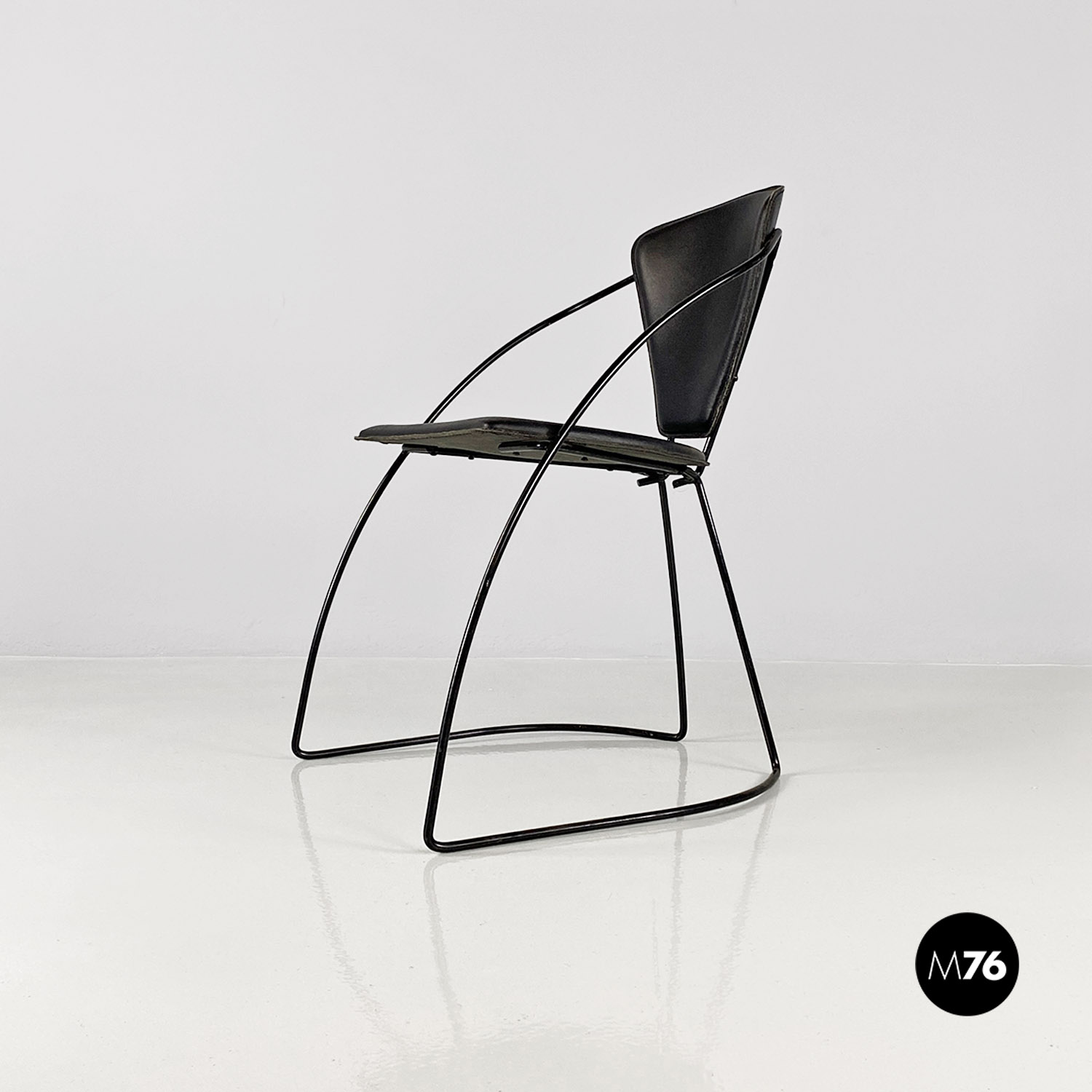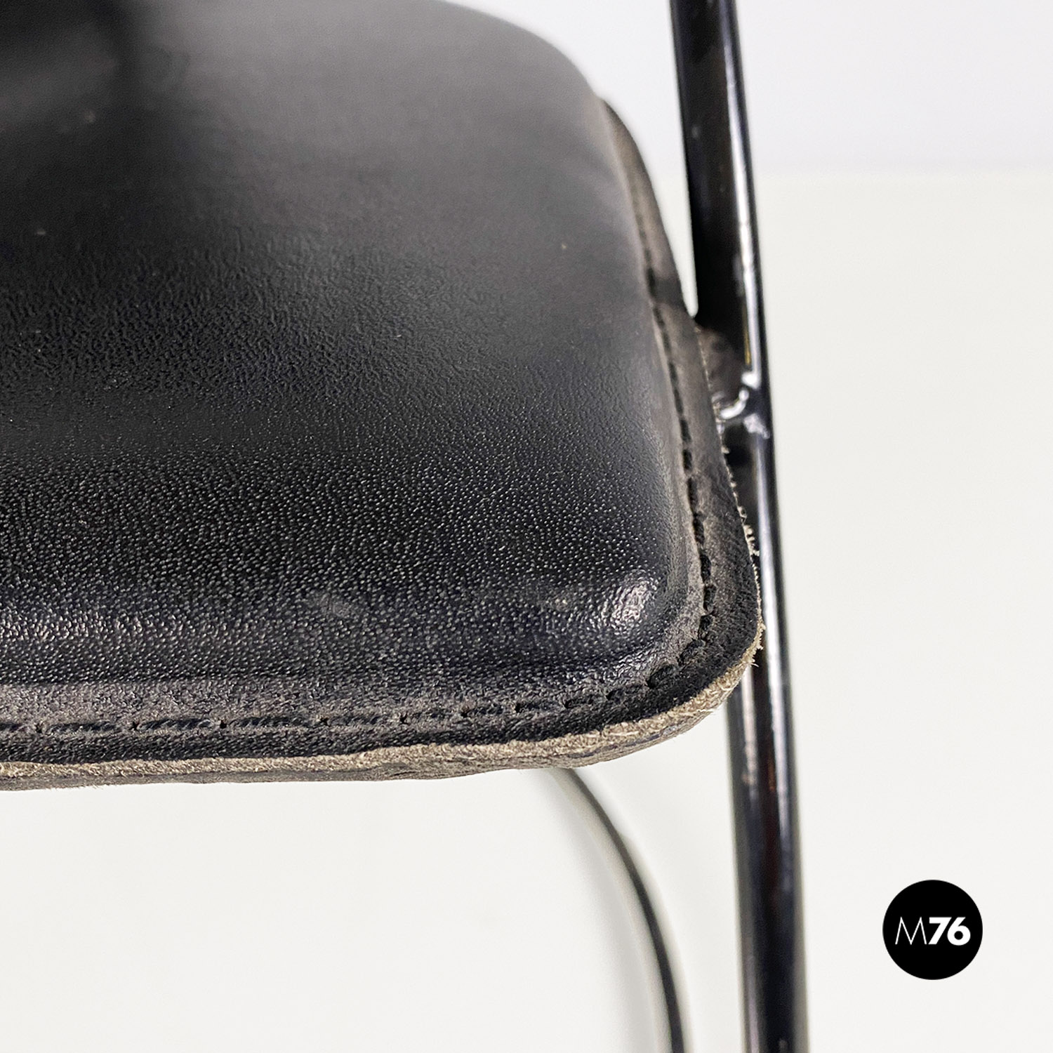 Sedie in pelle e metallo verniciato nero, 1980 ca.