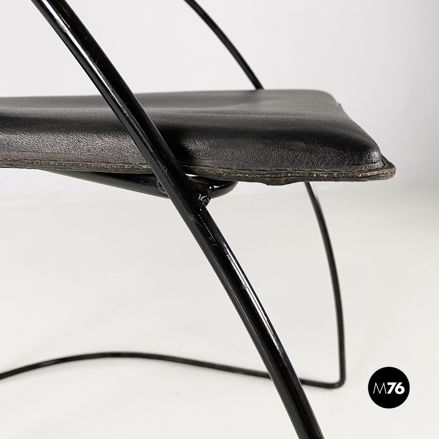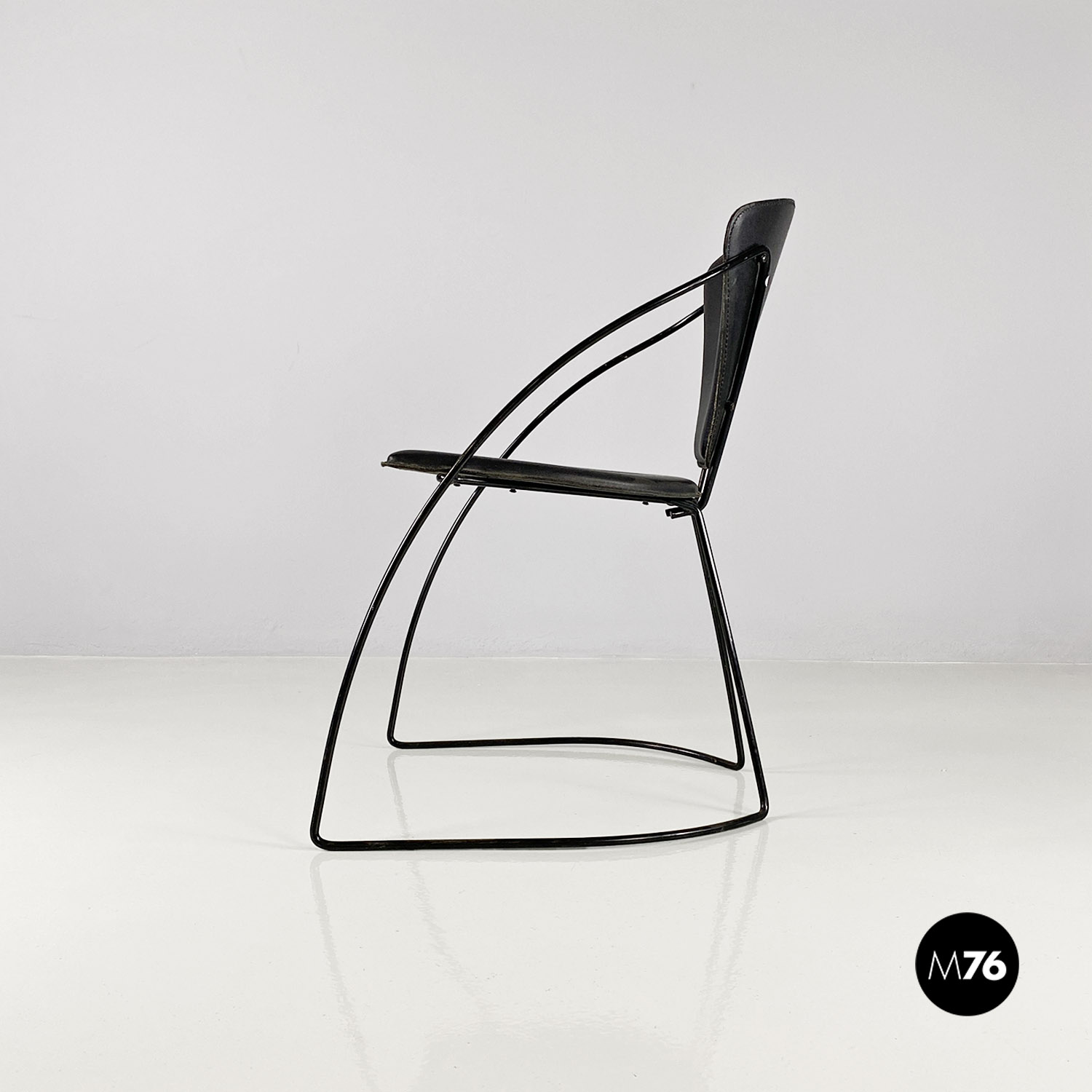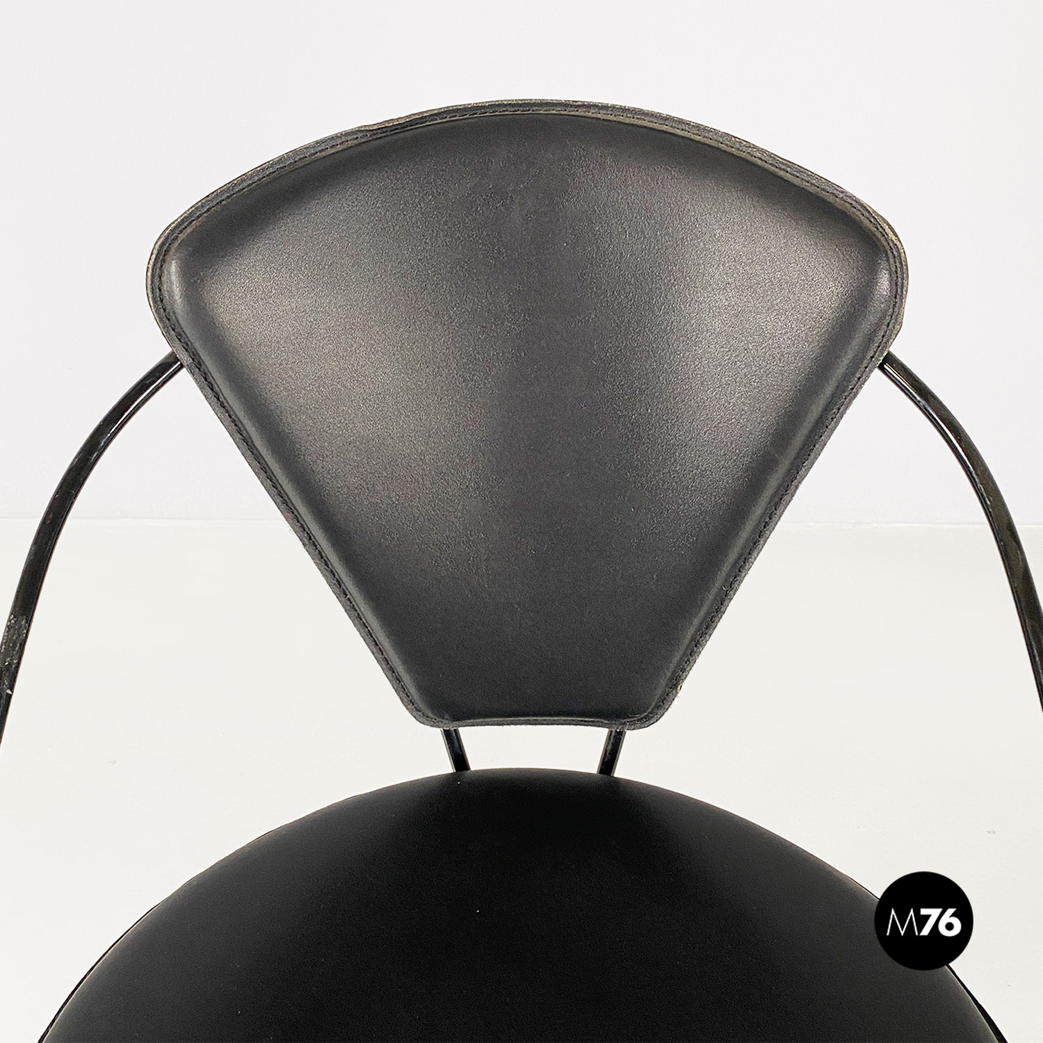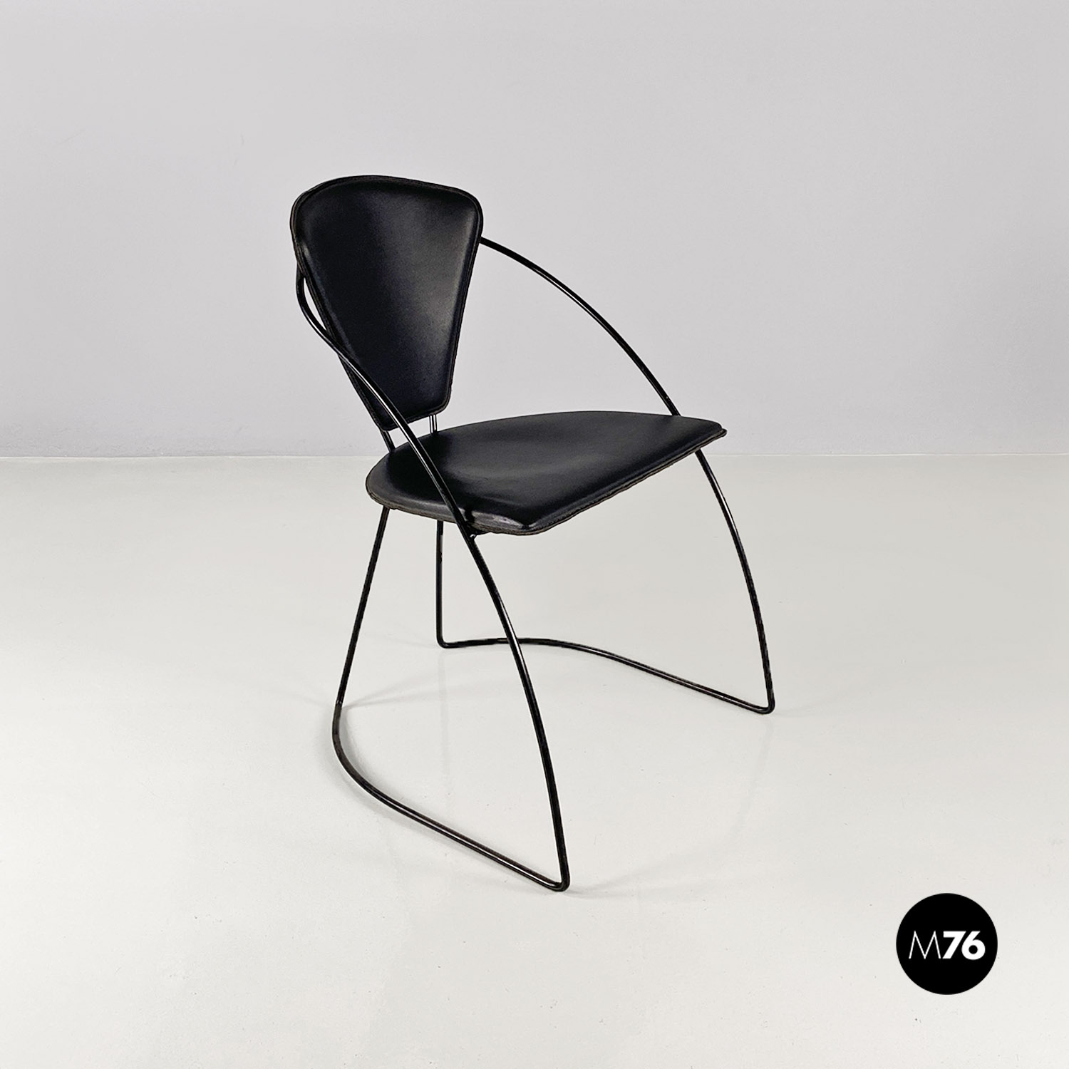 Sedie in pelle e metallo verniciato nero, 1980 ca.