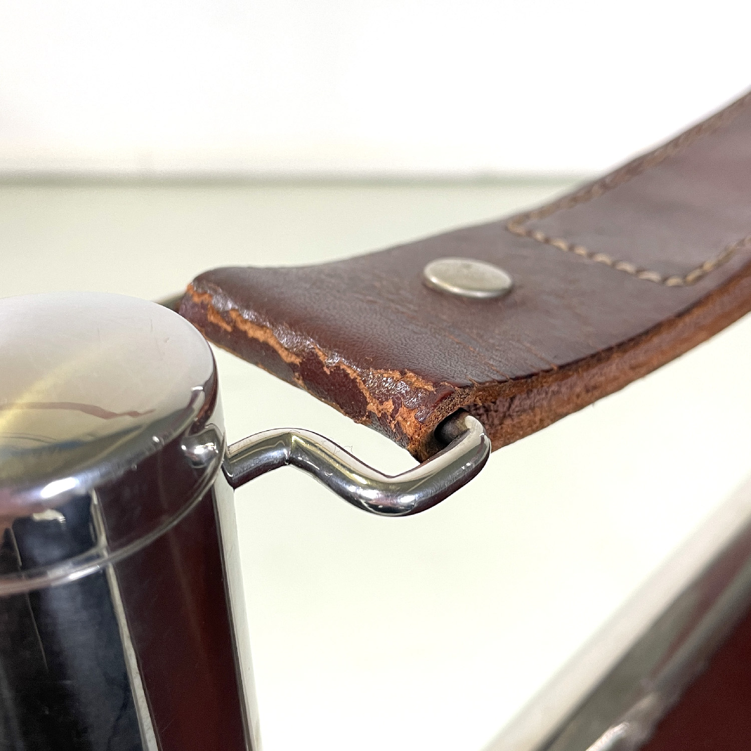 Good condition with signs of use and aging on the leather and structure.