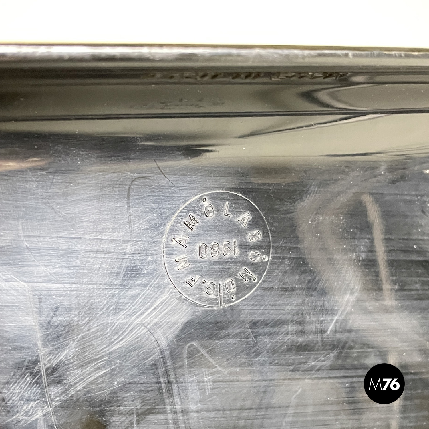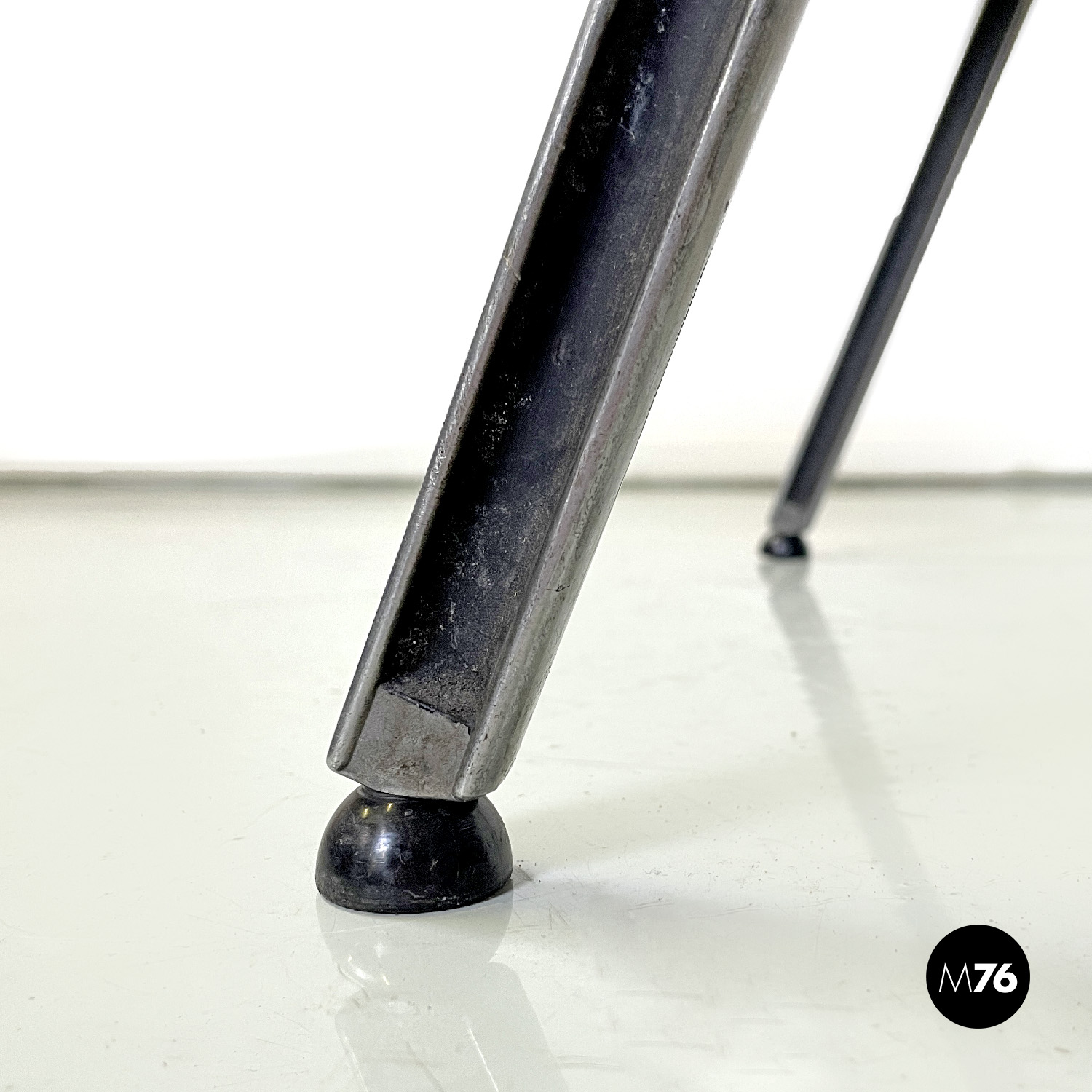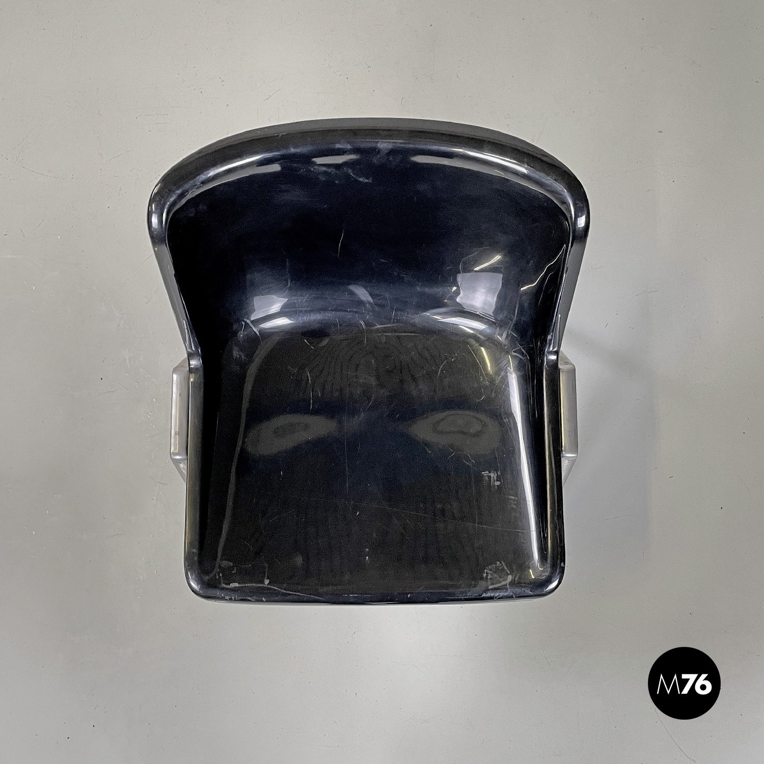 Prodotte da Tecno nel 1980 ca. e disegnate da Osvaldo Borsani nel 1973. Logo dell’azienda impresso su un fianco e sullo schienale dove si trova anche un’etichetta con il numero di serie di ciascuna sedia. Un’ulteriore logo con il nome del modello è presente sotto la seduta.