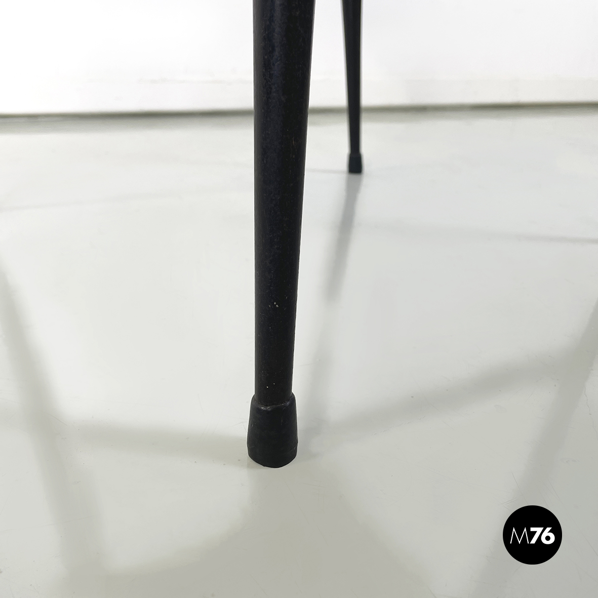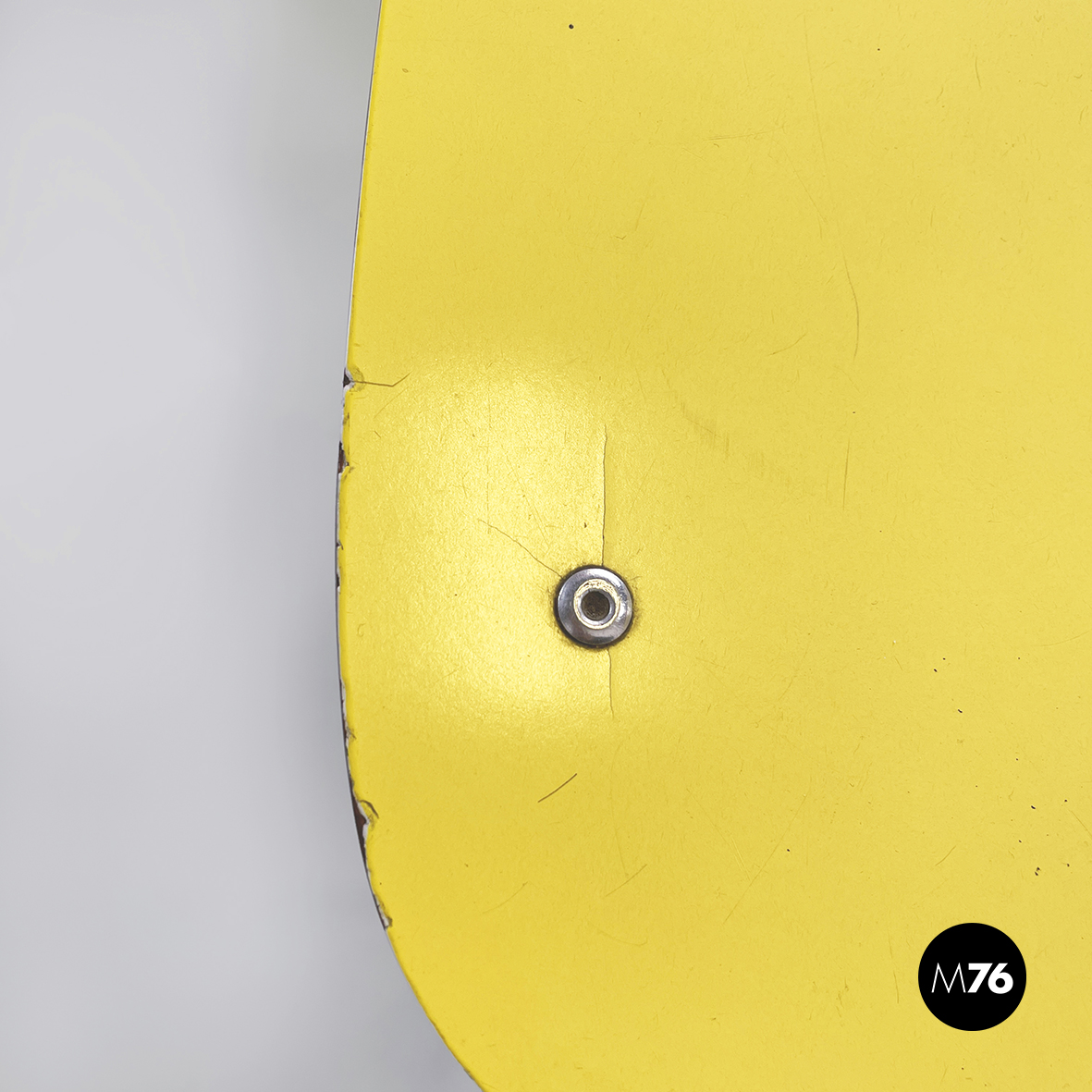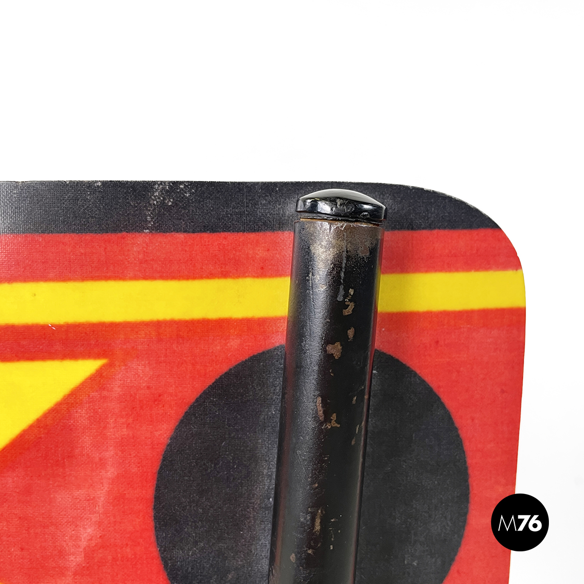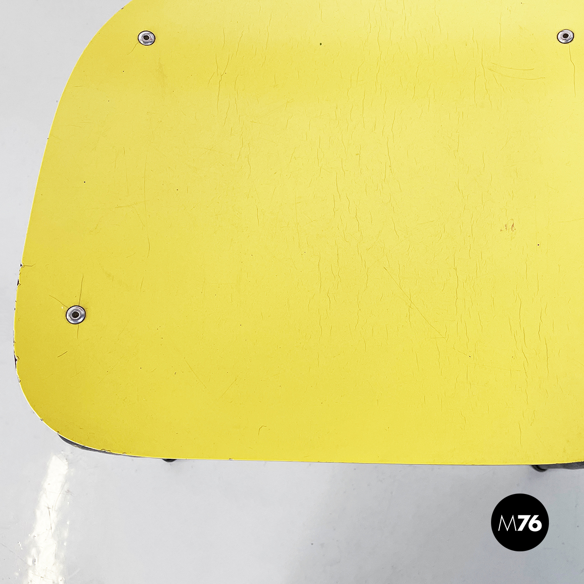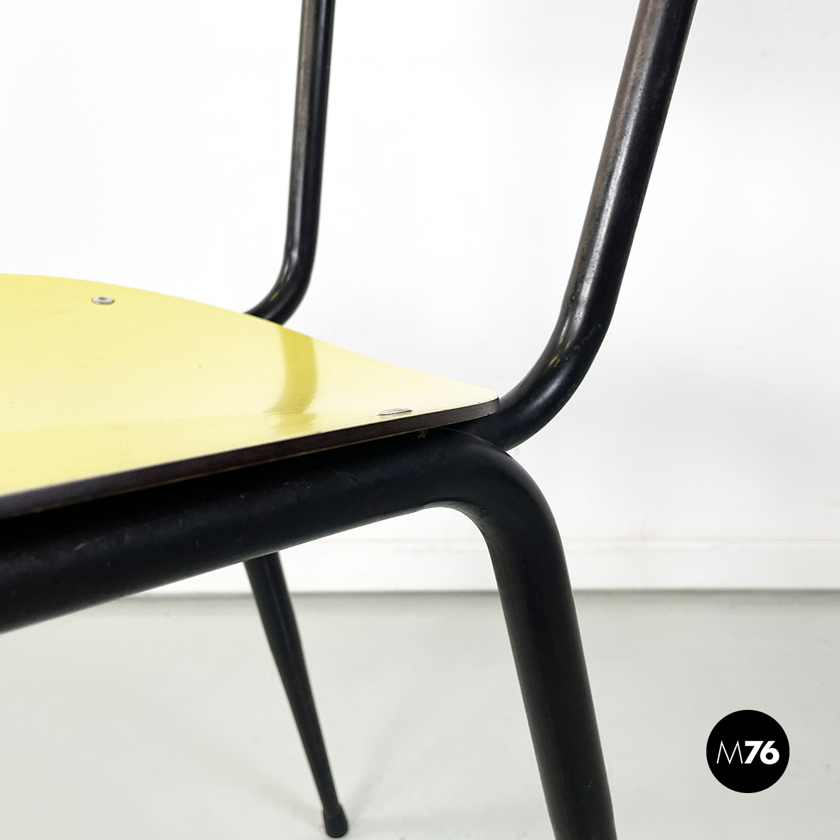 Set di sei sedie appartenente all’edizione limitata del Gran Cafè Paulista di Lavazza. La seduta squadrata ad angoli arrotondati in formica giallo brillante mentre lo schienale rettangolare in formica presenta il pattern geometrico in giallo rosso e nero della marca di caffè. Struttura in tubolare di metallo verniciato nero.