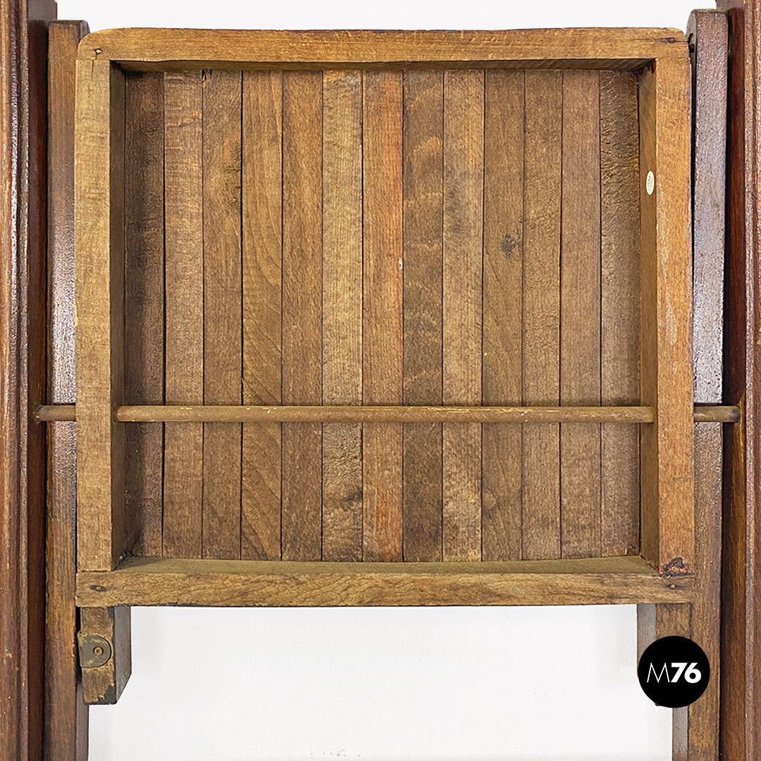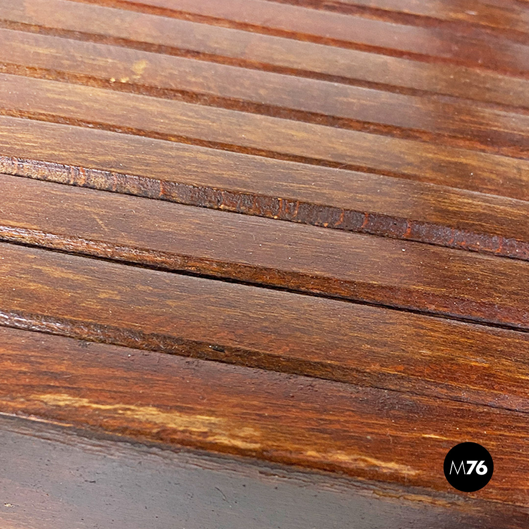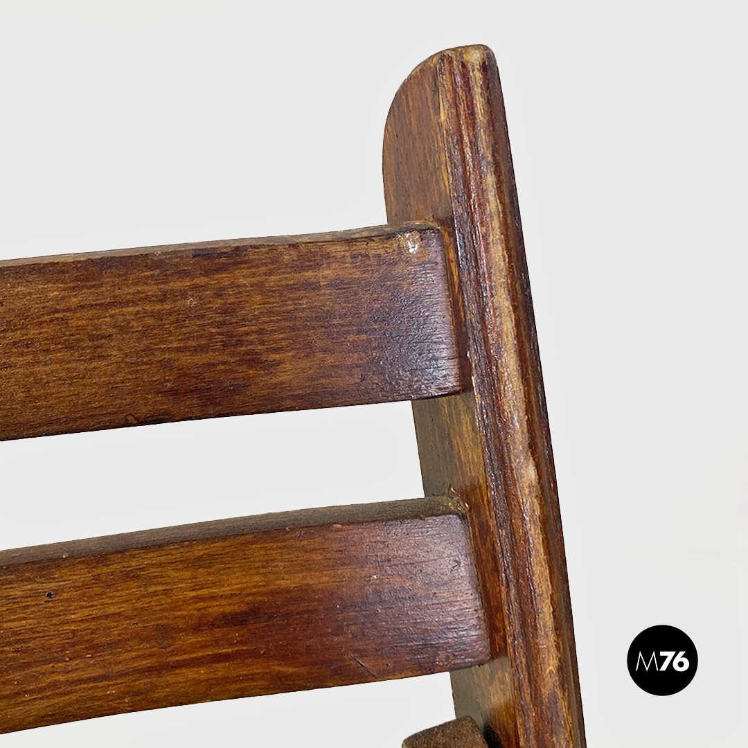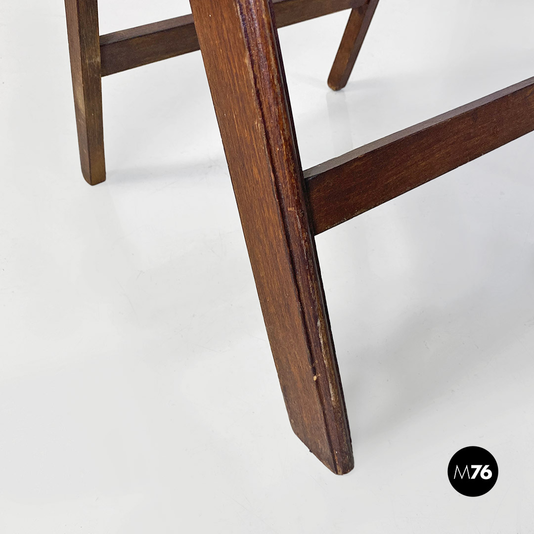 Set di tre sedie pieghevoli con struttura in legno massello di teak con seduta a listelli e doppio listello leggermente curvo sullo schienale.