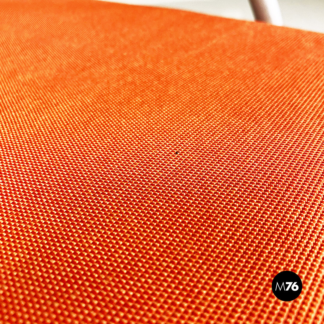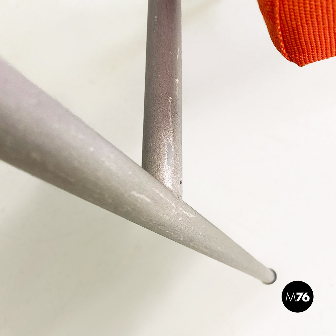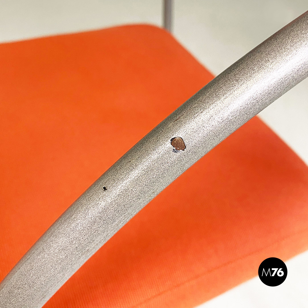 Coppia di sedie modello Vienna con struttura con braccioli dal profilo curvo in metallo a sezione tonda con finitura in grigio opaco. Lo schienale e seduta sono imbottiti e rivestiti nel loro originale tessuto di cotone arancio.