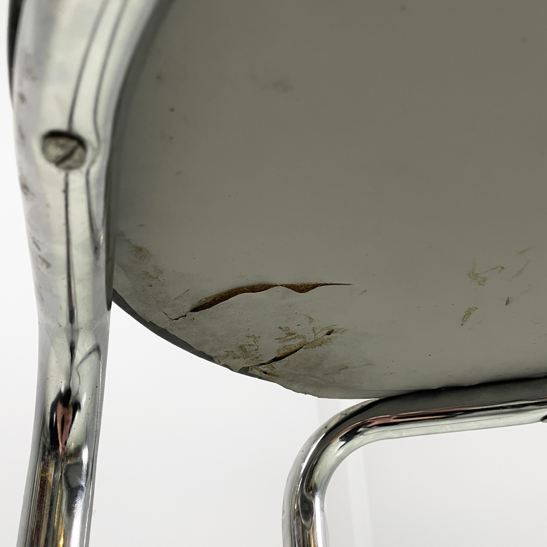 Condizioni vintage. La seduta presenta segni sparsi. Il metallo presenta segni e macchie dati dal tempo.