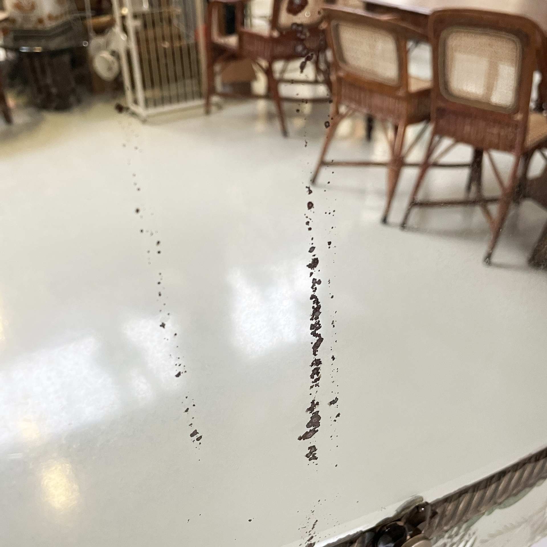 Discrete condizioni in patina. Presenta piccole mancanze su alcuni decori e segni sullo specchio.