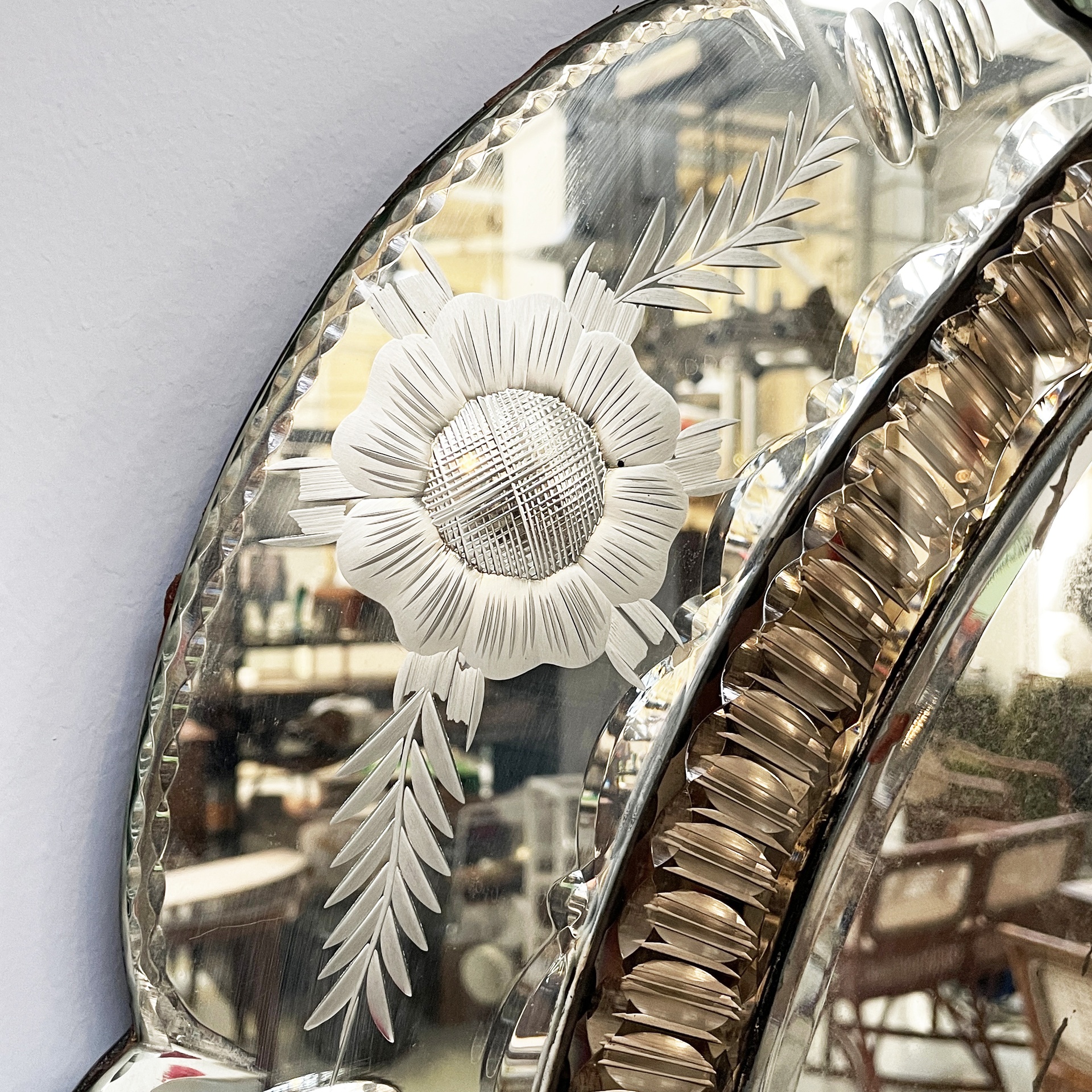 Specchio da parete con acidature, inizio 1900 ca.