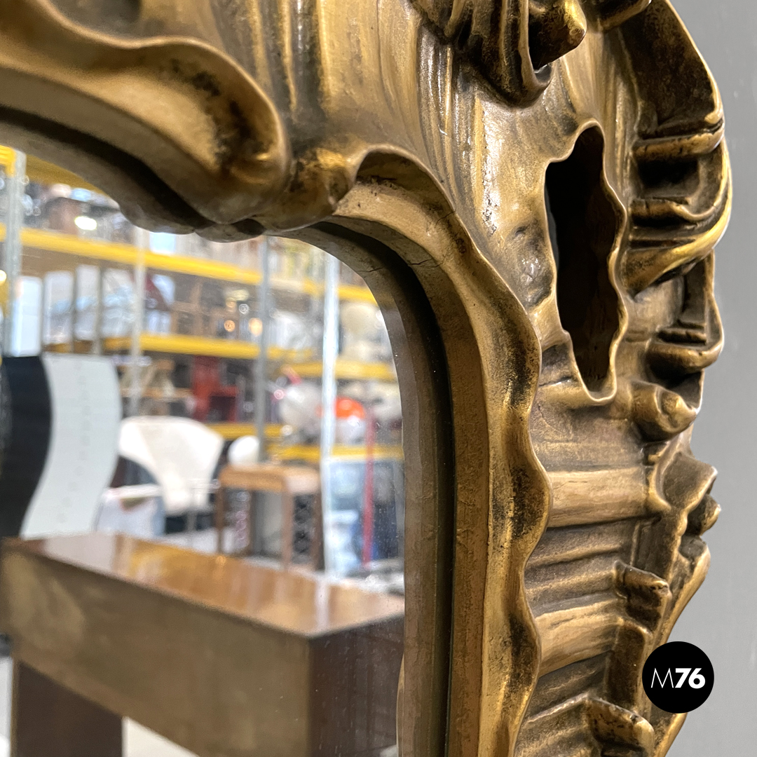 Specchio da parete in legno dorato decorato, 1960 ca.