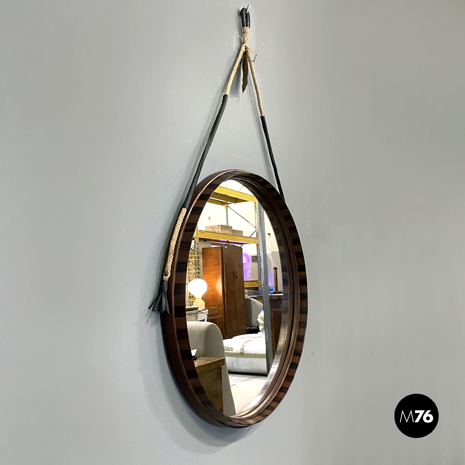 Specchio da parete in legno, pelle e corda, 1960 ca.