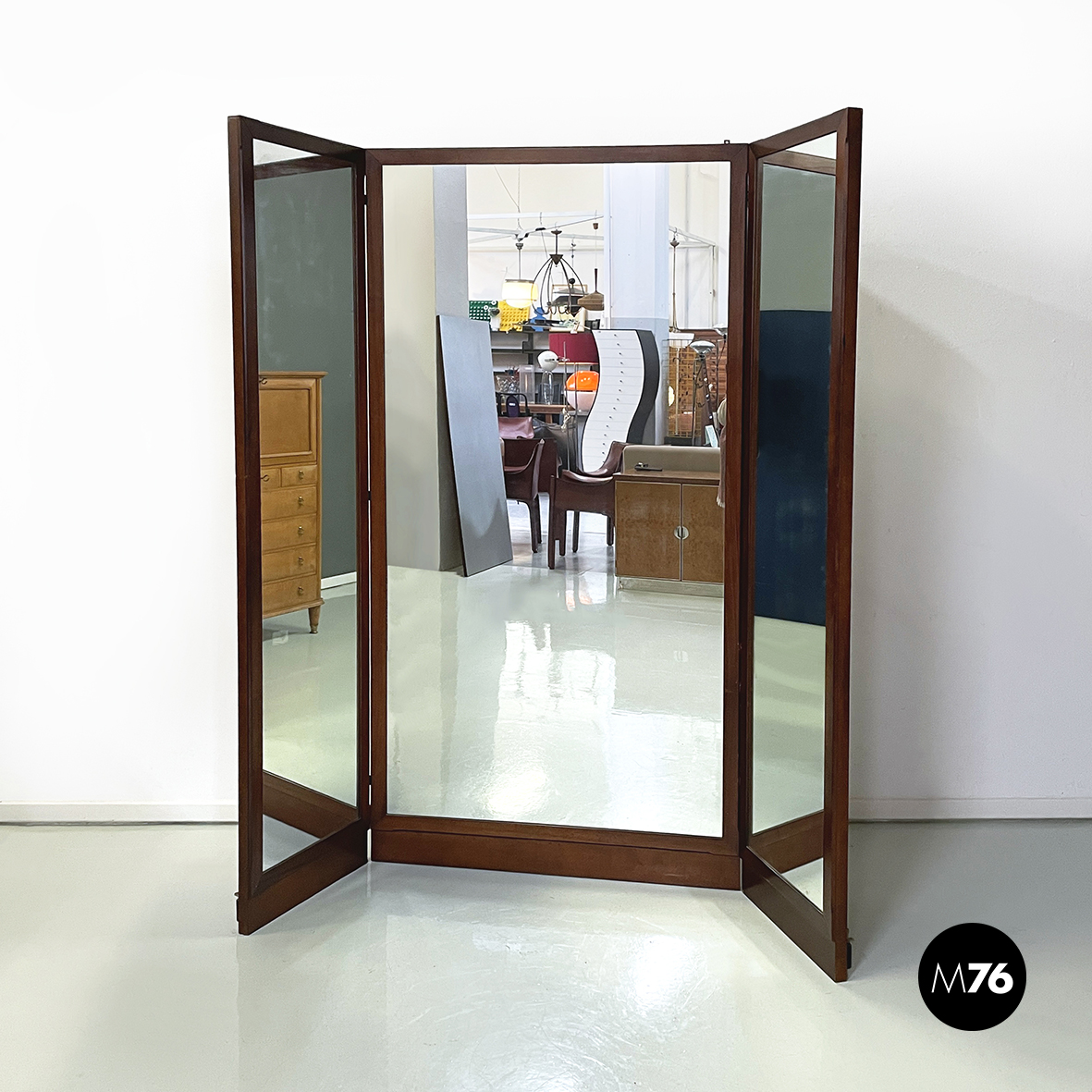 Specchio autoportante a figura intera da terra a 3 ante. La struttura e i profili degli specchi sono in legno. Questo specchio sartoriale può essere posizionato a piacere.