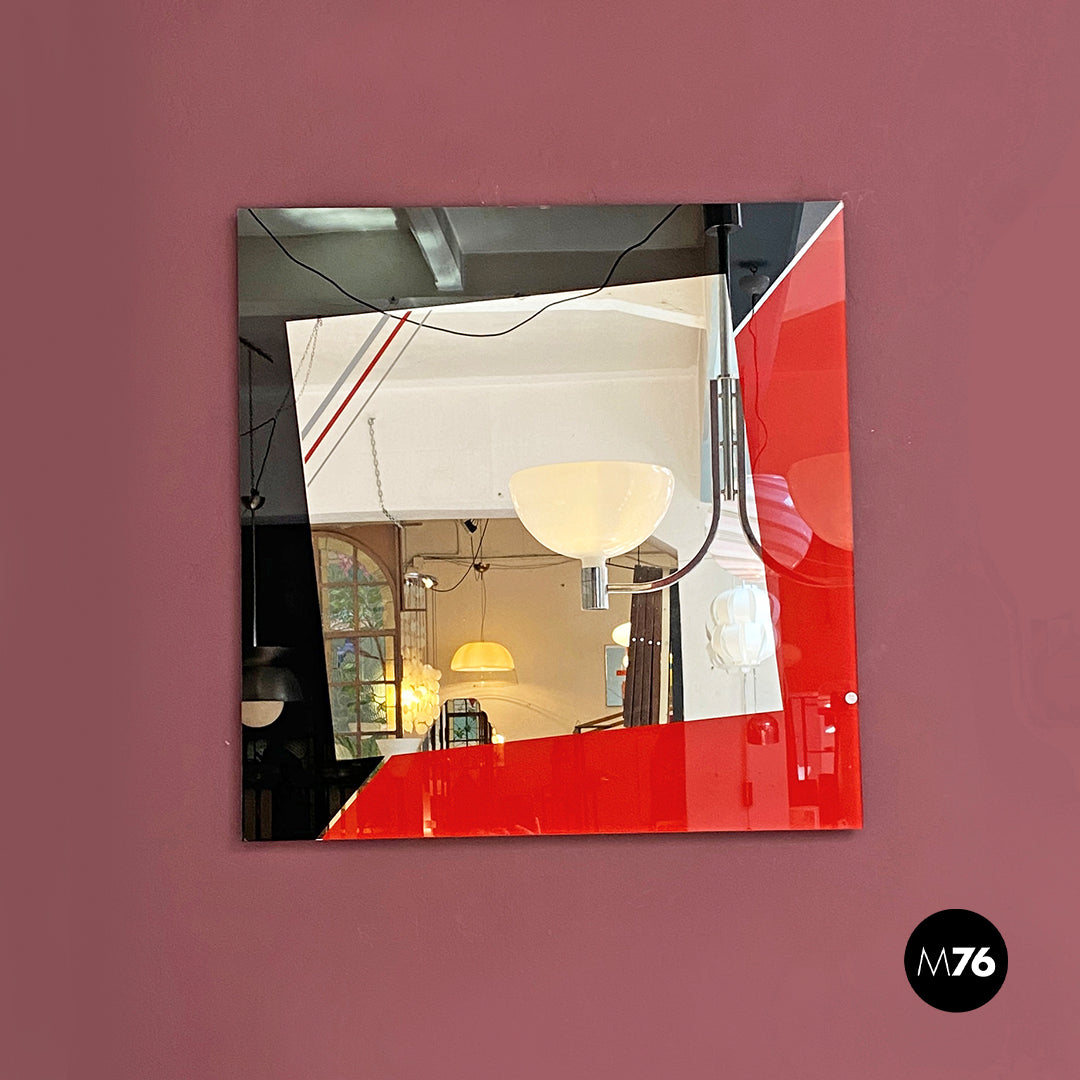 Specchio da parete decorativo con disegno grafico con cornice in vetro sui colori del rosso e nero.