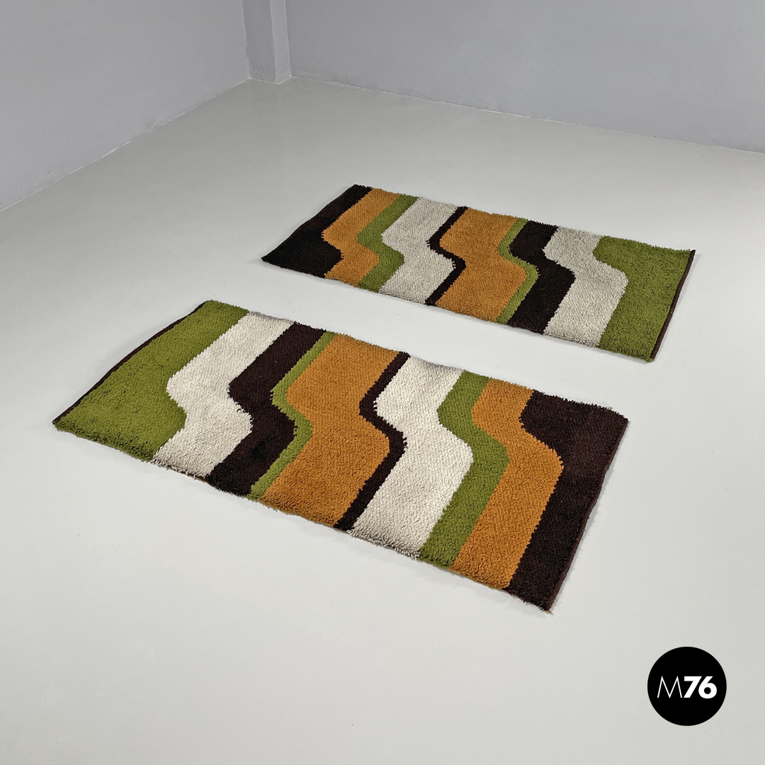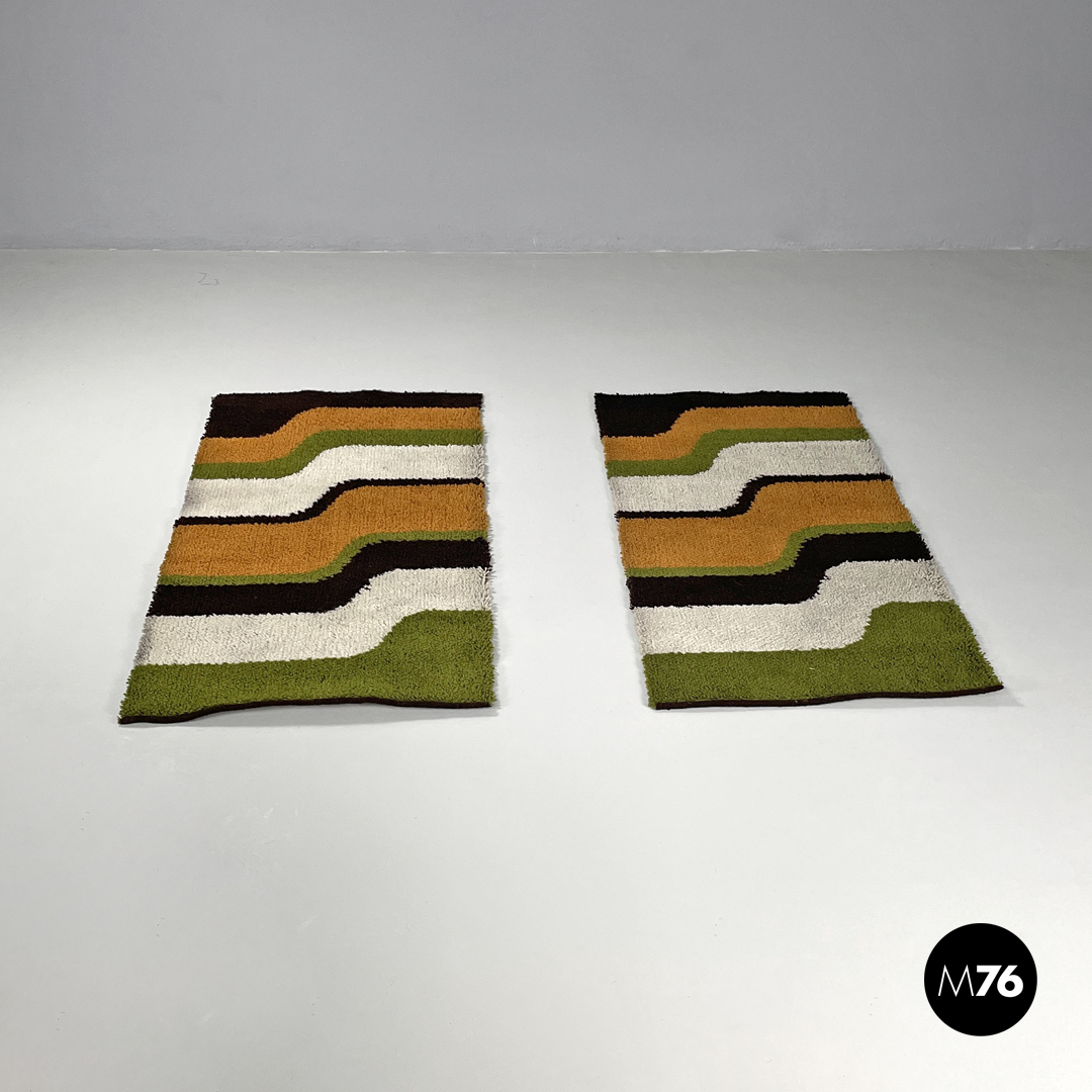 Tappeti a pelo corto in marrone, arancione, beige e verde, 1970 ca.