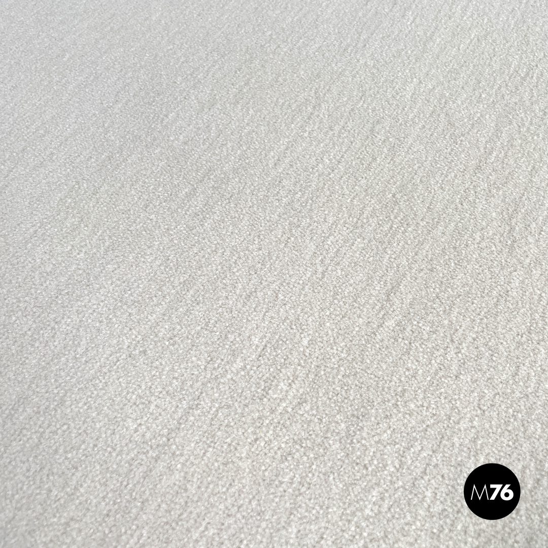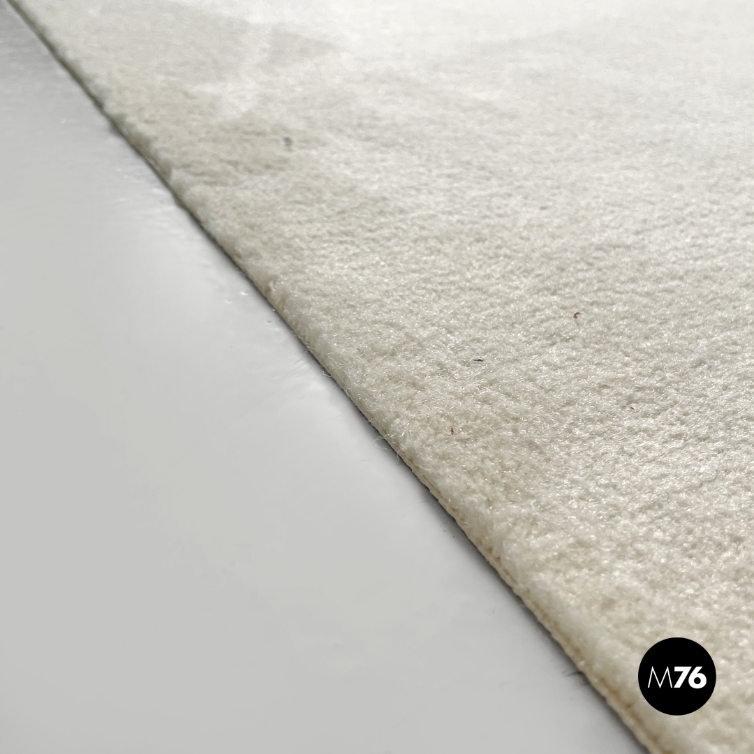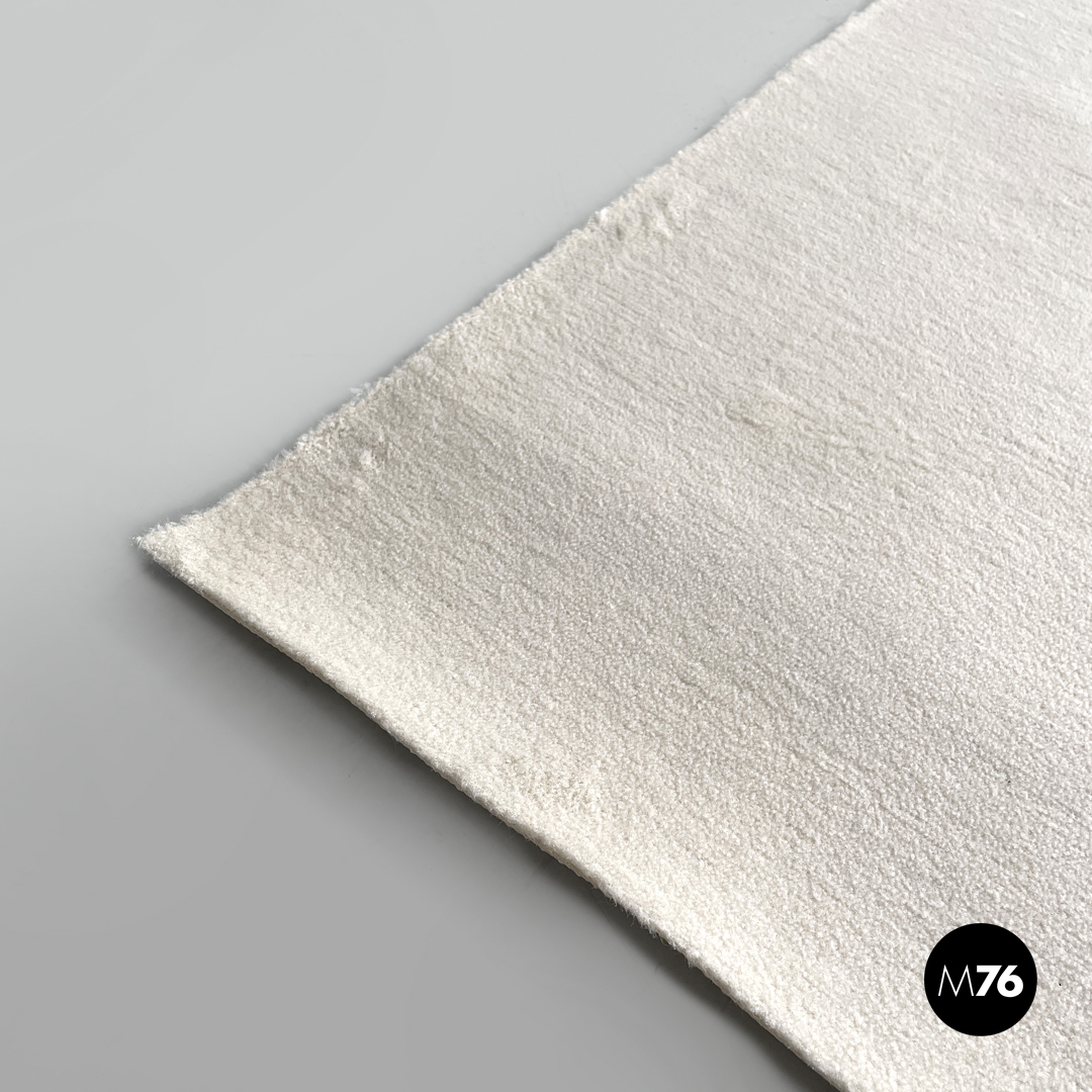 Tappeto rettangolare a pelo corto sintetico bianco. La parte inferiore è interamente in plastica bianca.