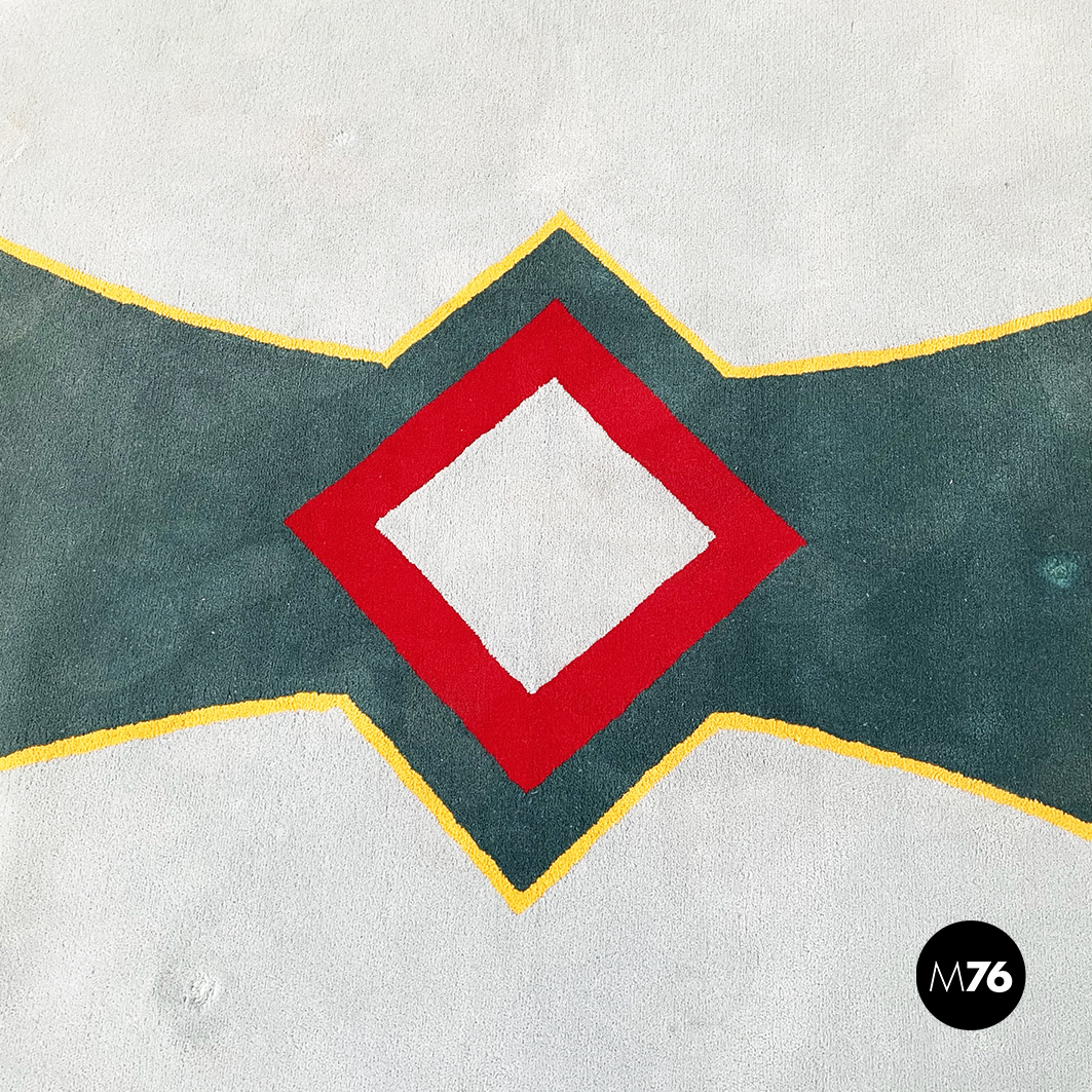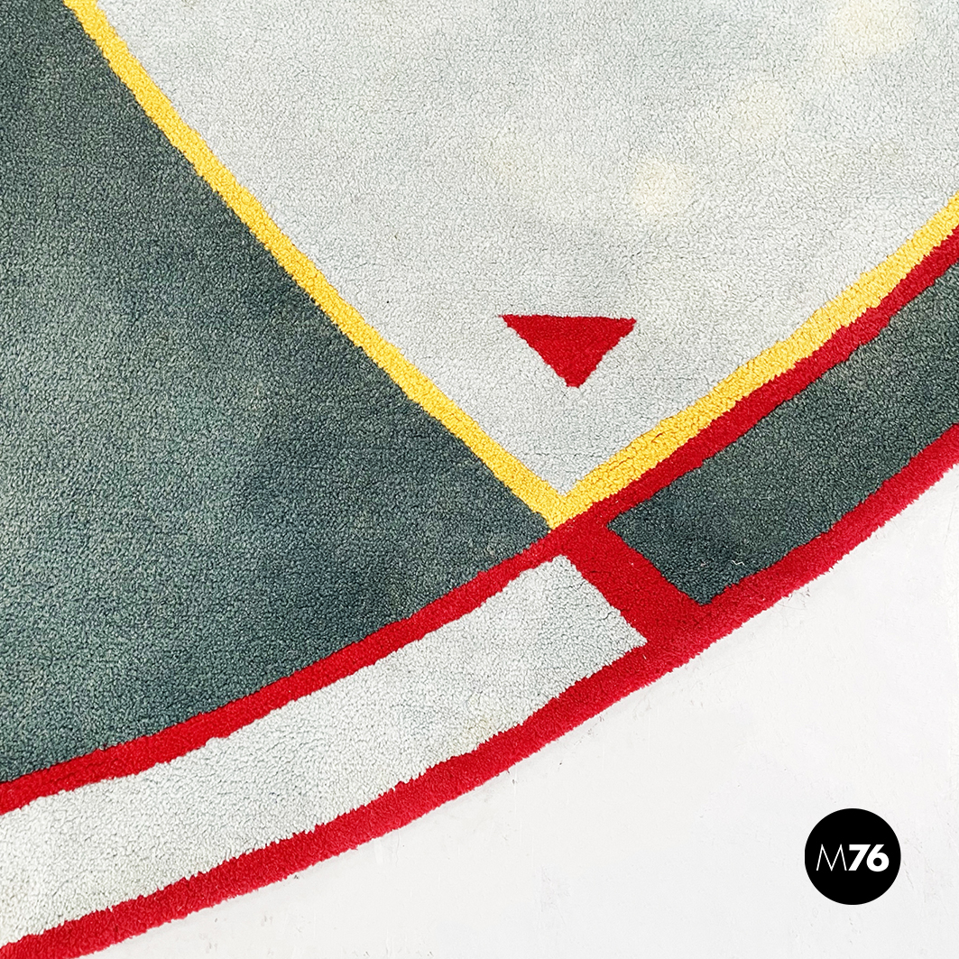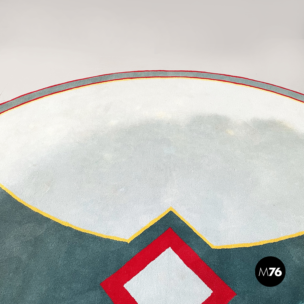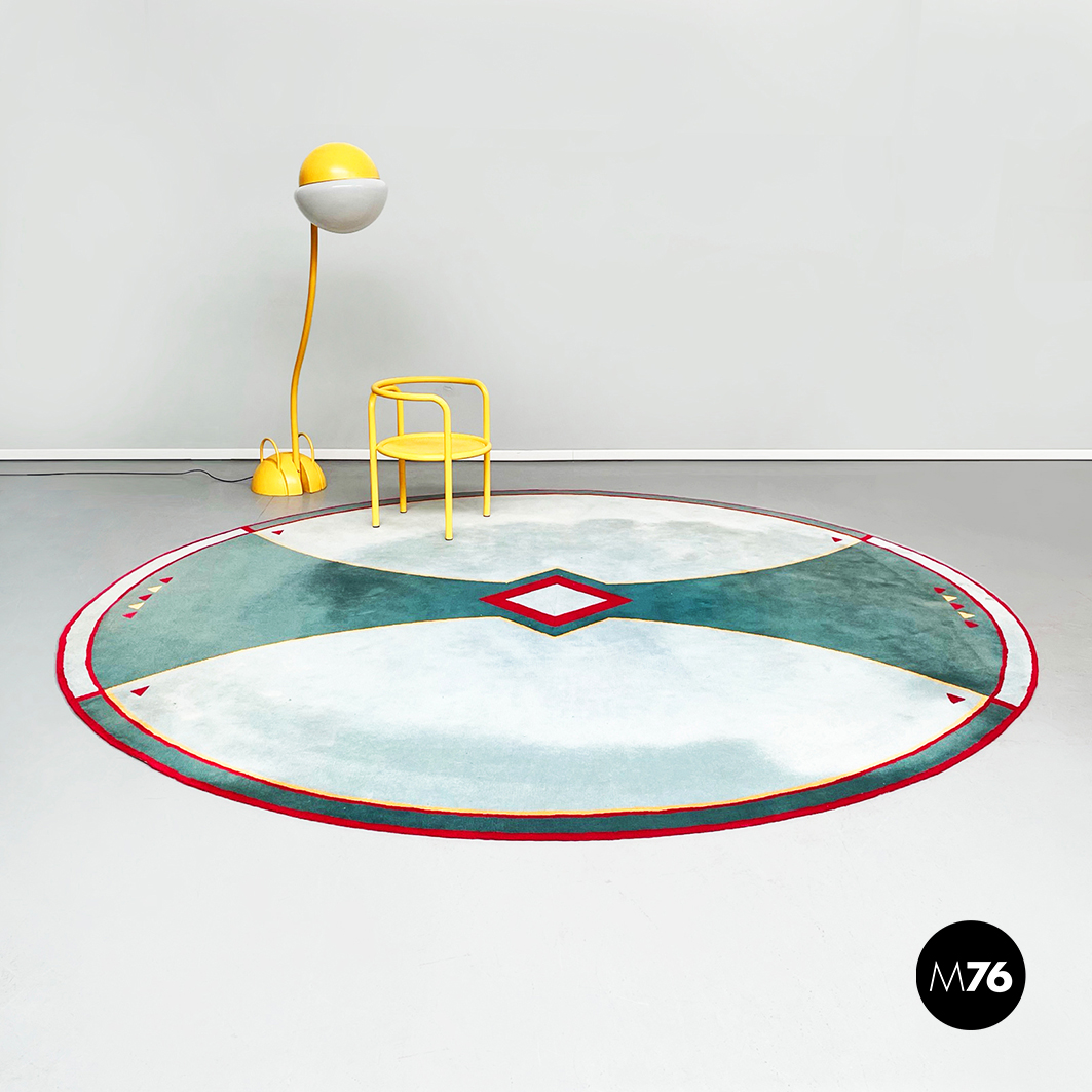 Tappeto tondo con decorazioni geometriche, 1980 ca.