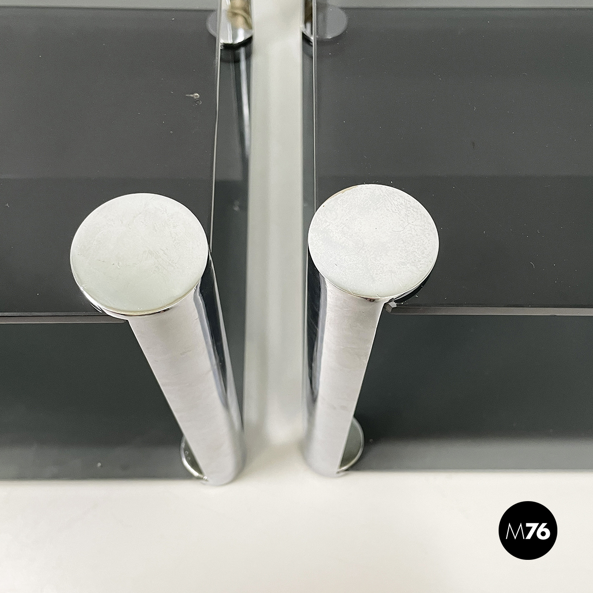 Tavoli da caffè in vetro fumè e metallo, 1980 ca.