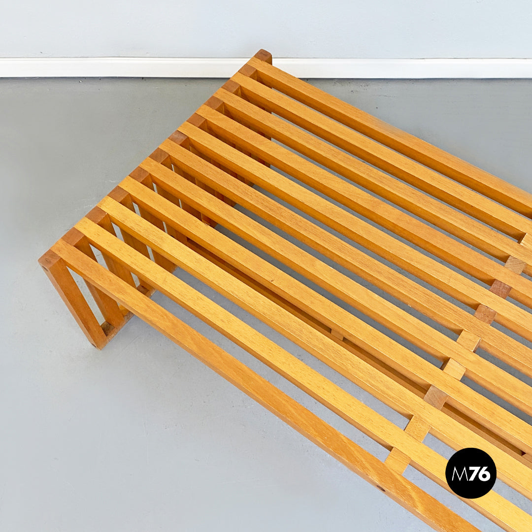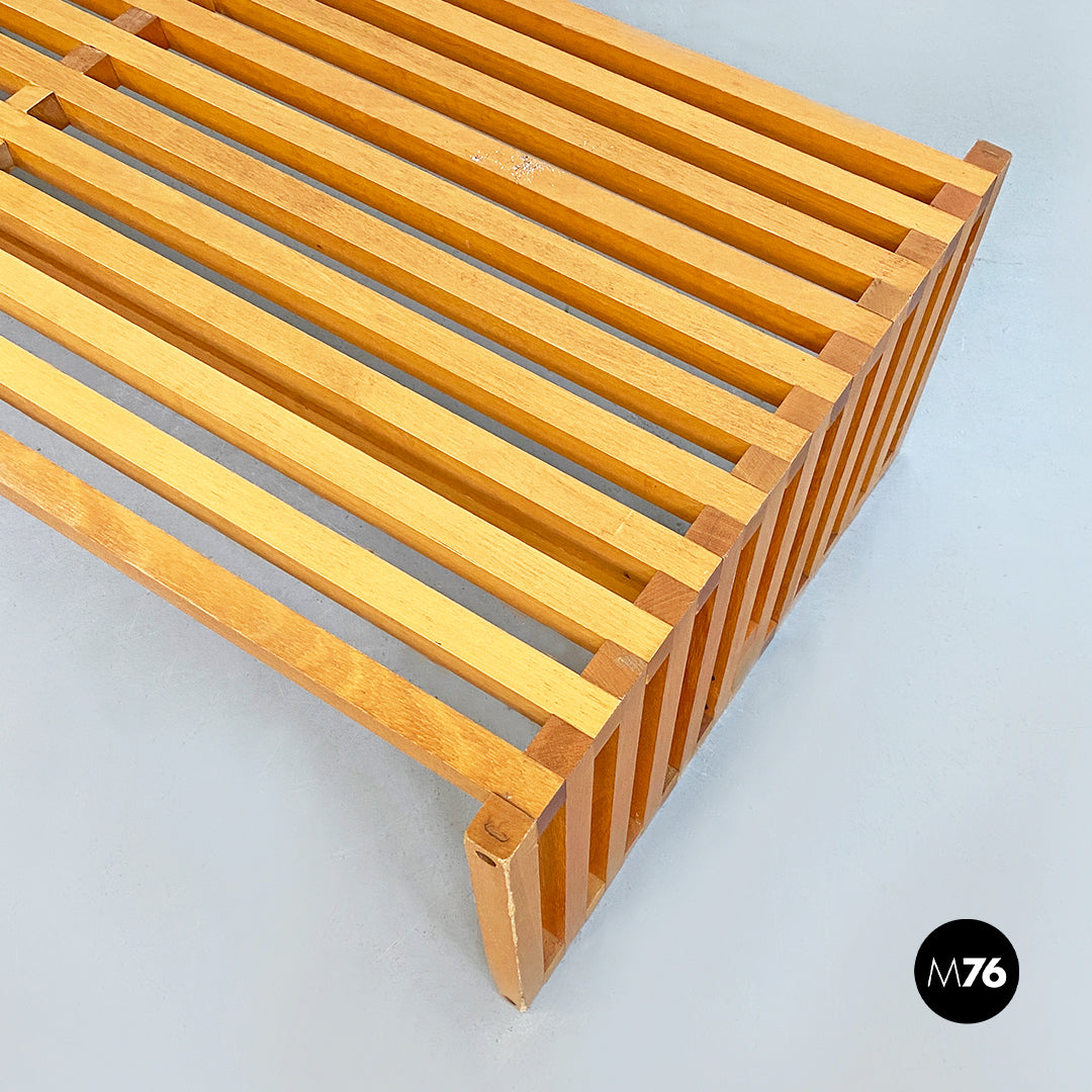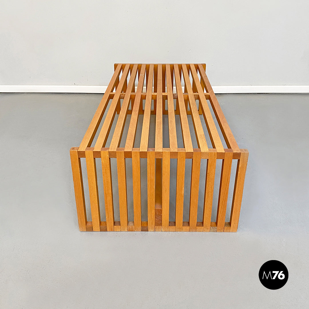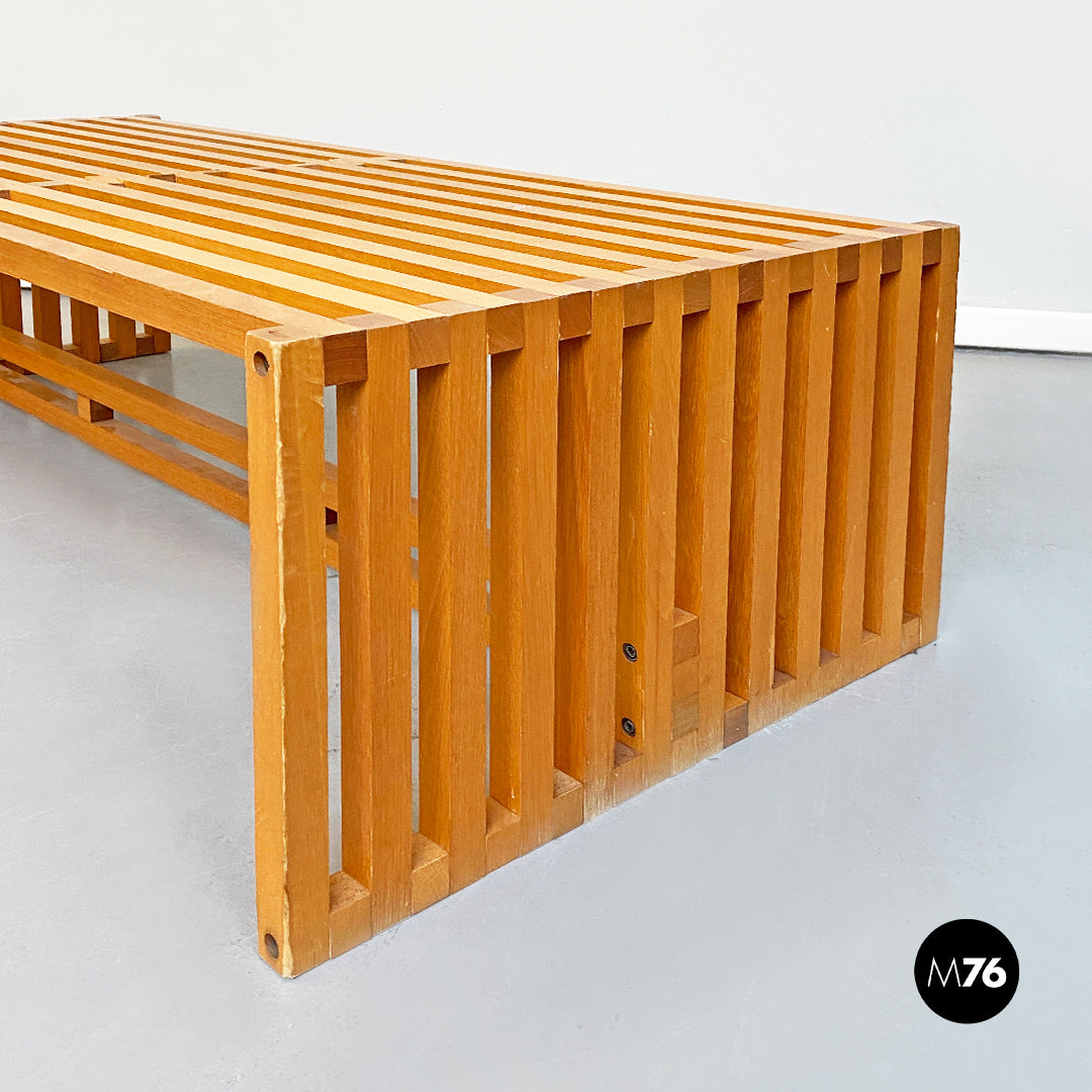Tavolo da caffè modello Ara interamente realizzato a file di listelli di legno chiaro.
