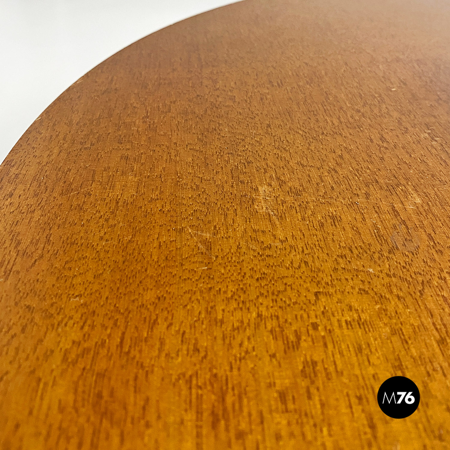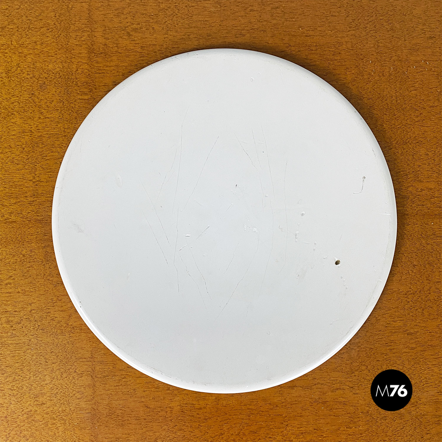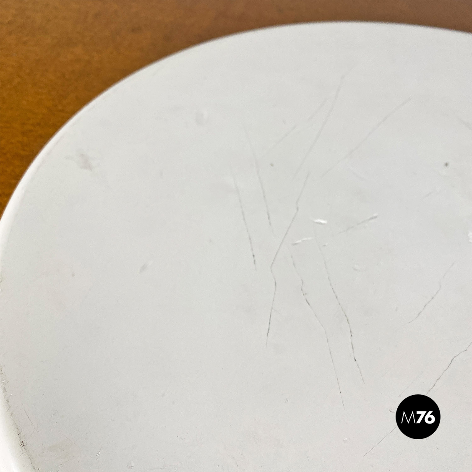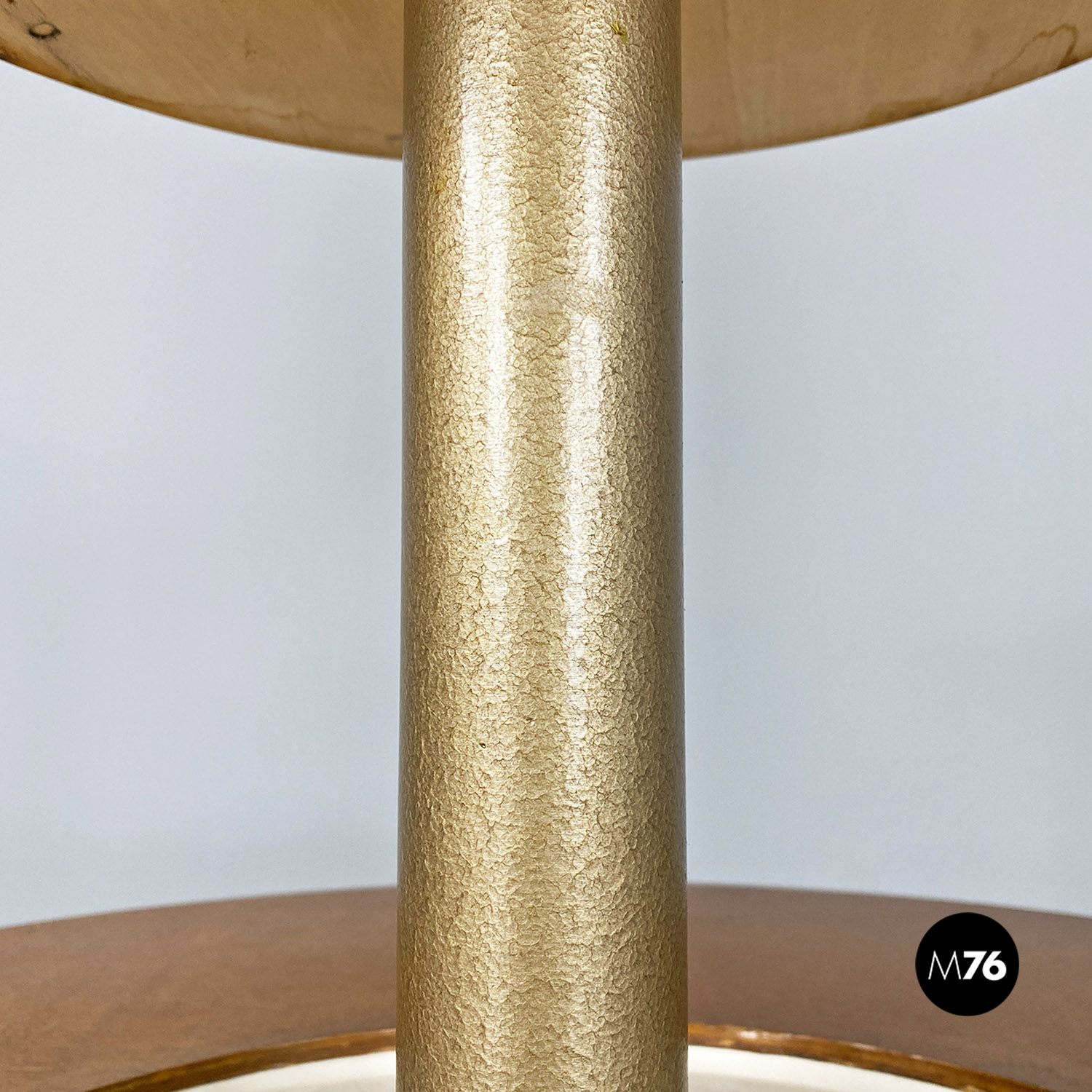 Tavolo da caffè noto anche come tavolo Gervasino con struttura in legno in colore naturale con parti verniciate in bianco. Il disco bianco posto al centro del piano nasconde un vano bar portabottiglie che viene su in automatico spostando una leva metallica posta sotto lo stesso piano.
