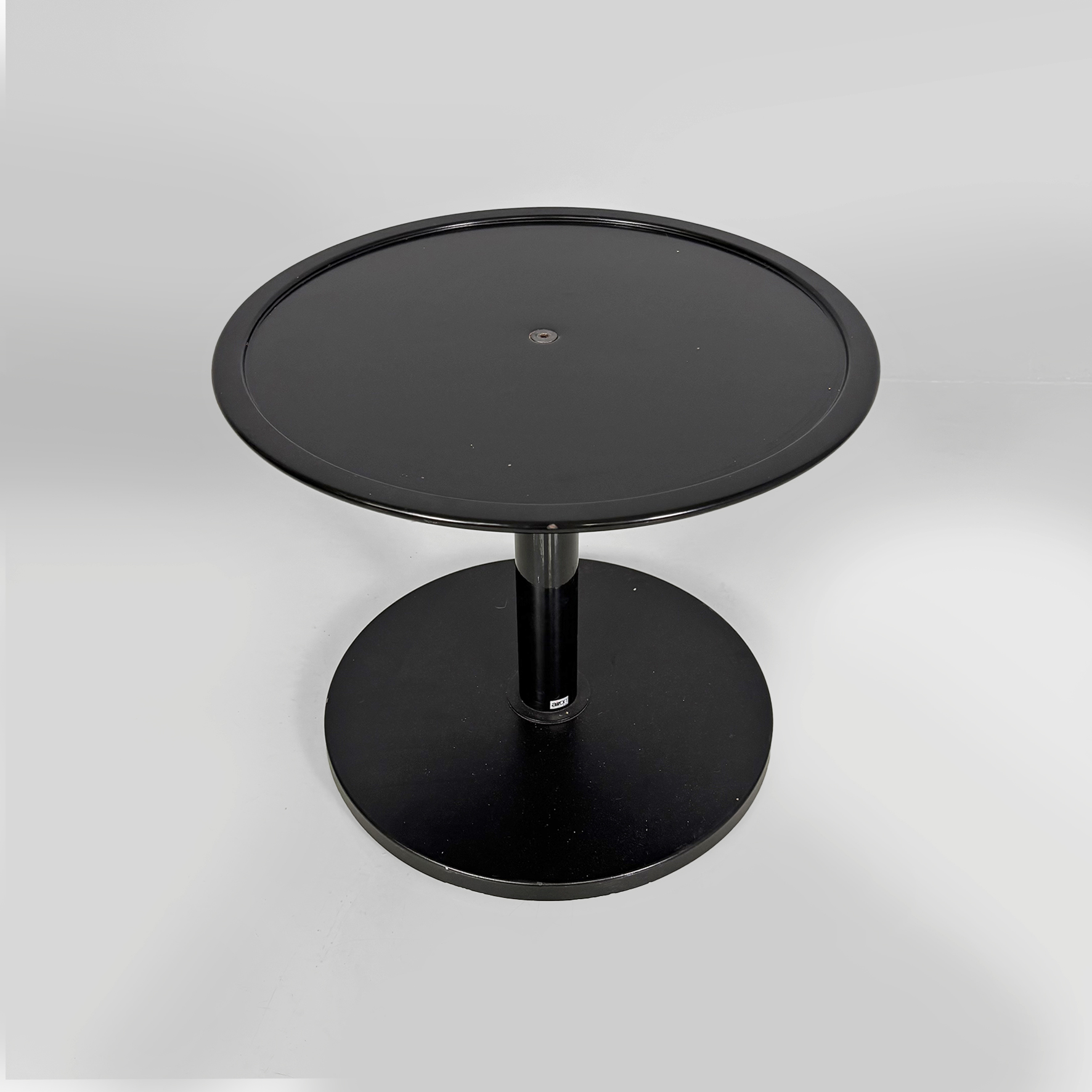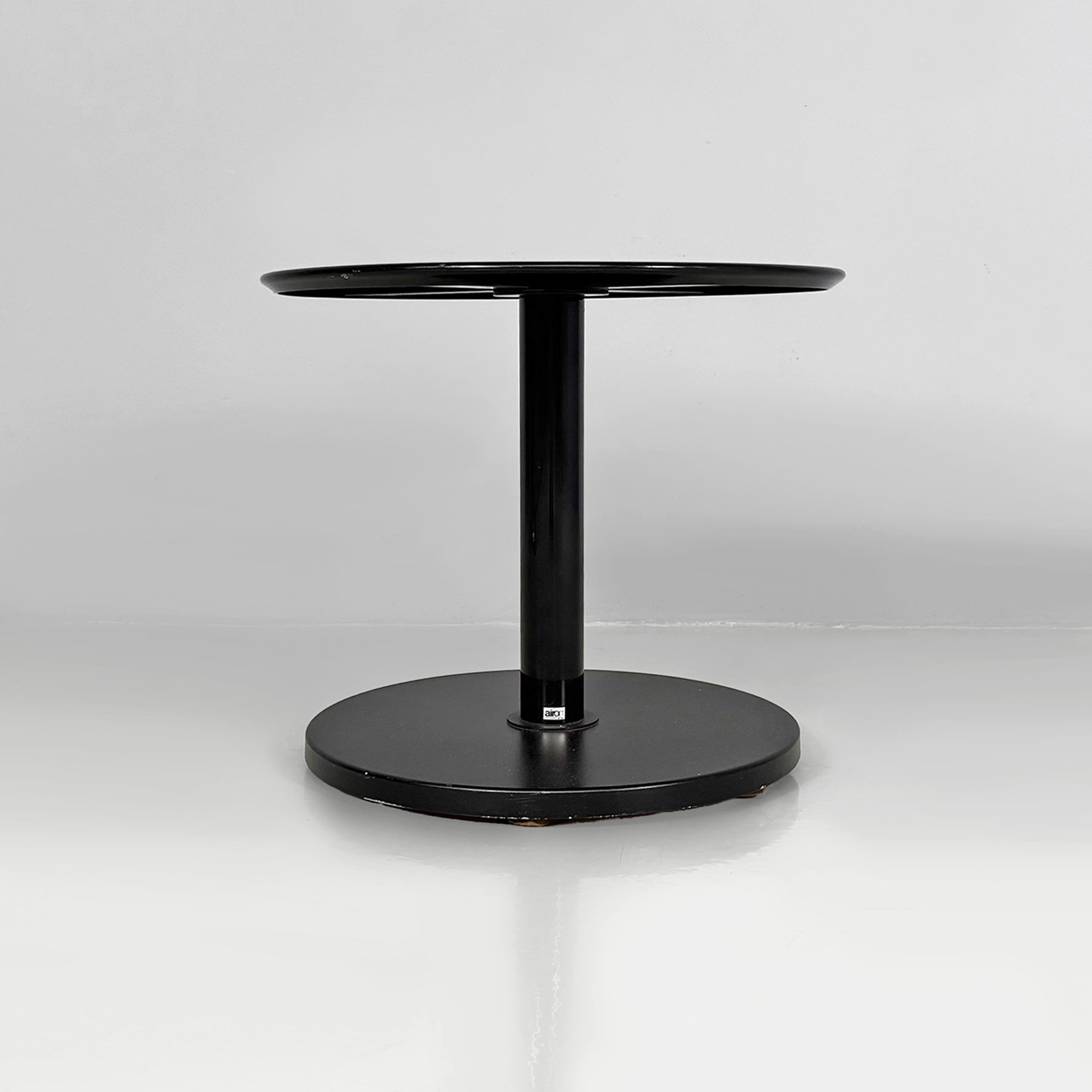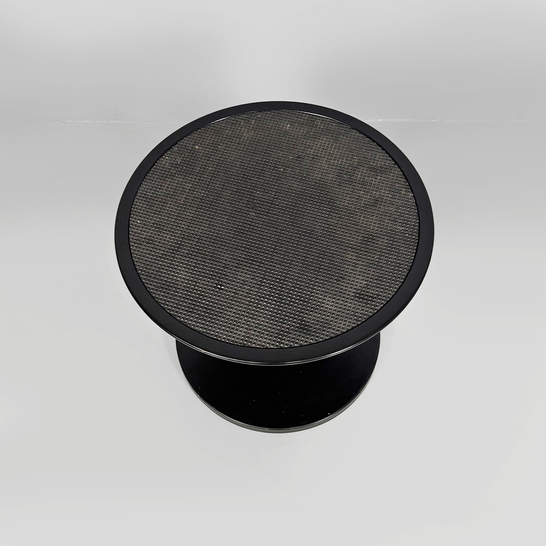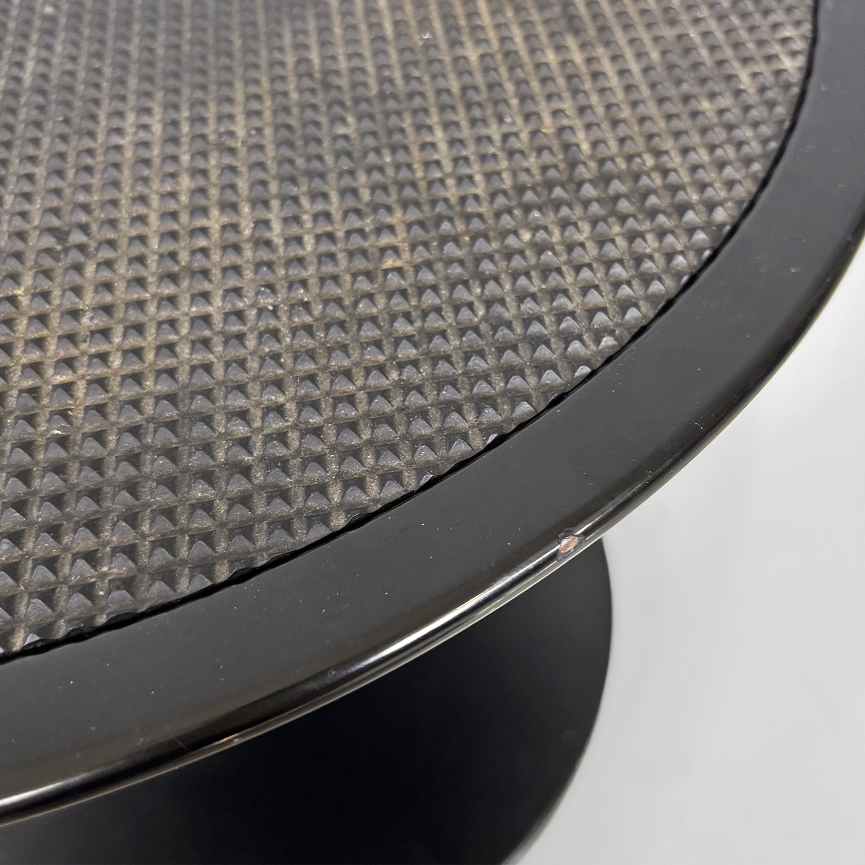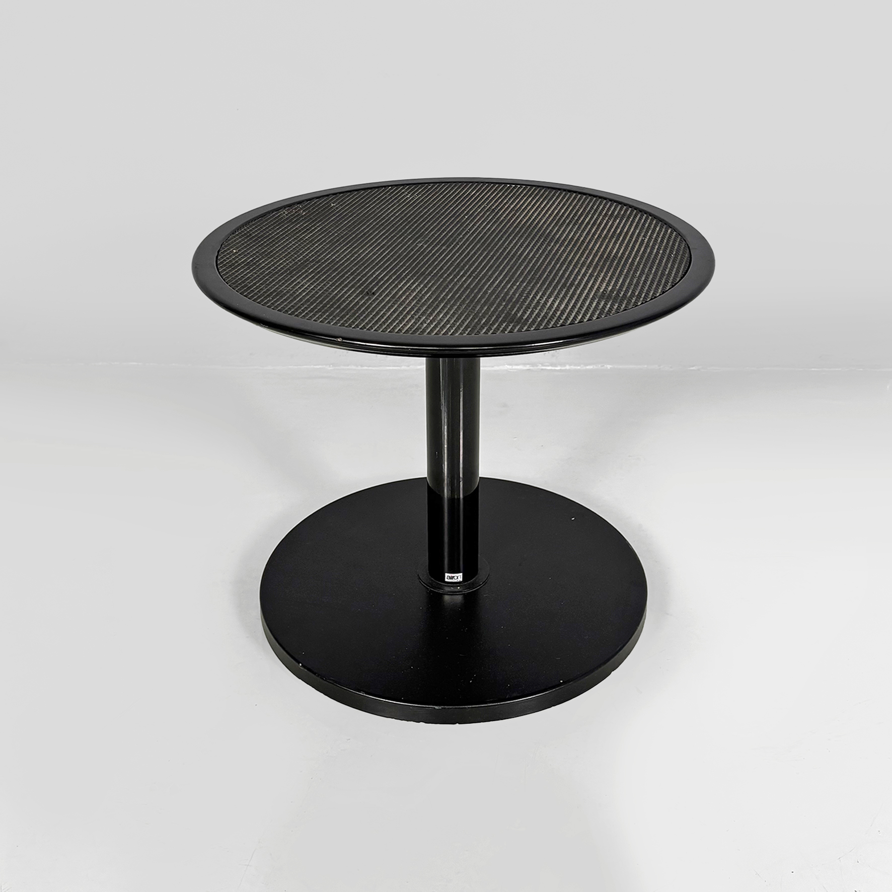 Tavolo da caffè tondo interamente in ferro composto da un piano rivestito in gomma.
