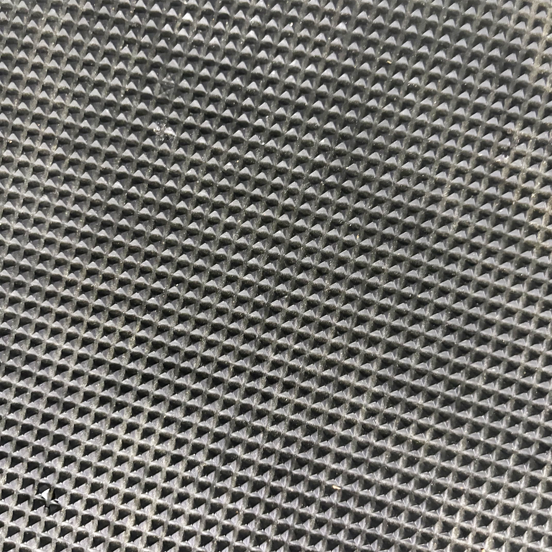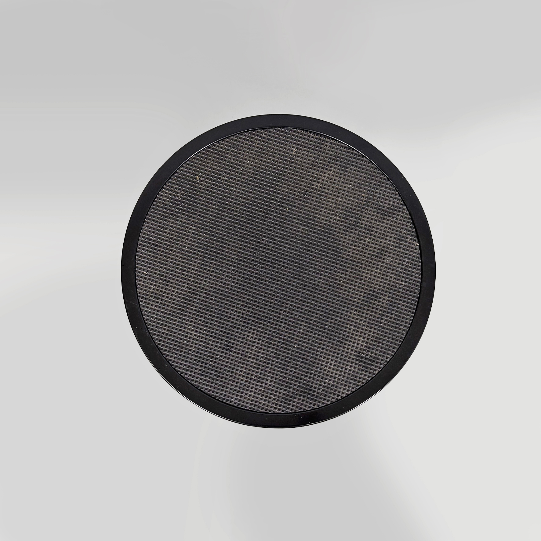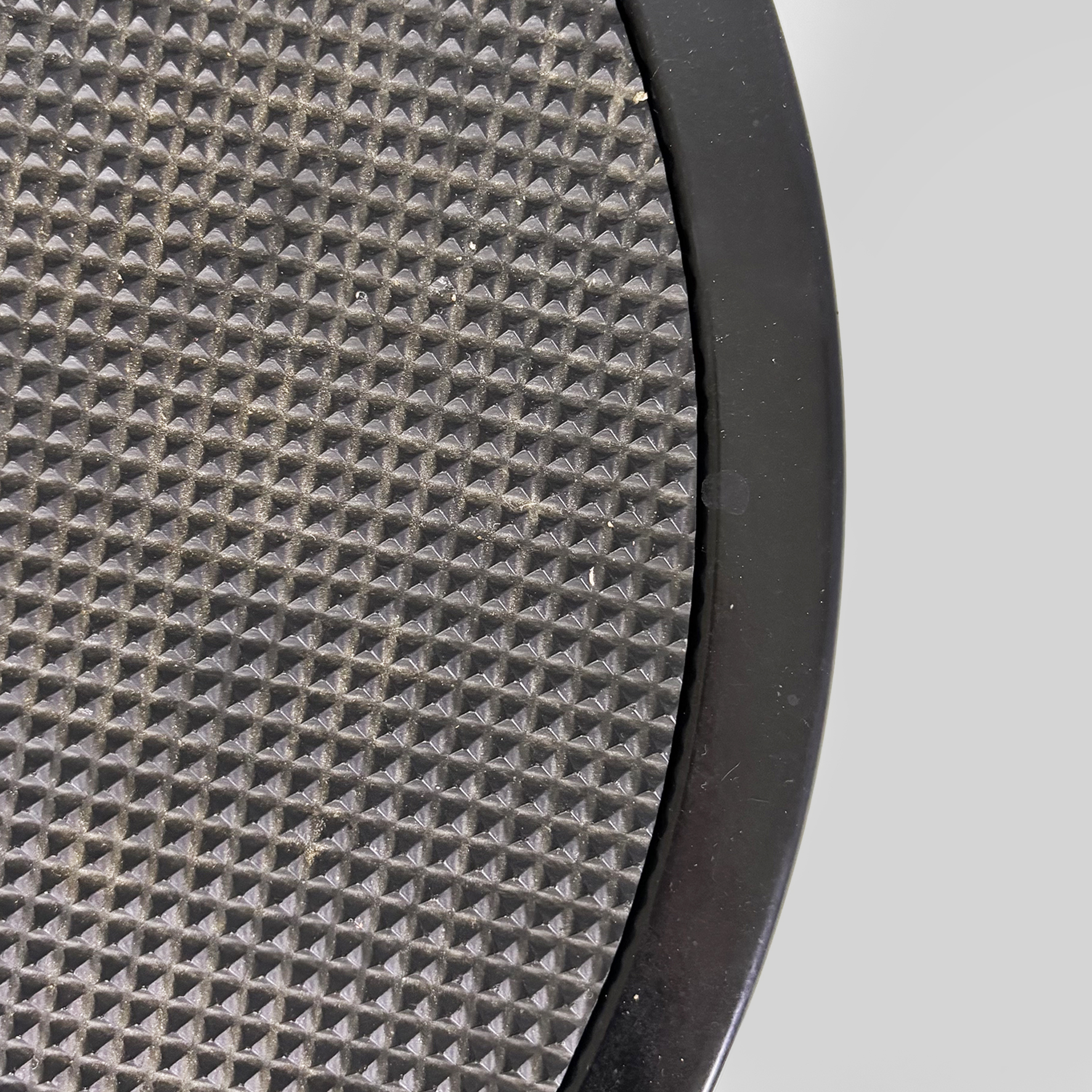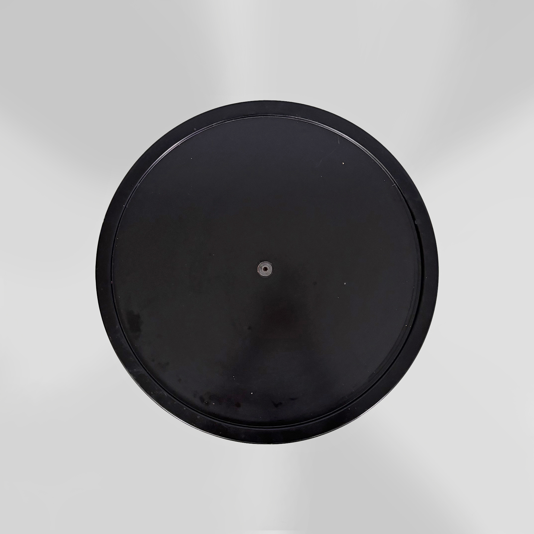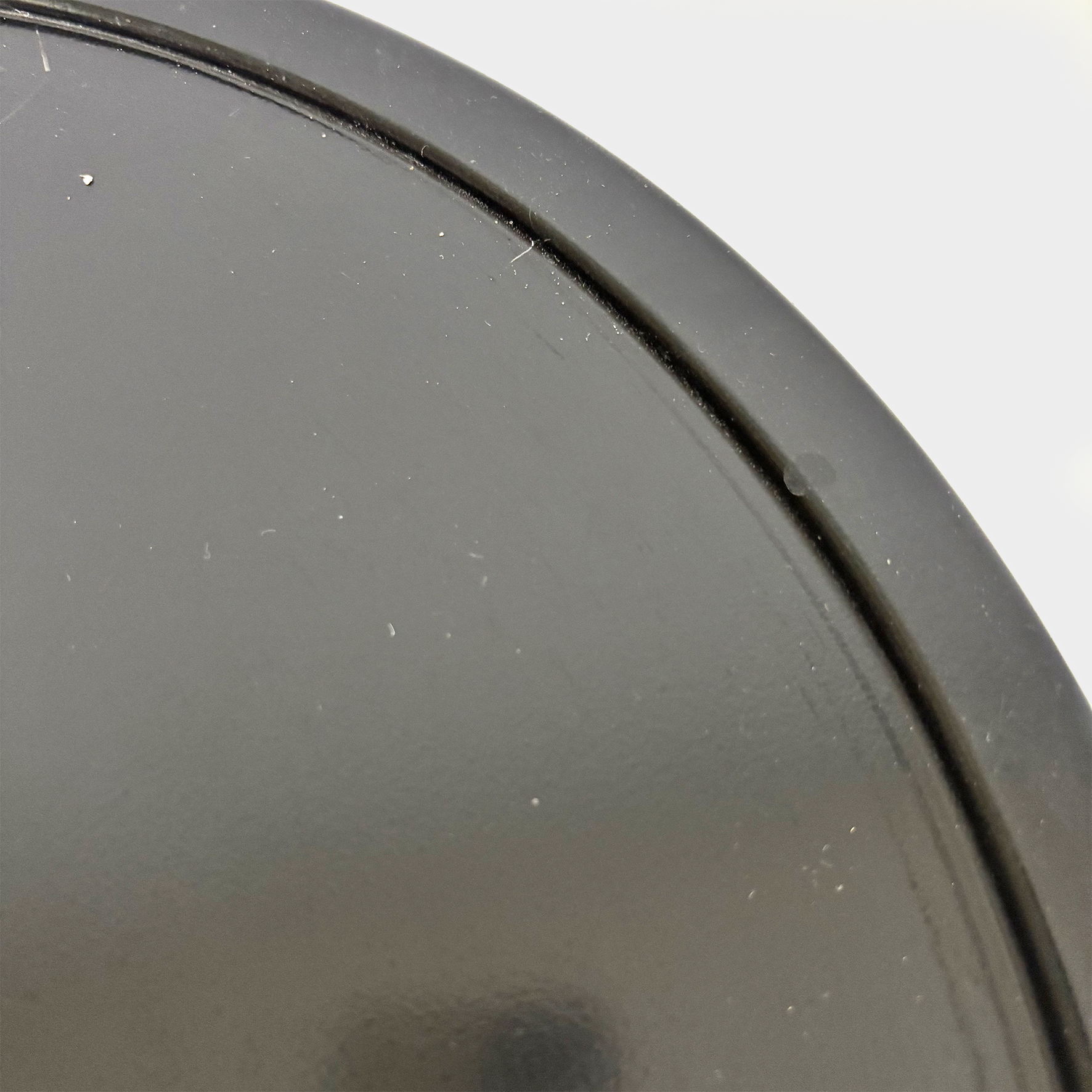 Tavolo da caffè tondo interamente in ferro composto da un piano rivestito in gomma.