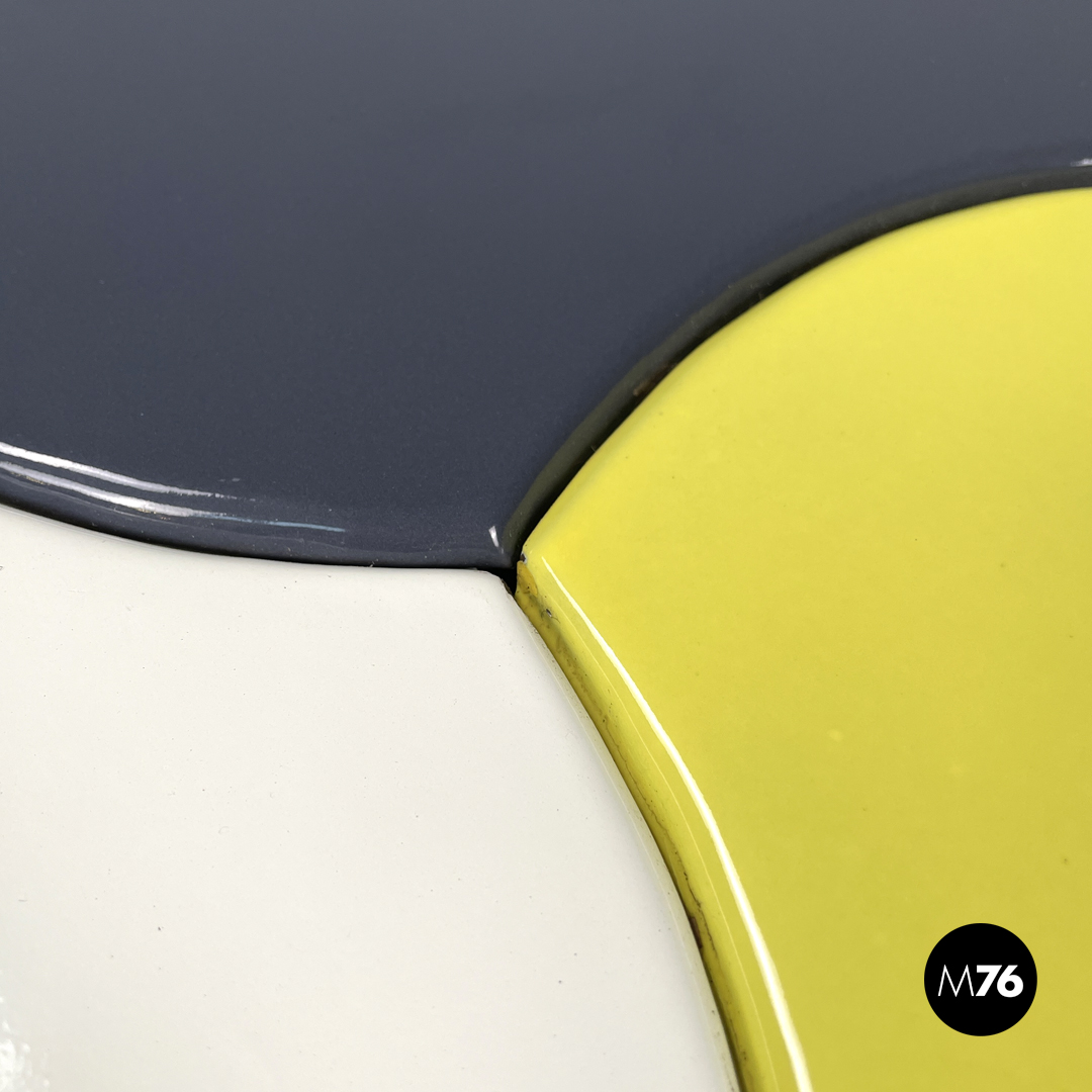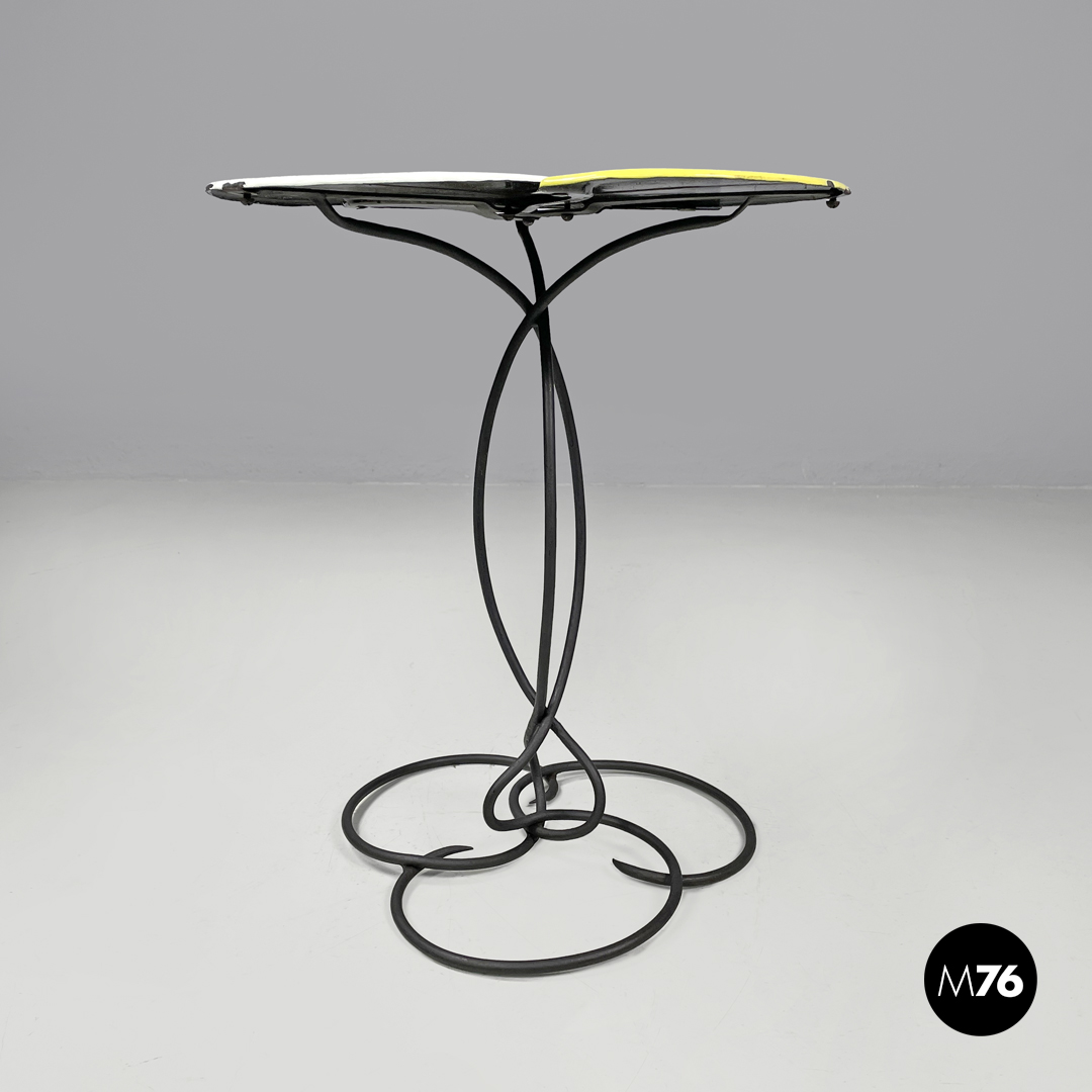 Tavolo da caffè in ferro battuto grigio, bianco e giallo, 1950 ca.