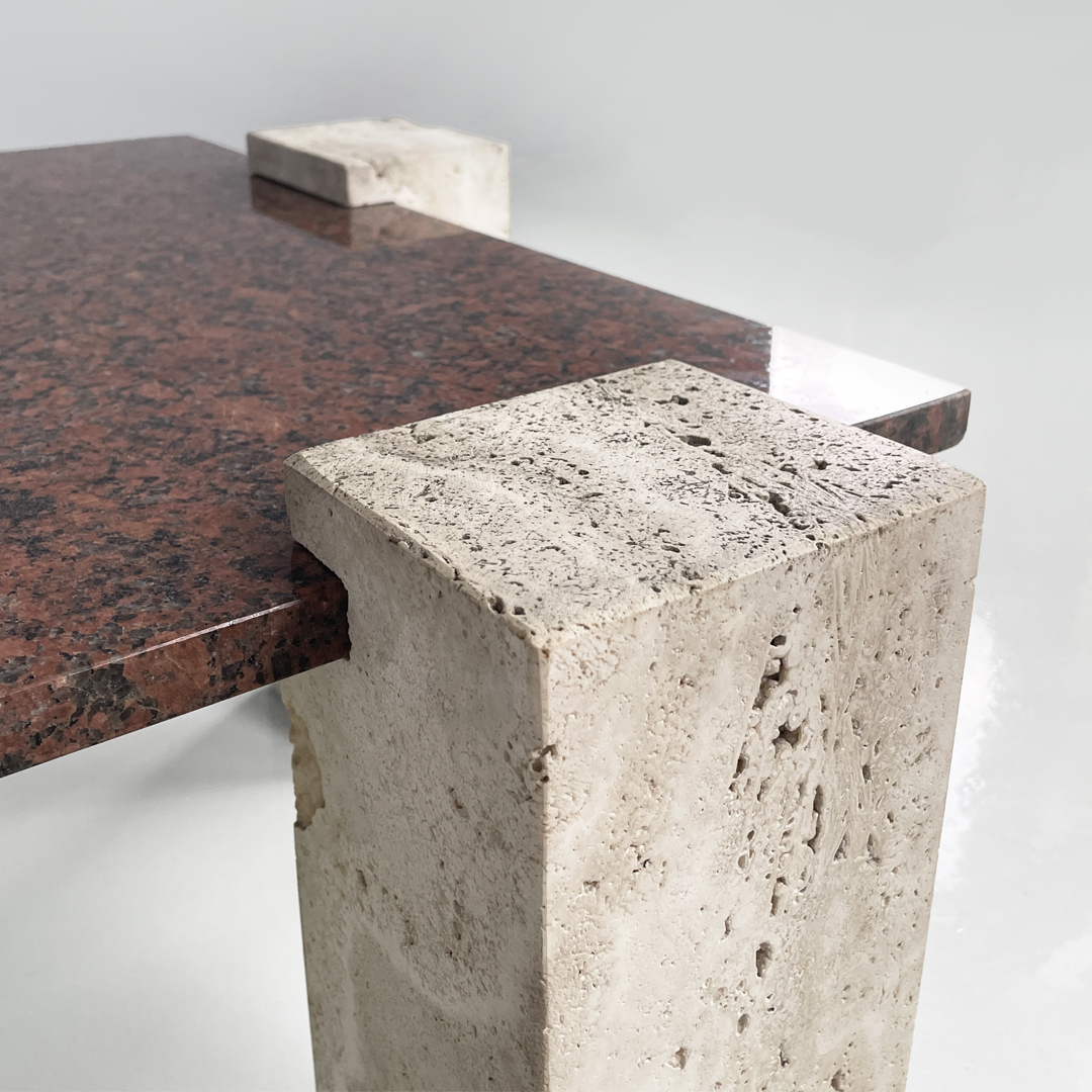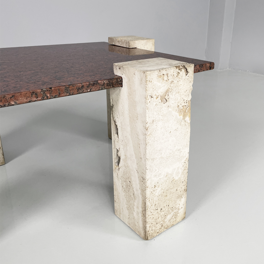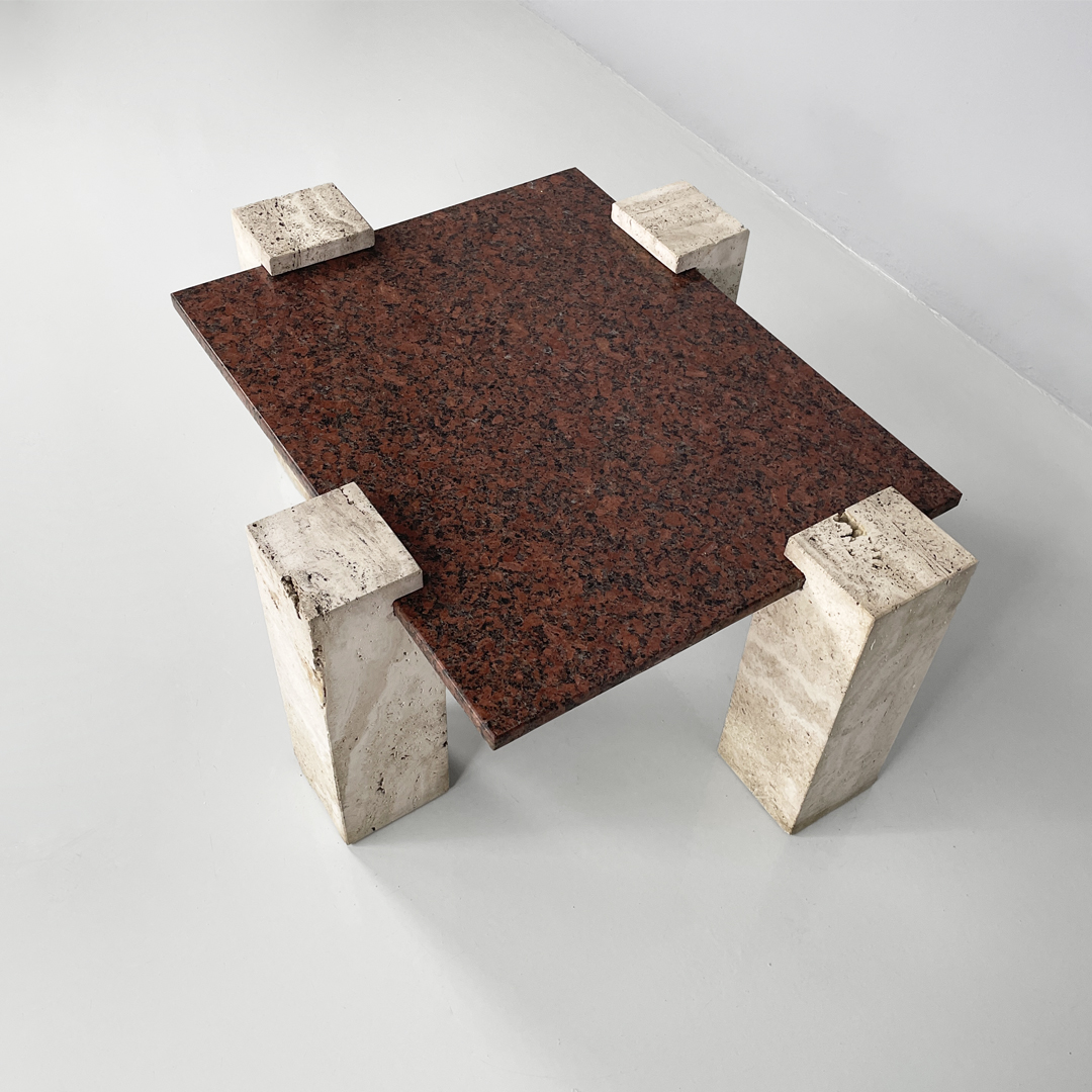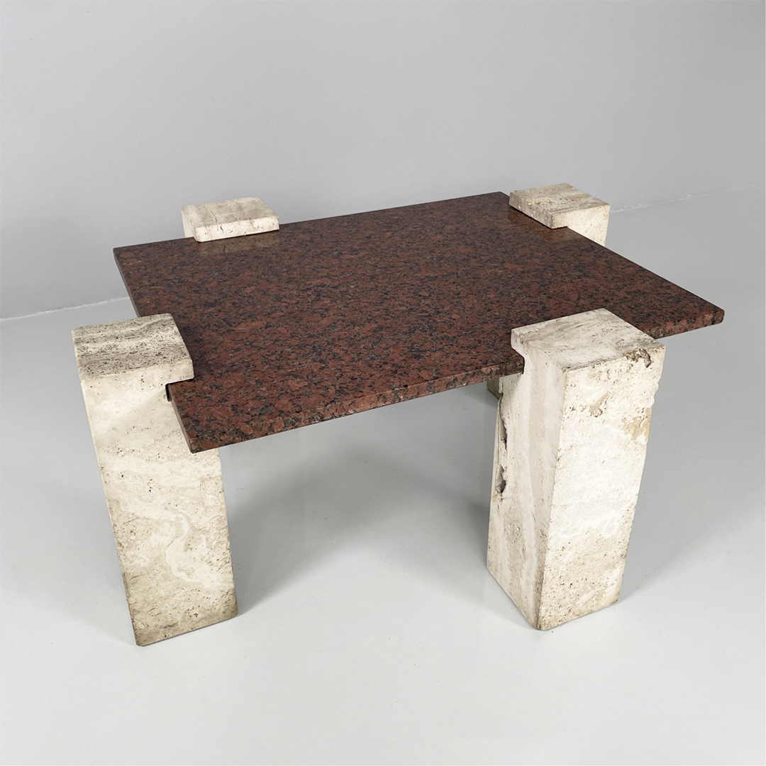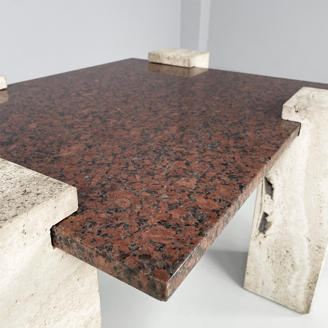 Tavolo da caffè in granito rosso e travertino, 1970 ca.
