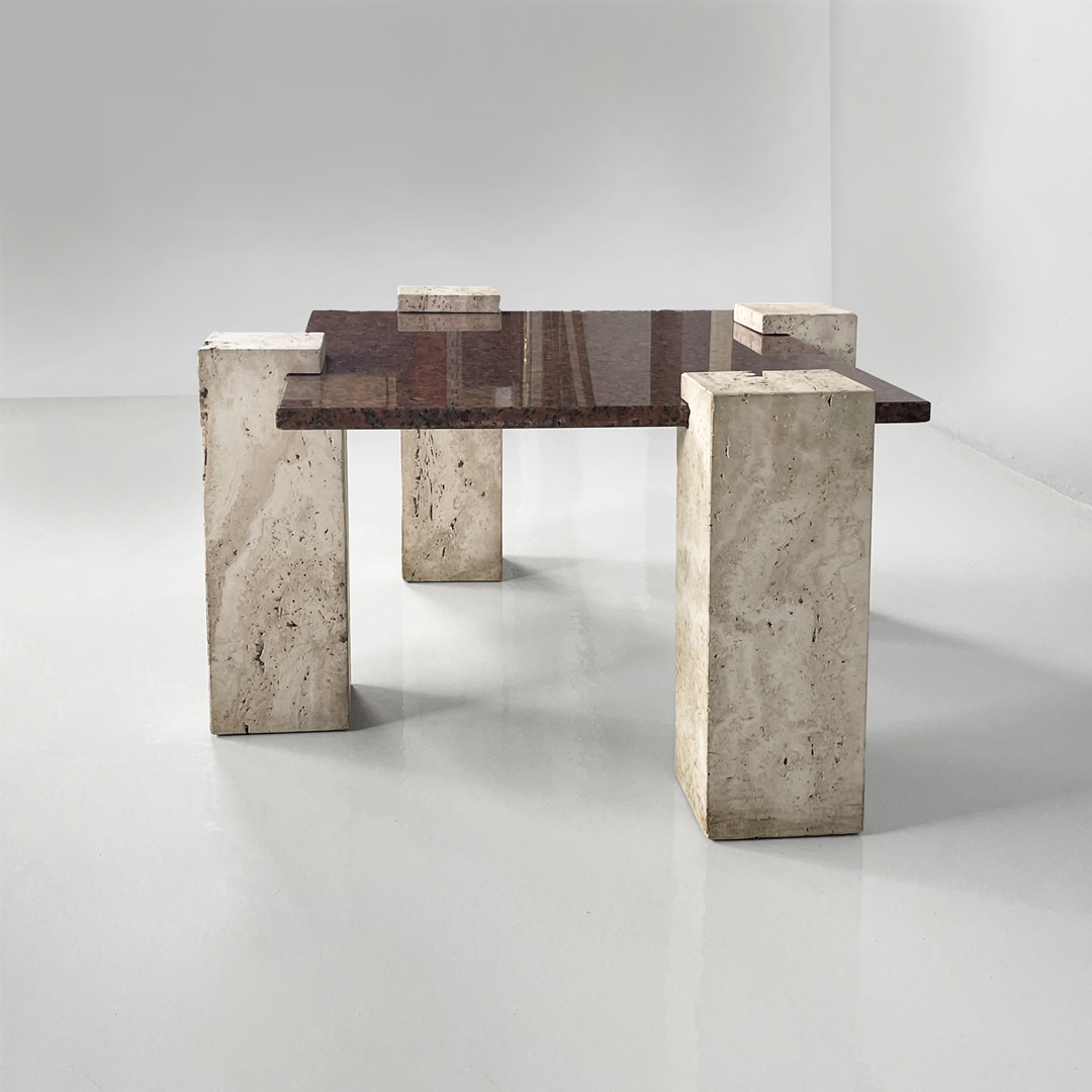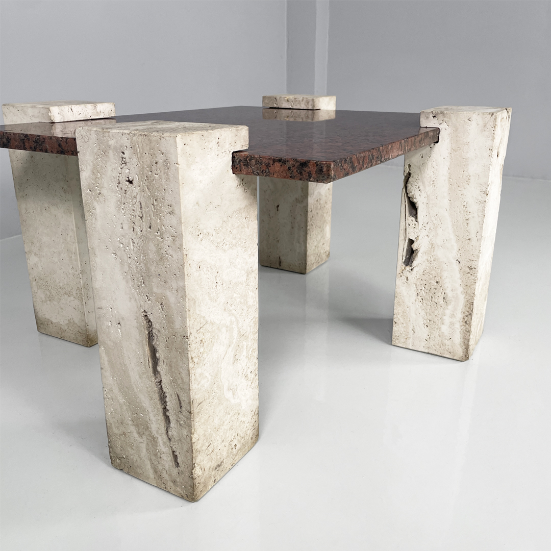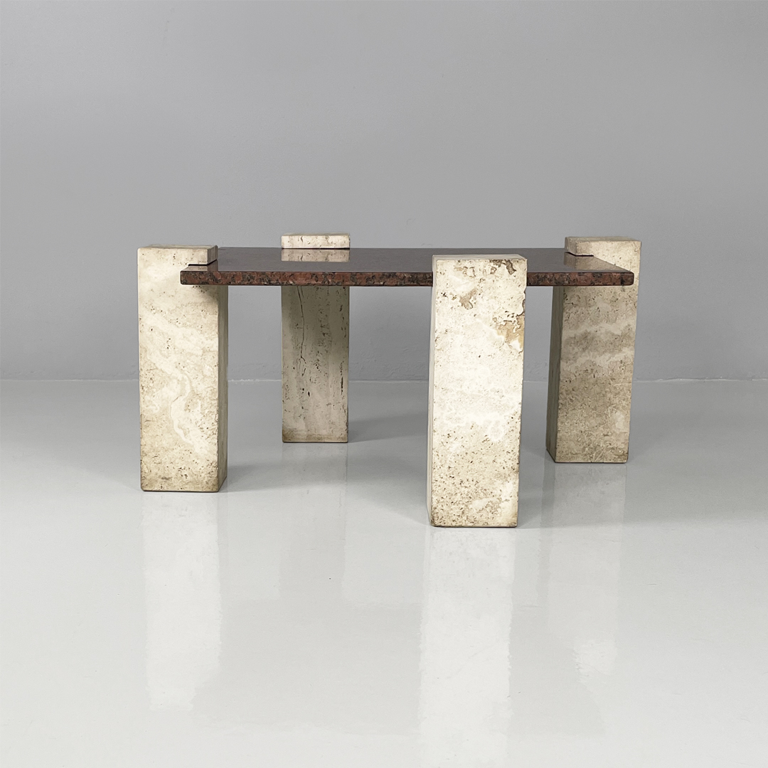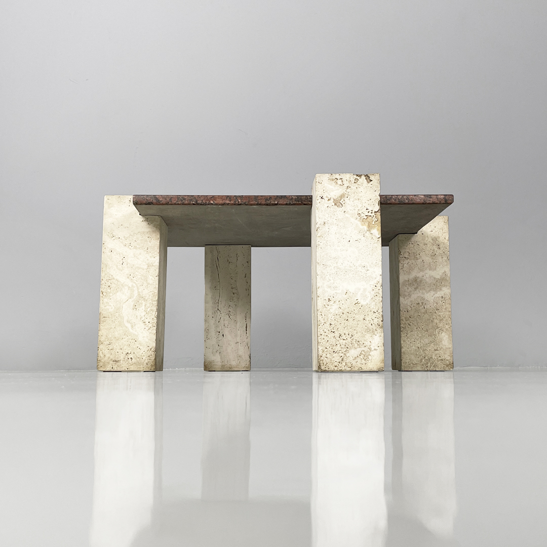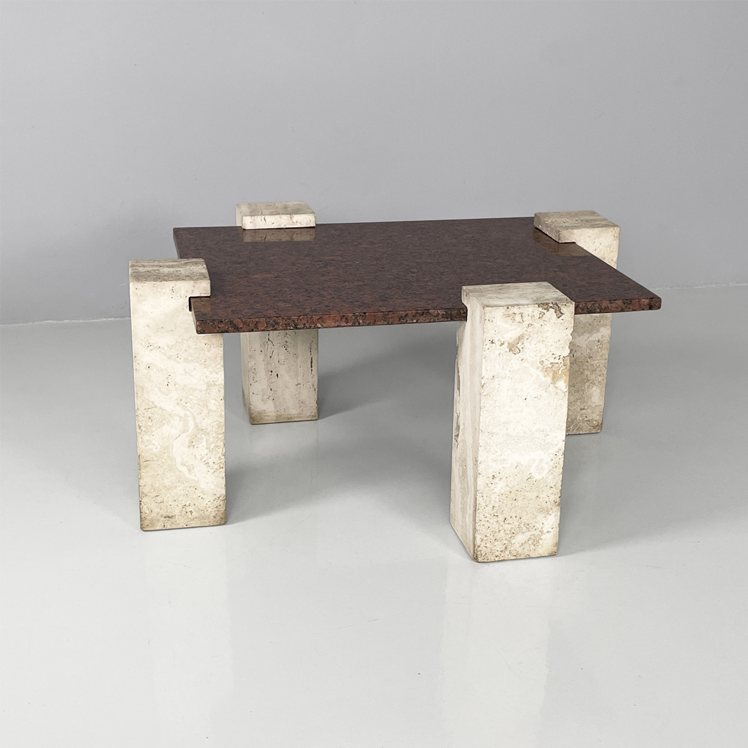 Tavolo da caffè in granito rosso e travertino, 1970 ca.