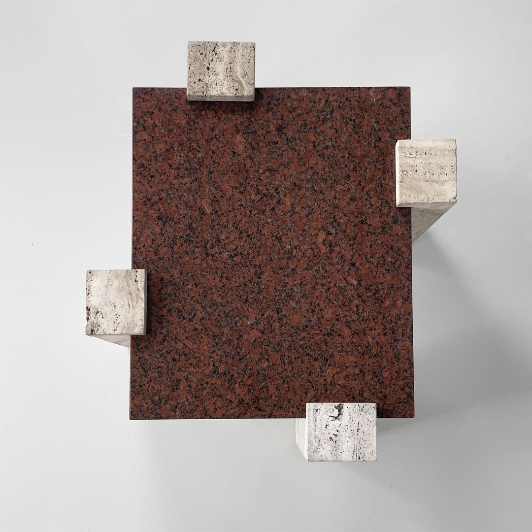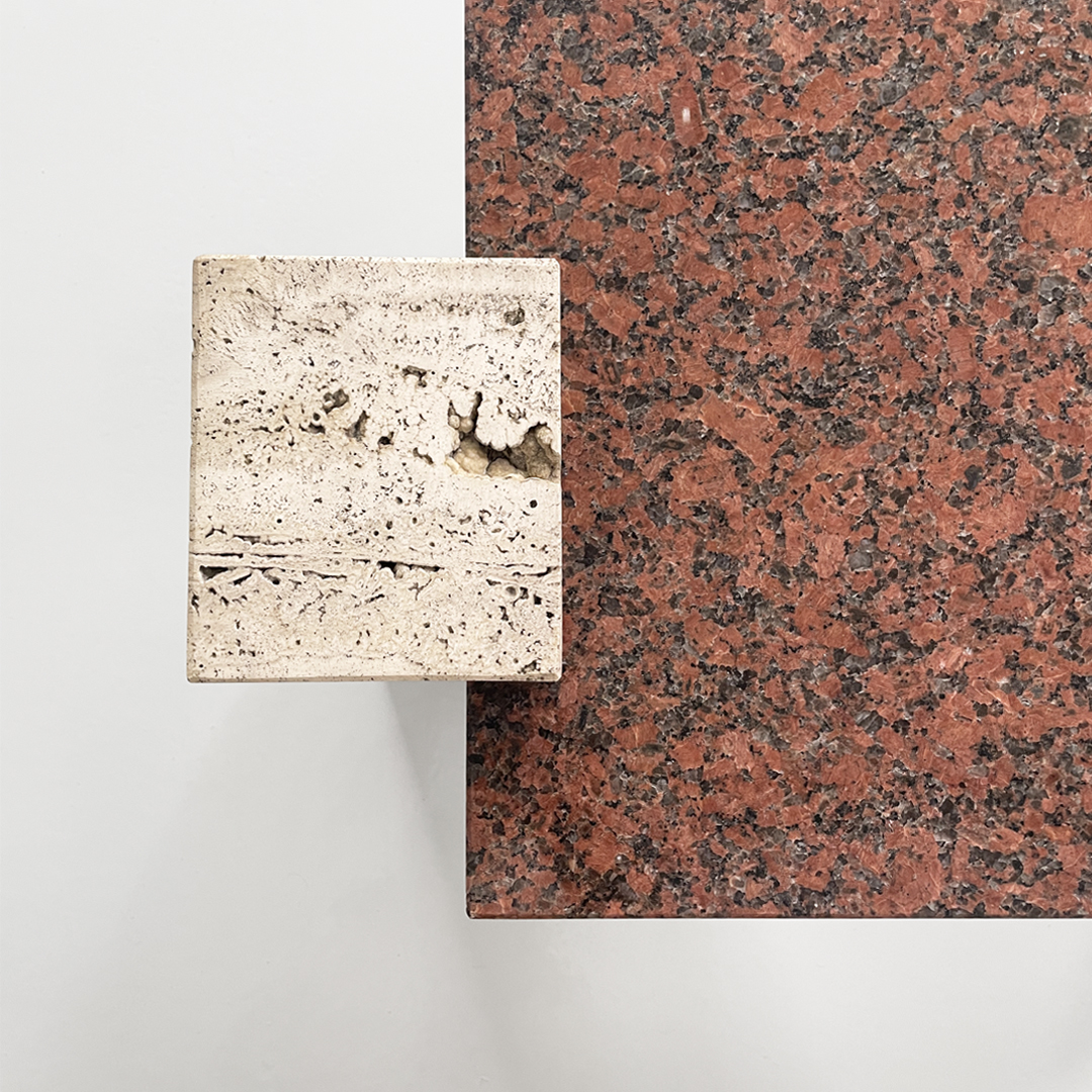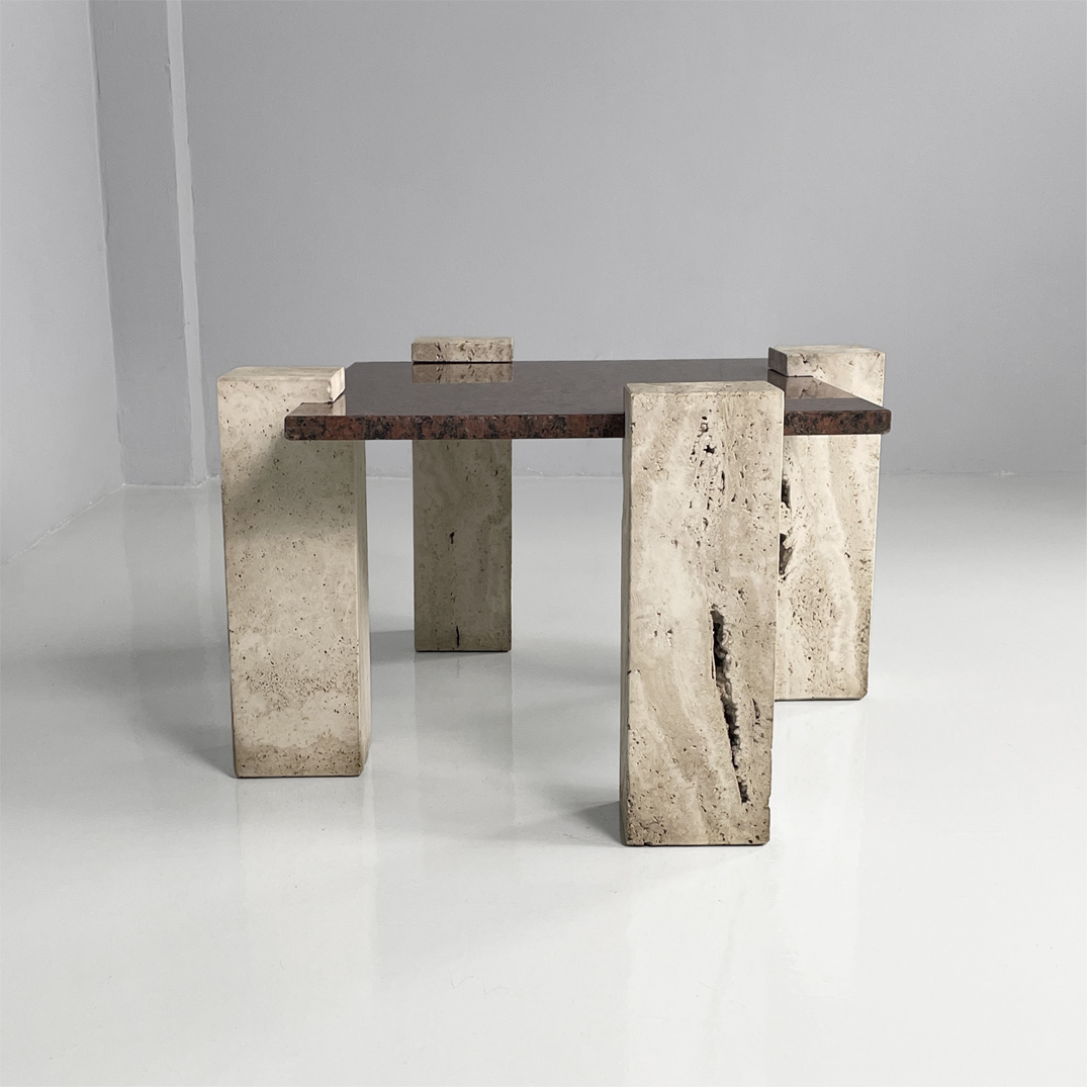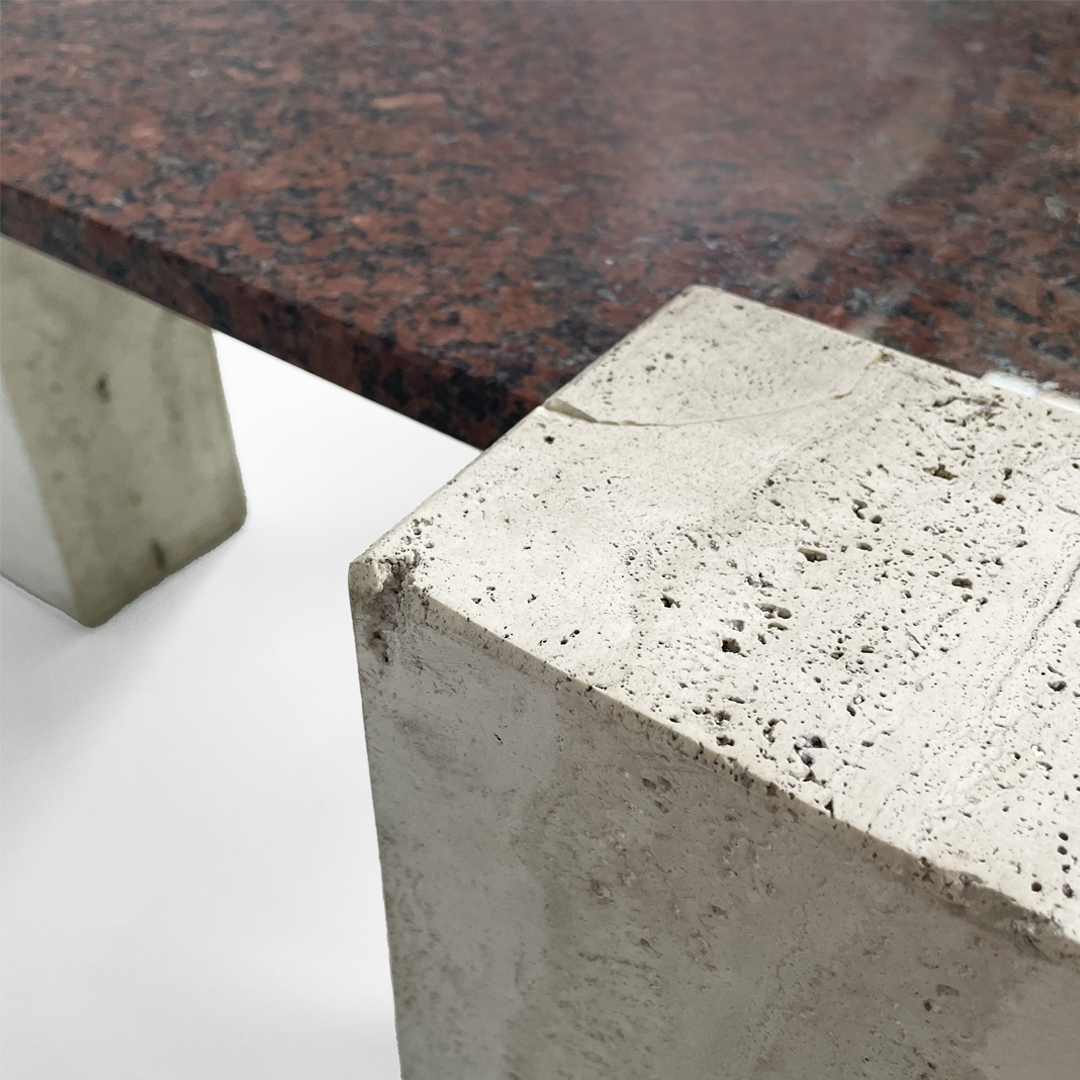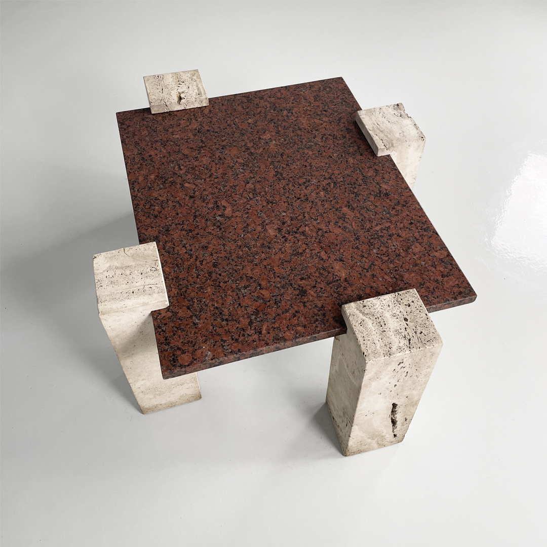 Tavolo da caffè in granito rosso e travertino, 1970 ca.