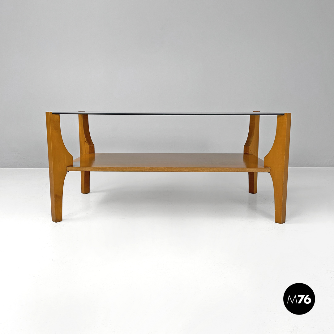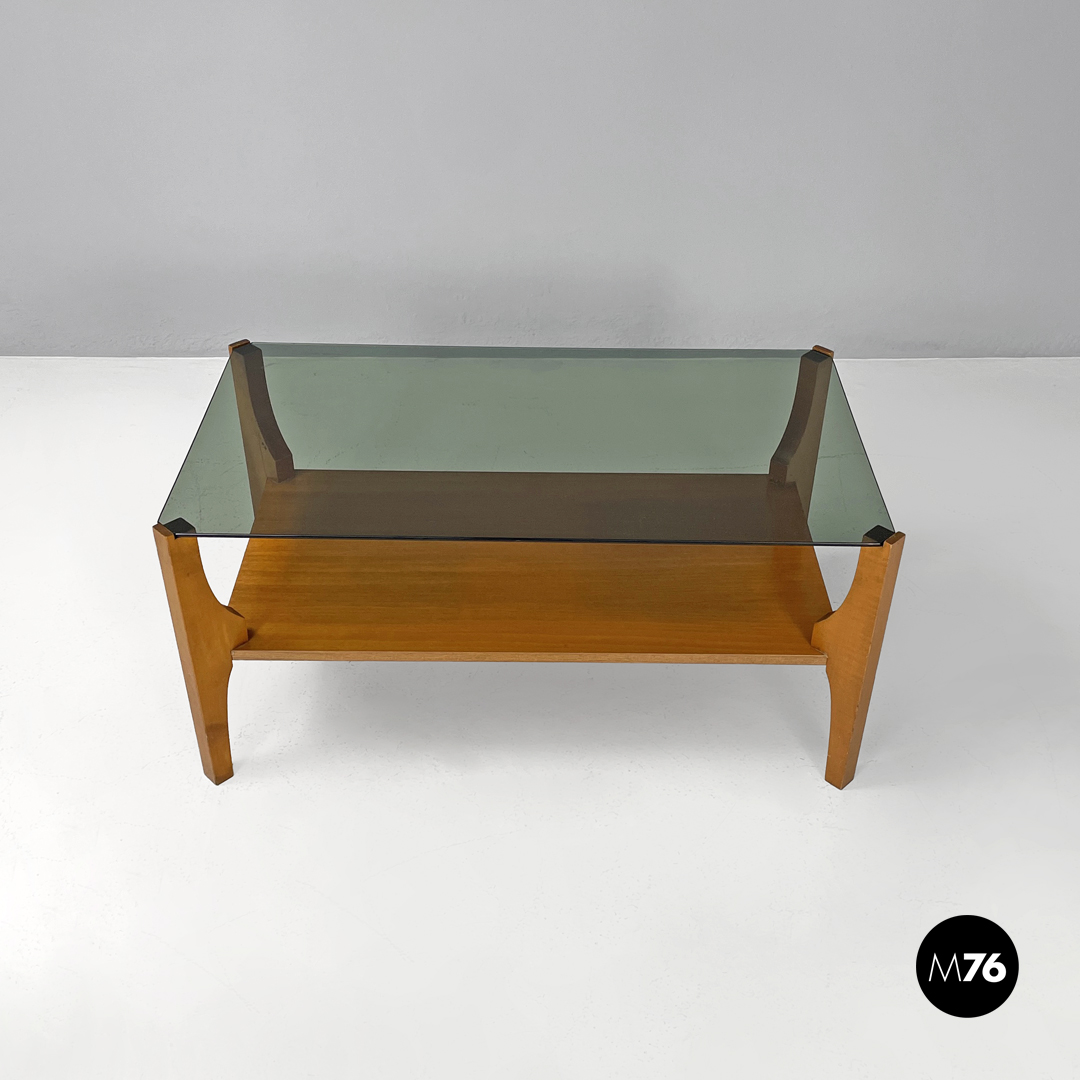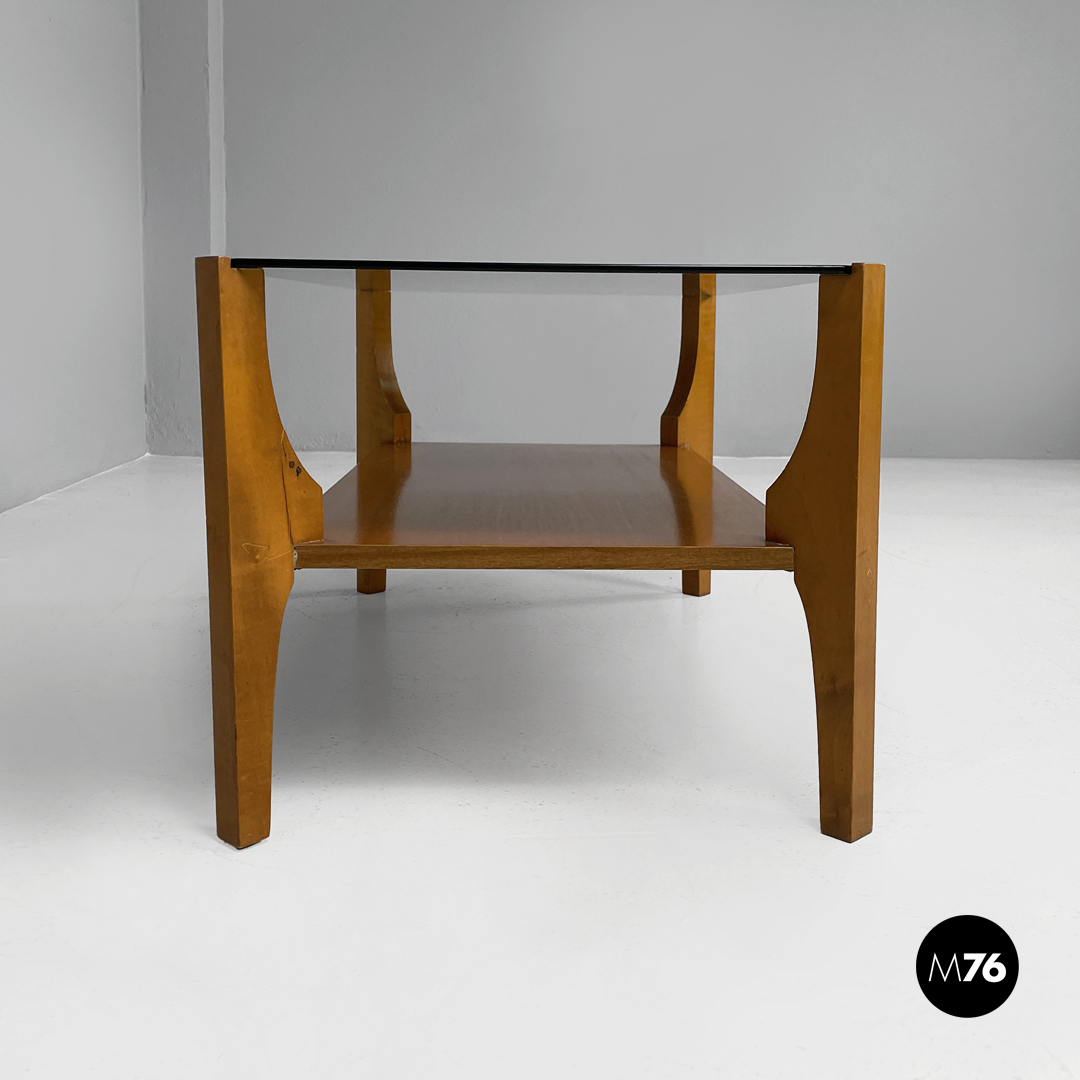 Tavolo da caffè in legno con piano in vetro fumè, 1960 ca.
