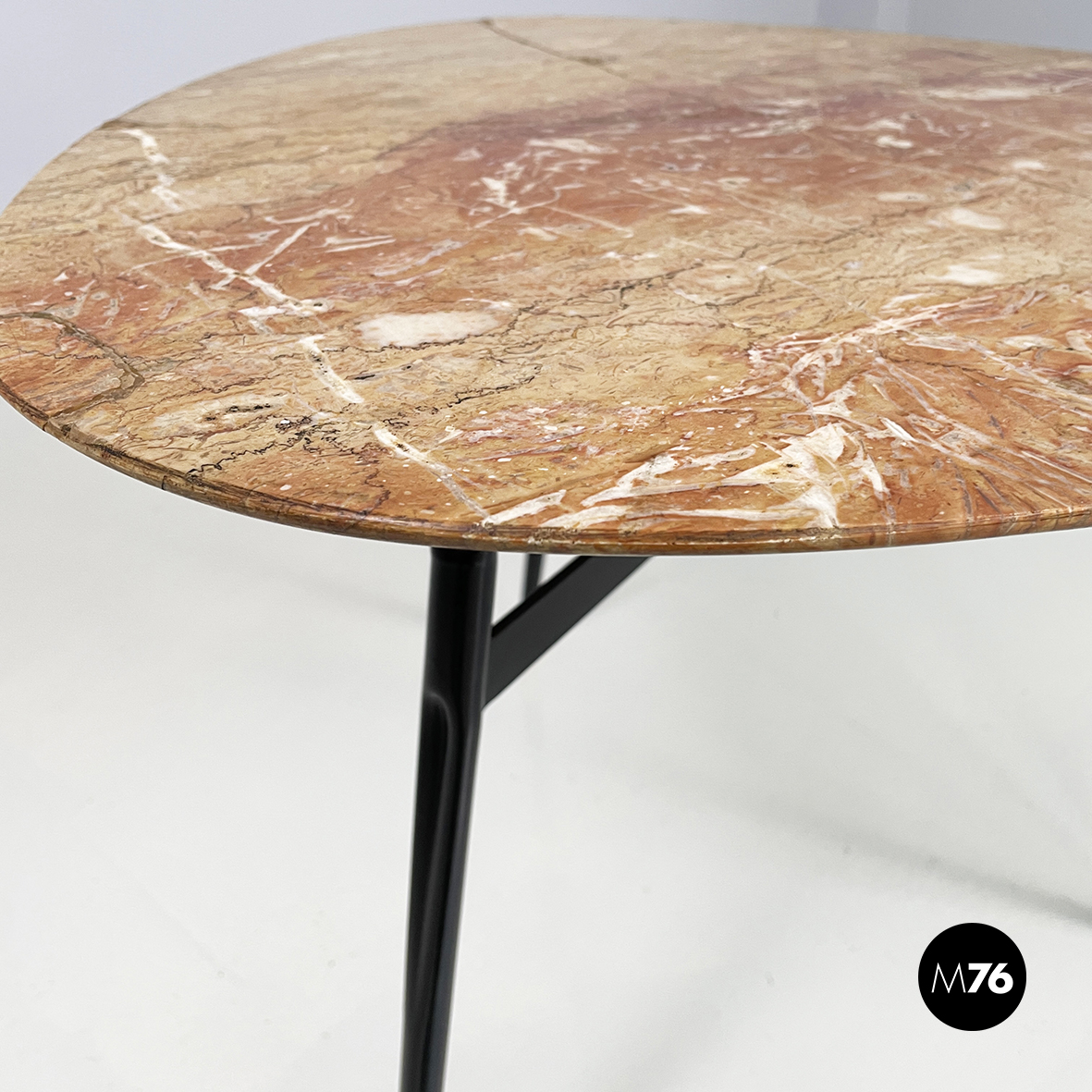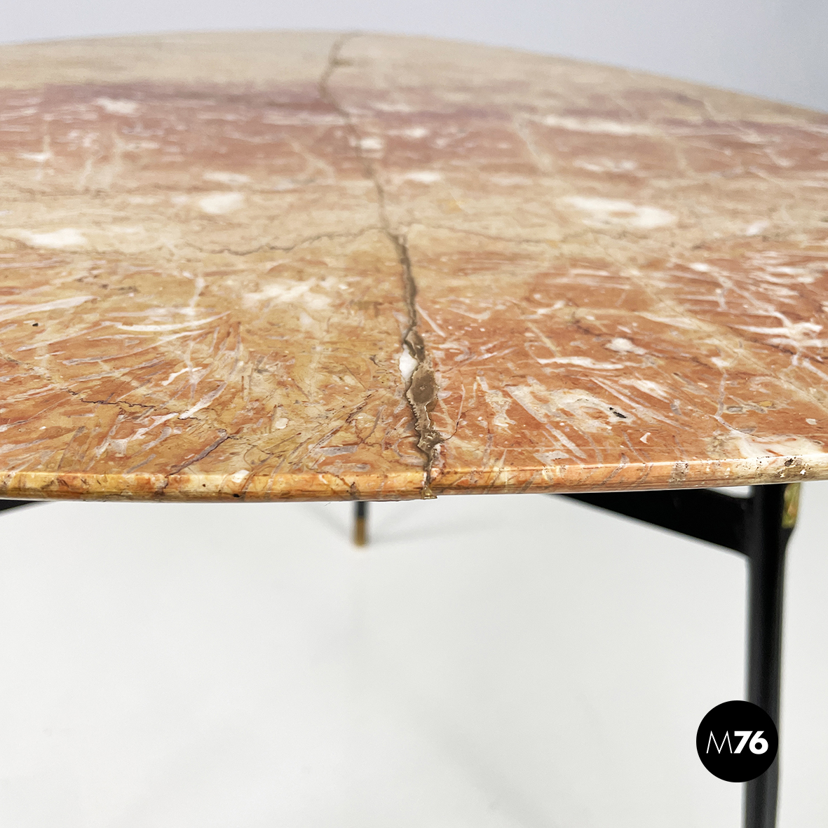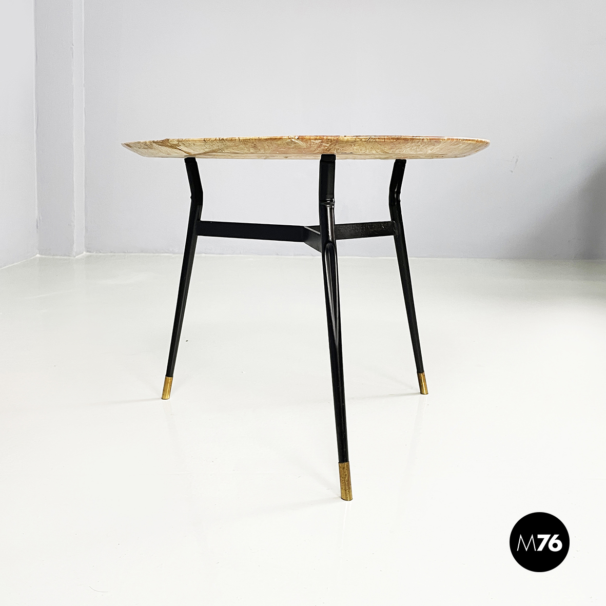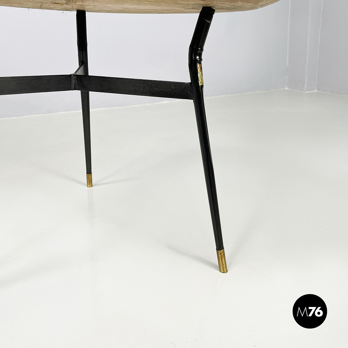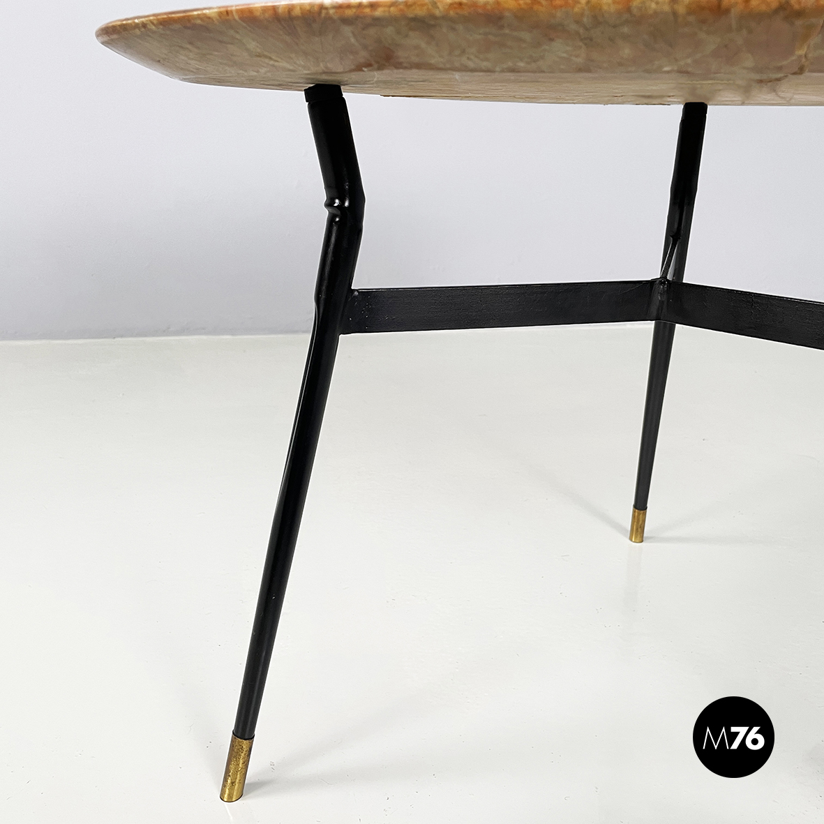 Tavolo da caffè in marmo, metallo nero e ottone, 1960 ca.