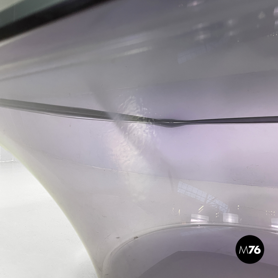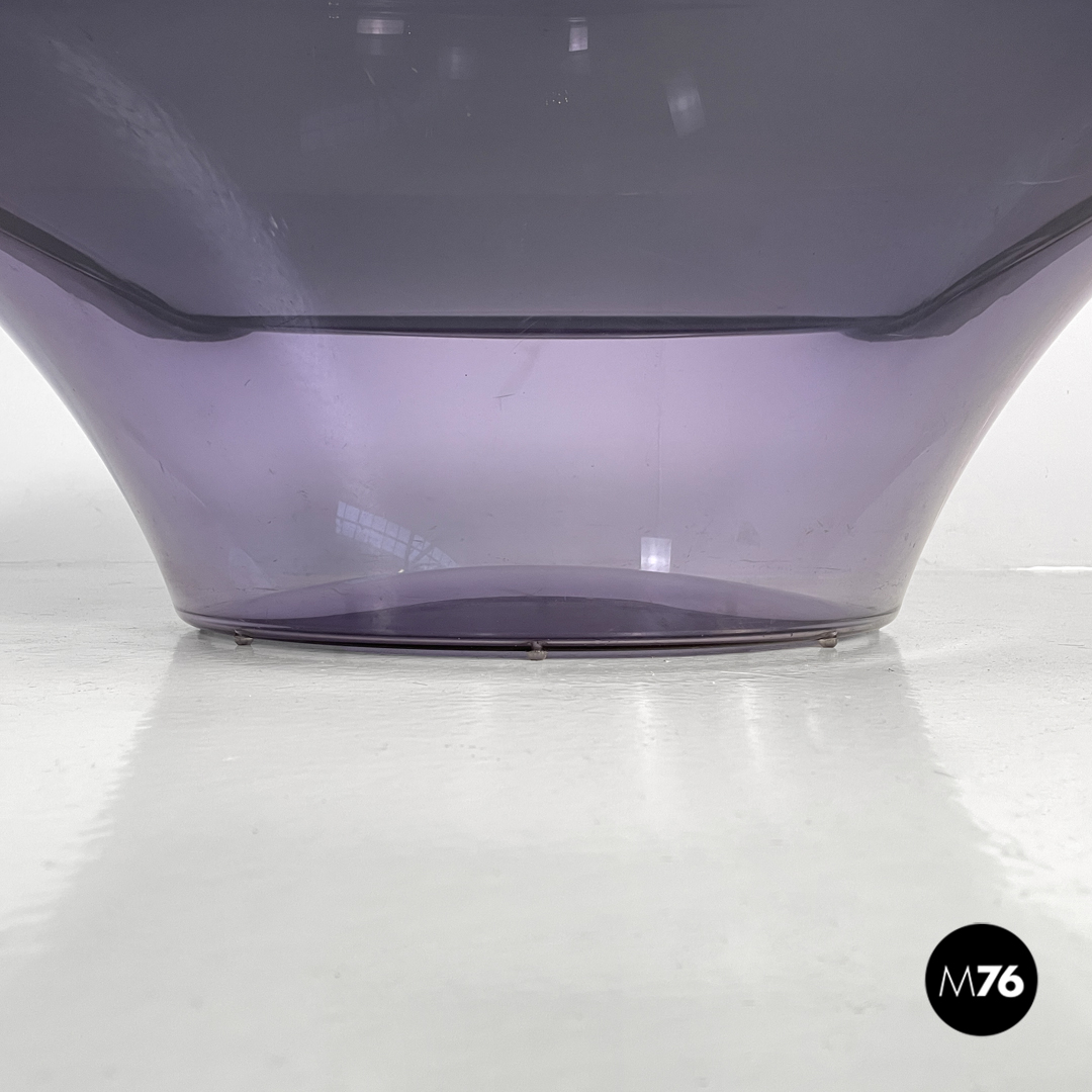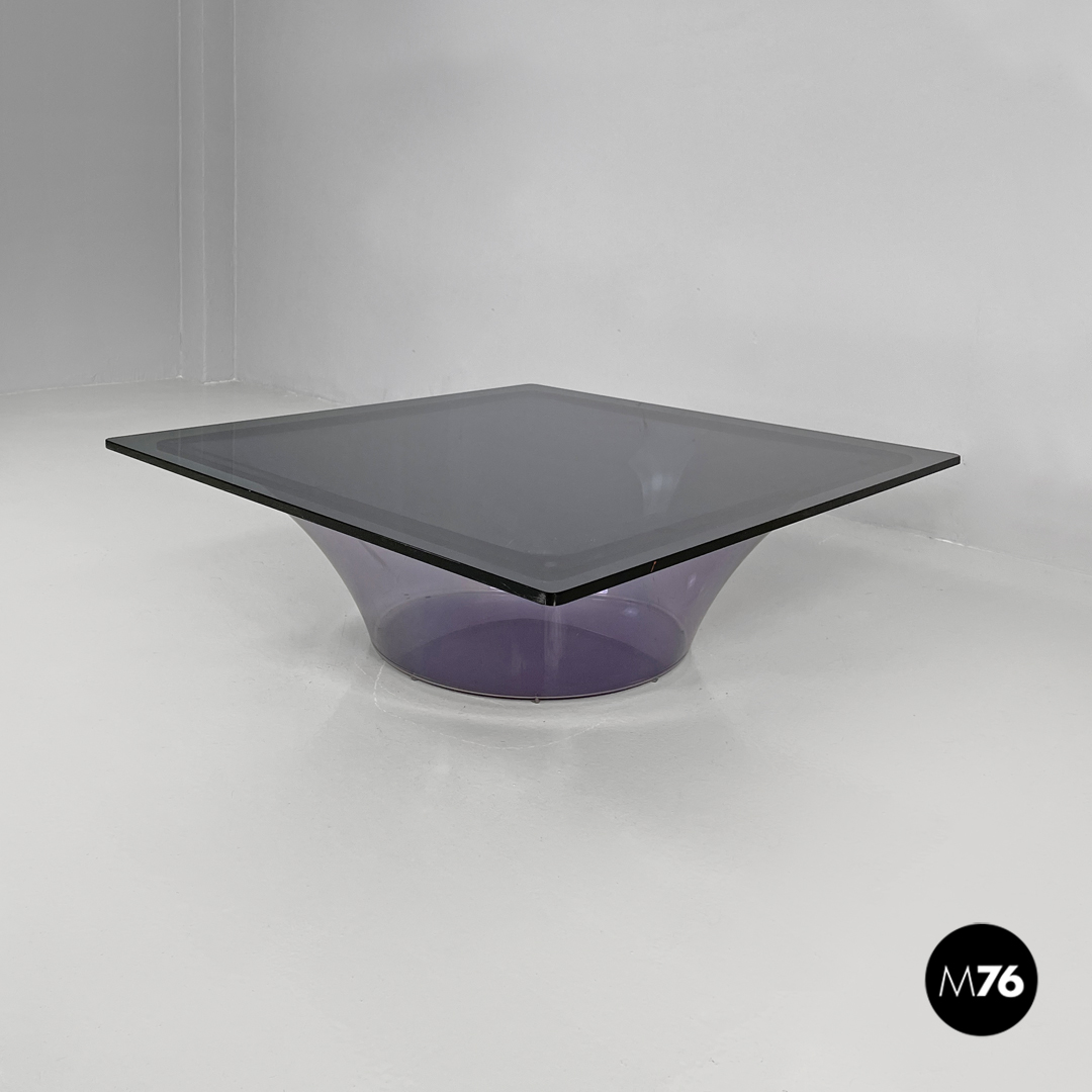 Tavolo da caffè in plexiglass viola e vetro fumè, 1970 ca.