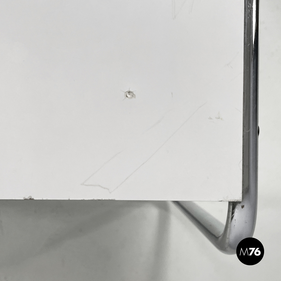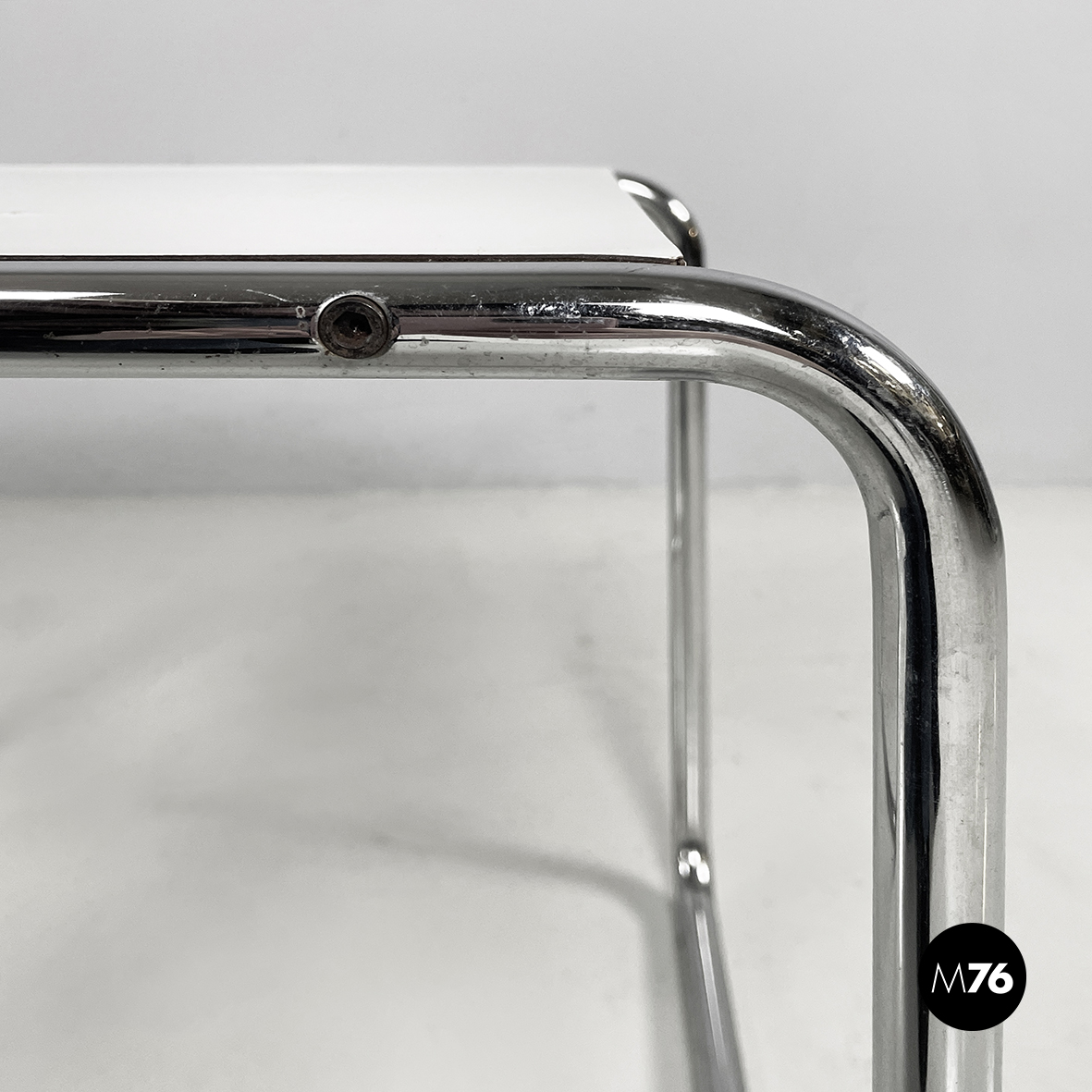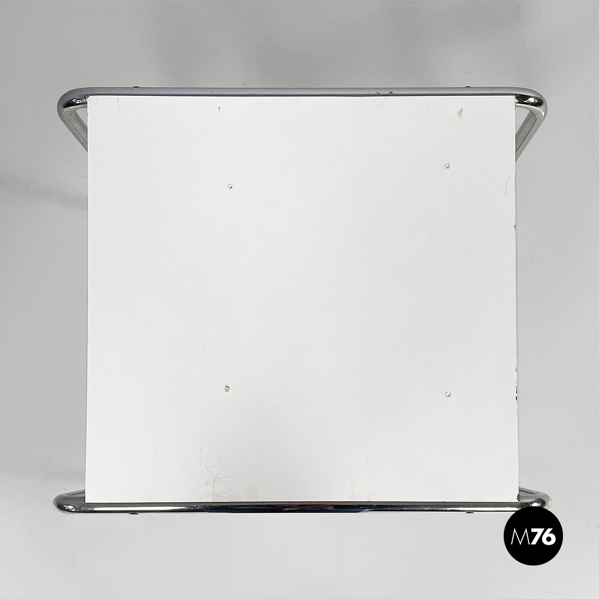 Coffee table mod. Laccio with squared top in white painted wood. The structure is in chromed tubular steel.