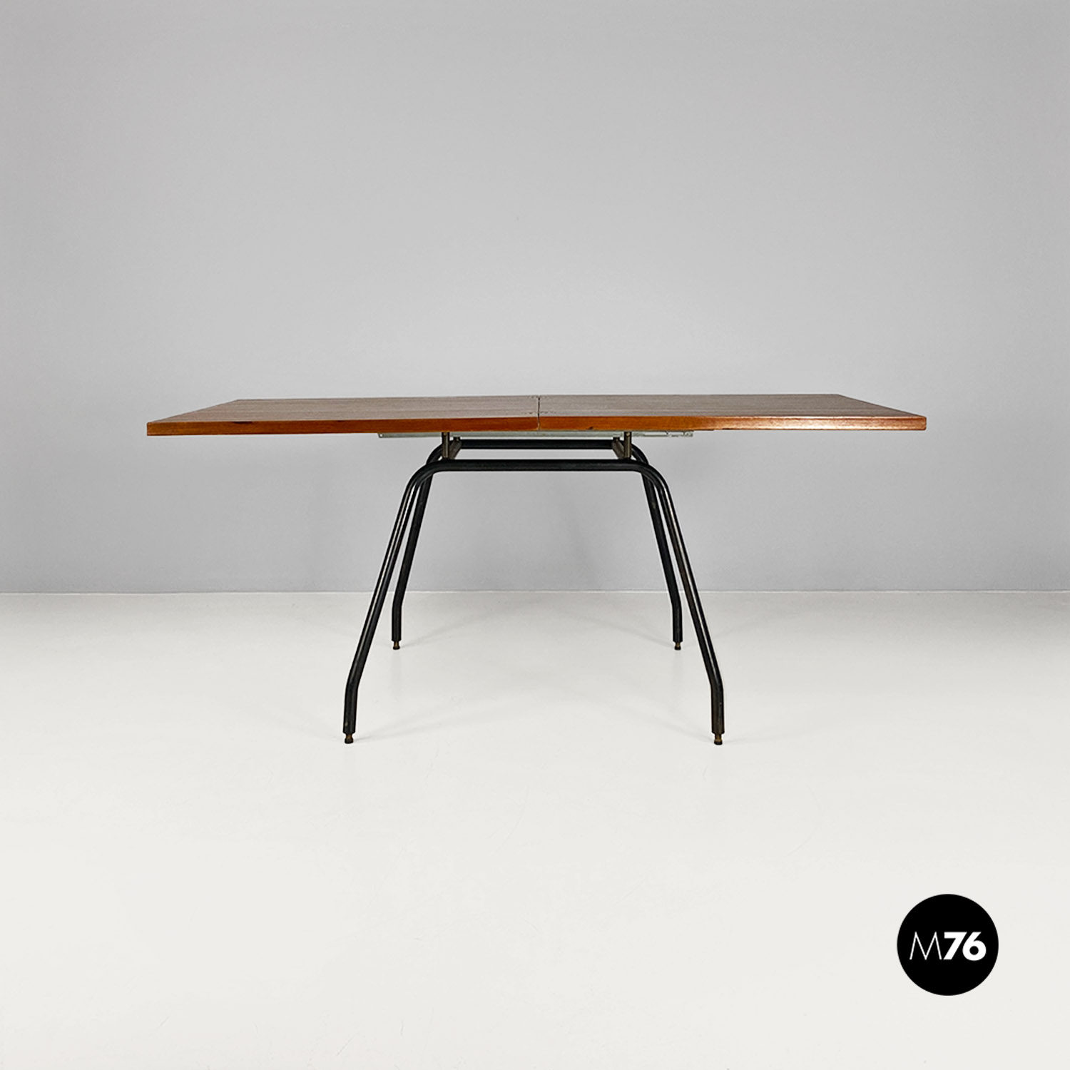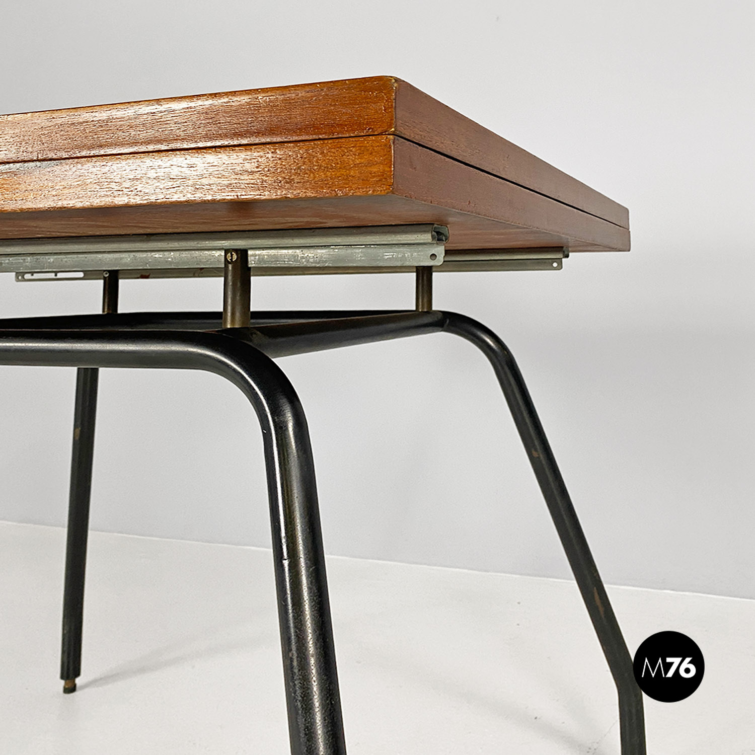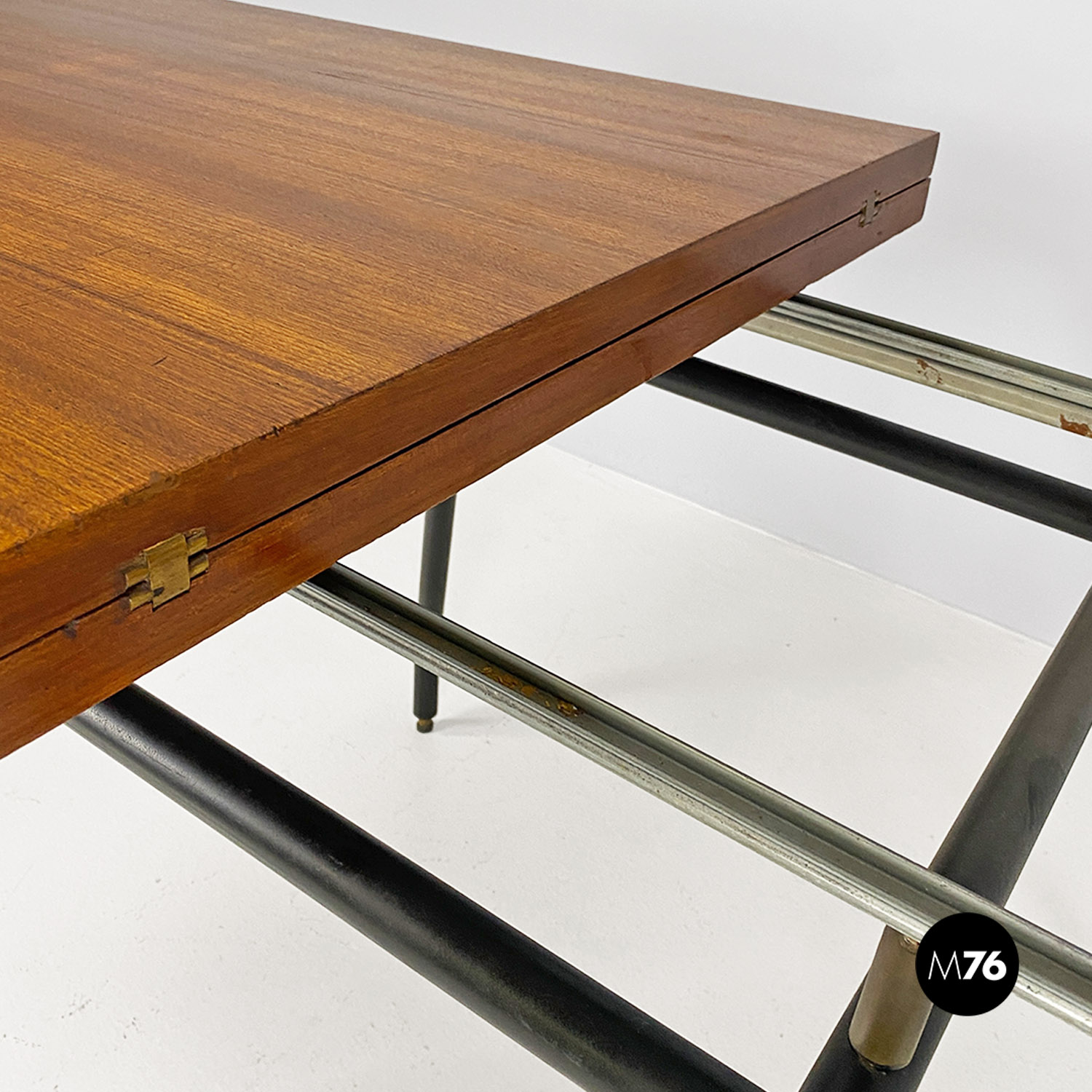 Tavolo da pranzo allungabile in metallo e legno, 1960 ca.