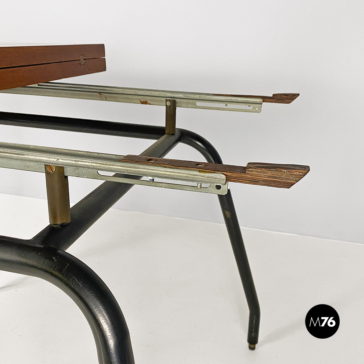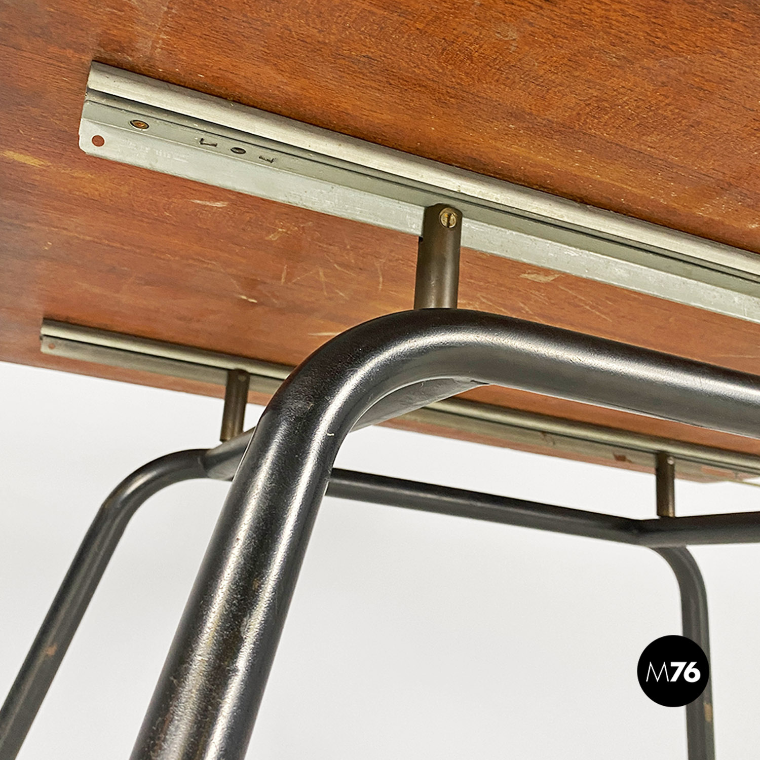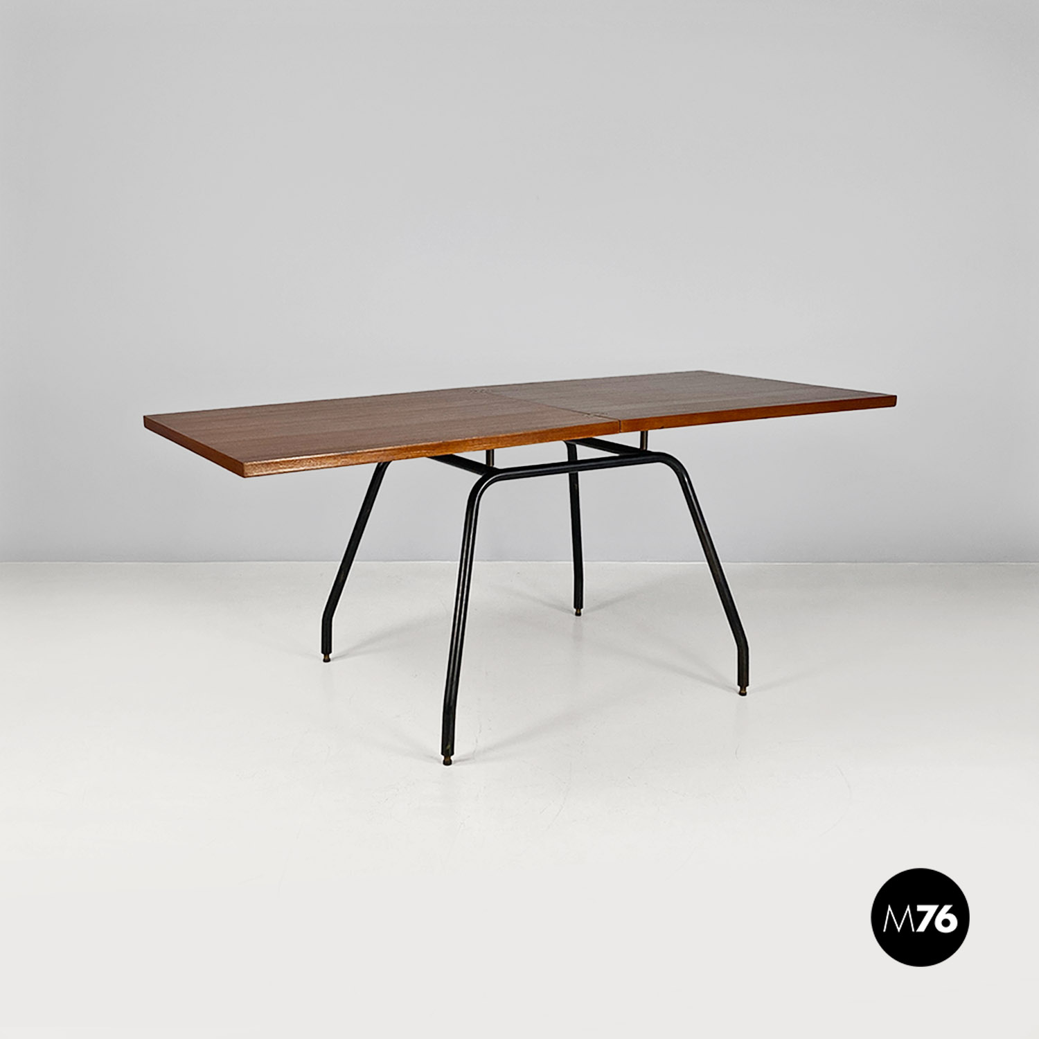 Tavolo da pranzo allungabile in metallo e legno, 1960 ca.