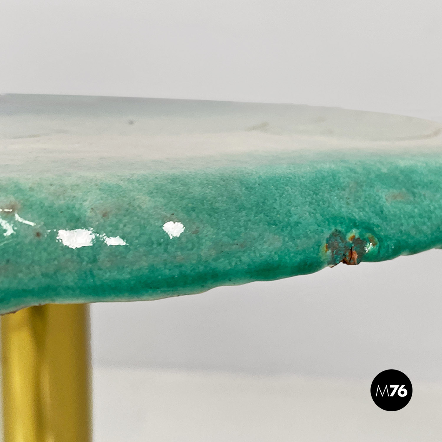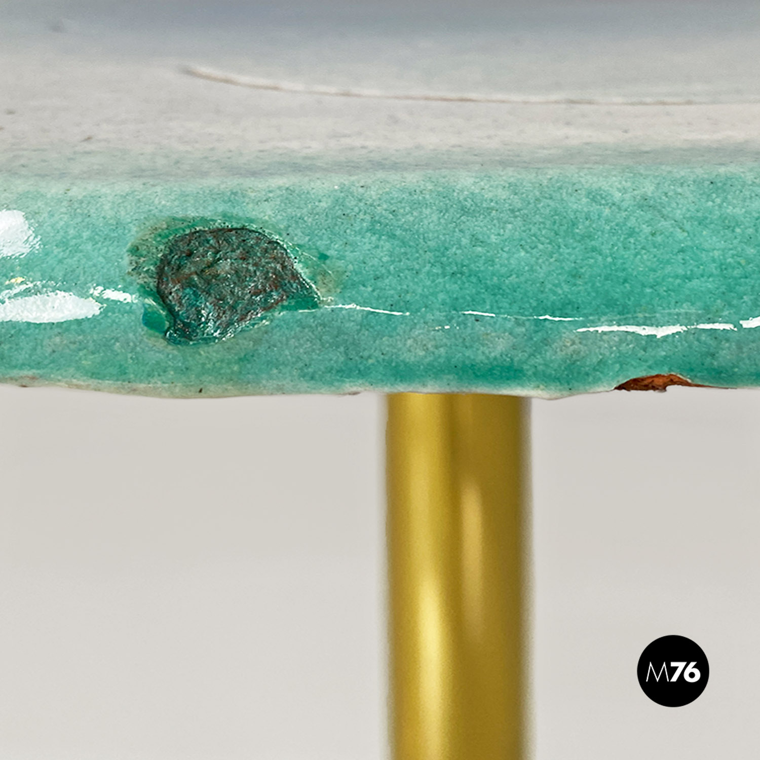 Tavolo da pranzo in ceramica e ottone, 1980 ca.