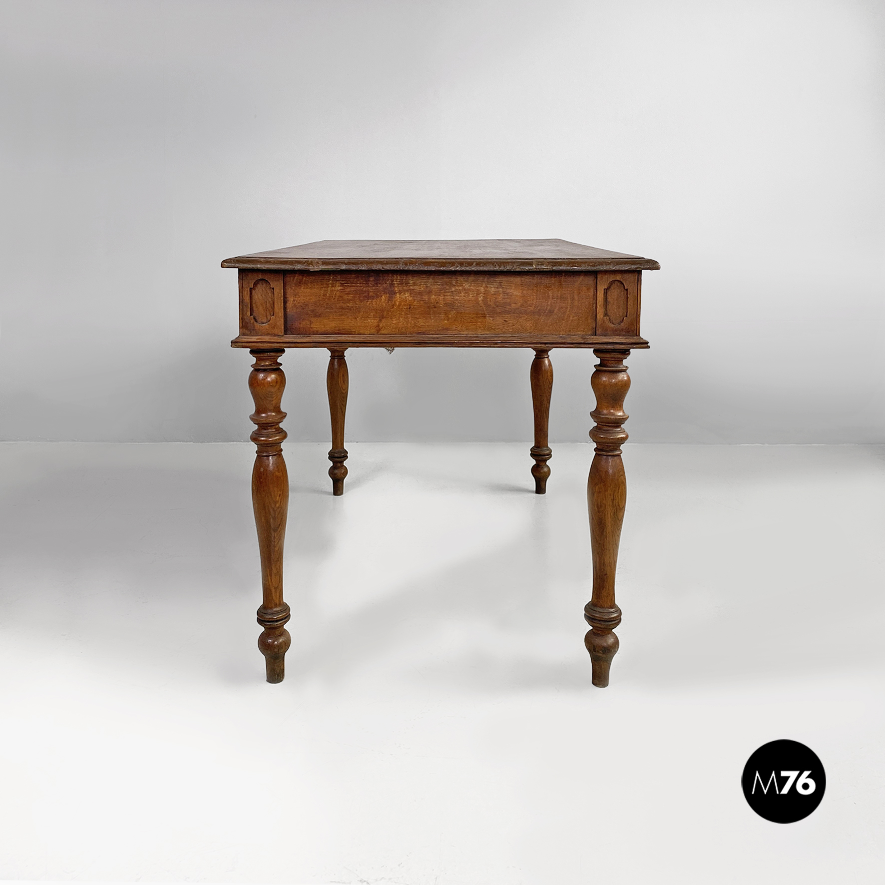 Tavolo antico da pranzo in legno con due cassetti, 1800 ca.