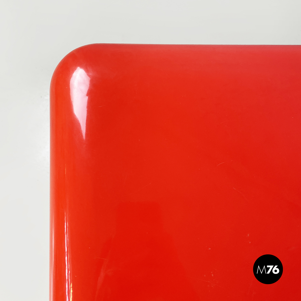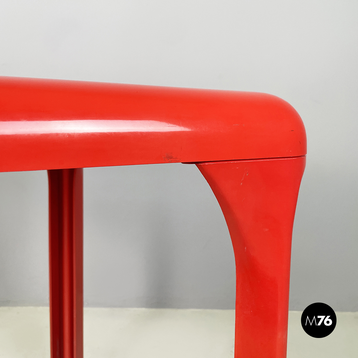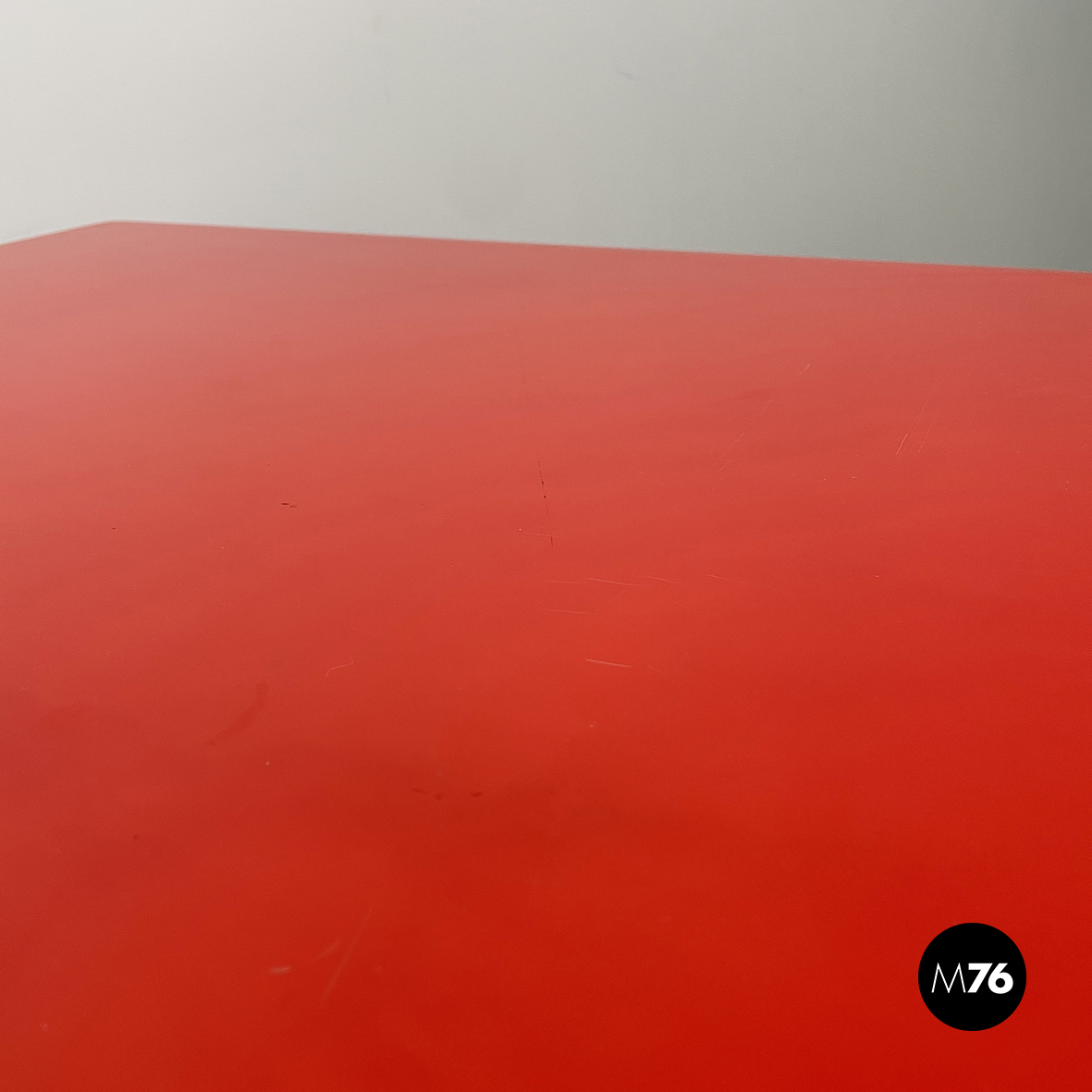 Tavolo da pranzo modello Stadio con piano quadrato ed angoli arrotondati Interamente in plastica ABS rossa. Le zampe presentano una scanalatura. Adatto ad uso esterno com in giardino.