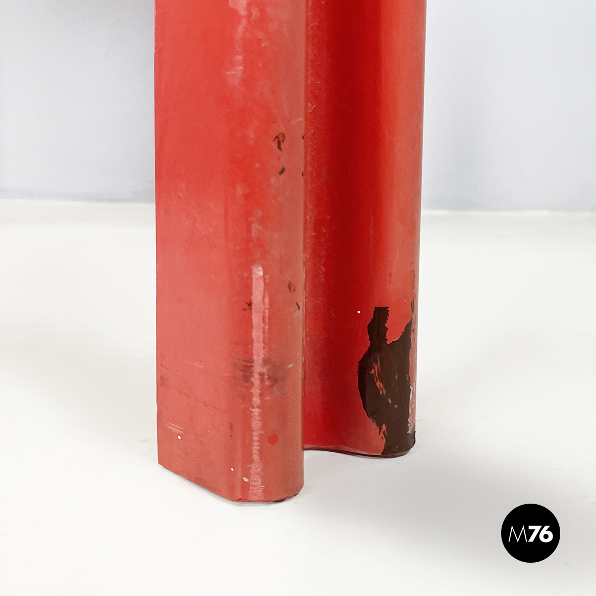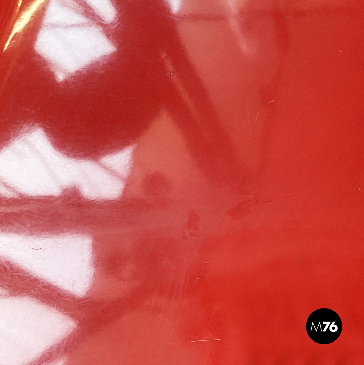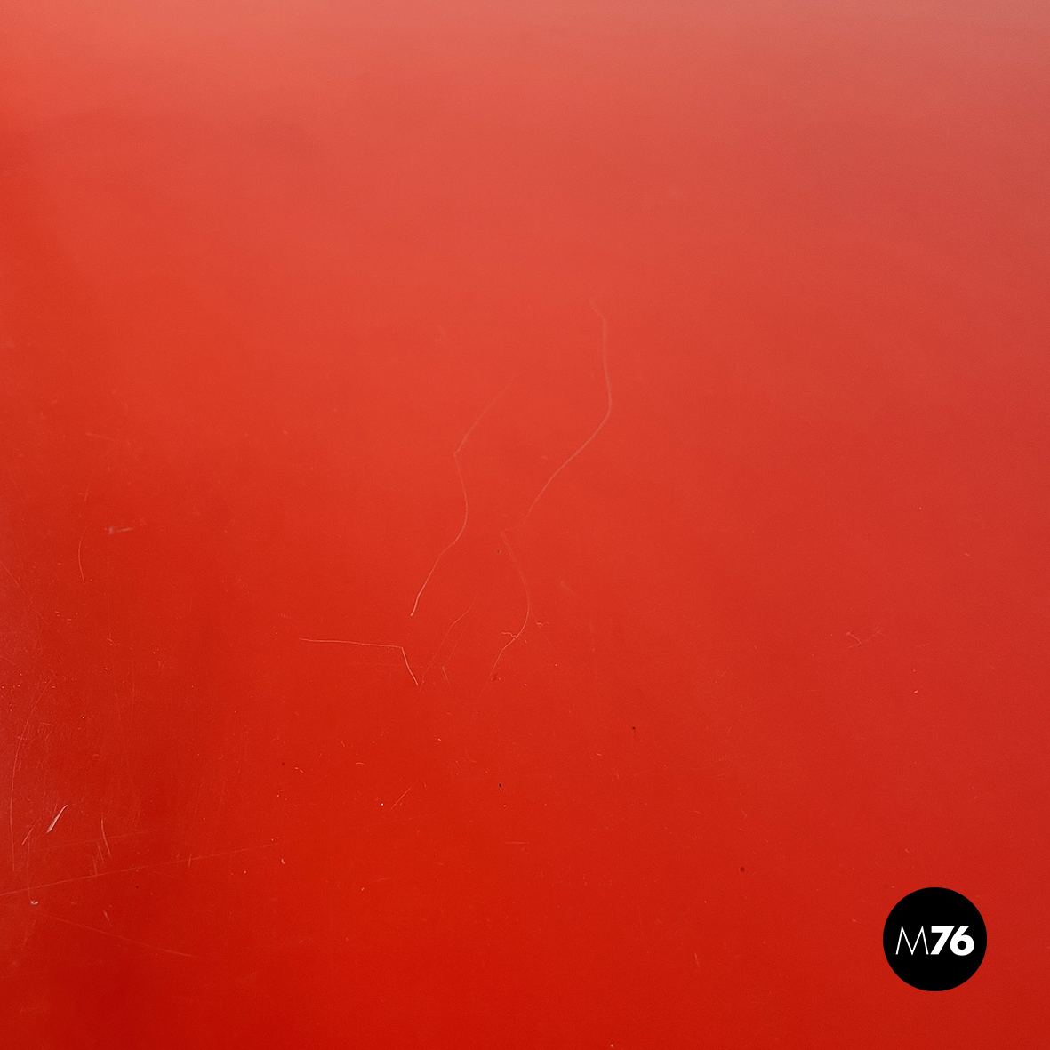 Tavolo da pranzo modello Stadio con piano quadrato ed angoli arrotondati Interamente in plastica ABS rossa. Le zampe presentano una scanalatura. Adatto ad uso esterno com in giardino.
