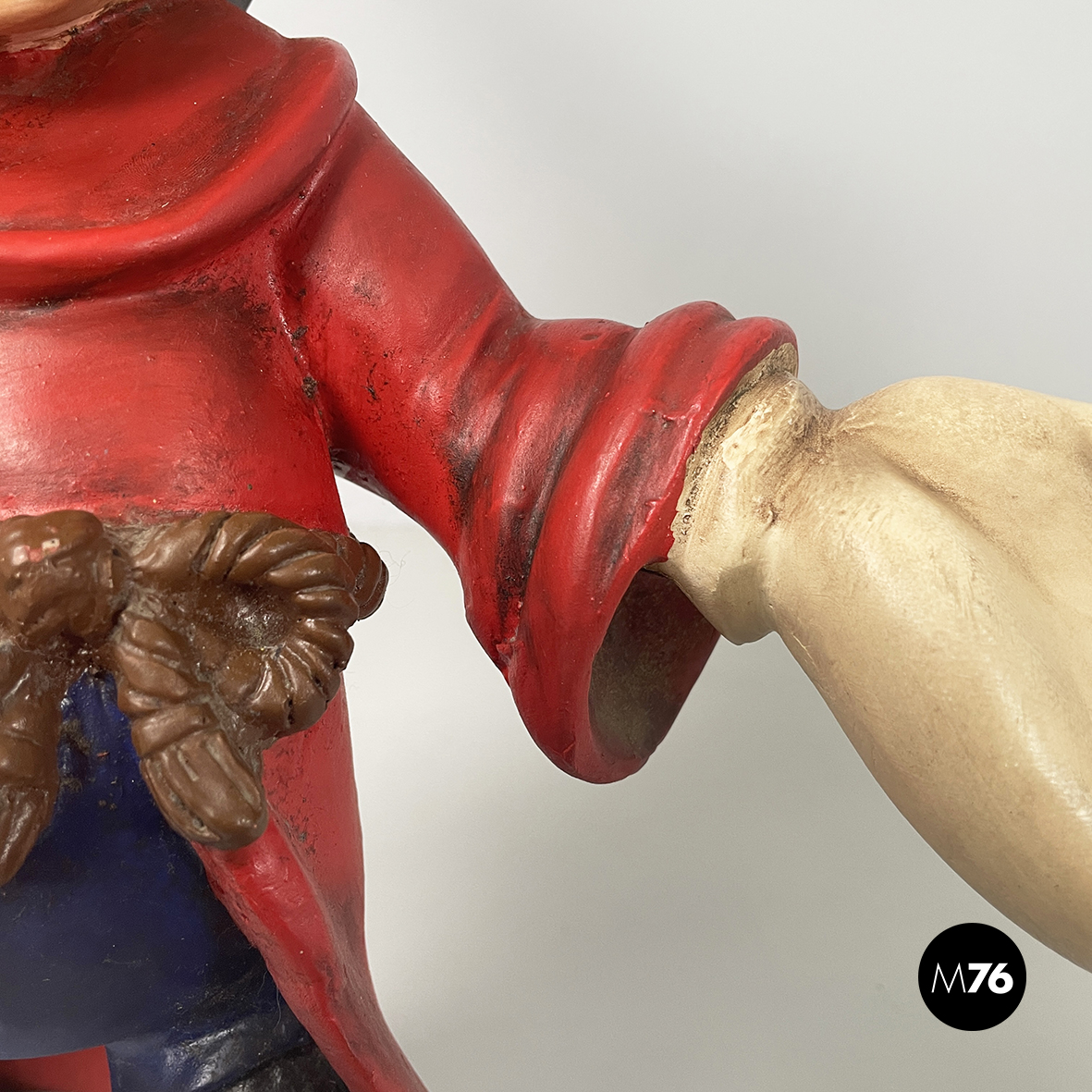 Scultura di Topolino apprendista stregone proveniente dall’iconico film Fantasia. Il personaggio vestito con un mantello rosso il cappello blu con luna e stelle bianche e guanti bianchi è in piedi con un dito rivolto verso l’alto. La statua è interamente in resina policroma dipinta.