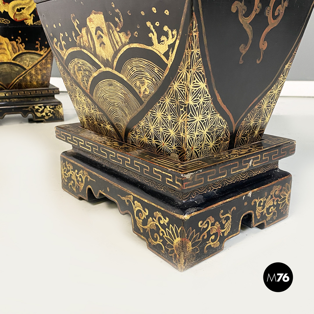 Vasi in legno nero e oro, 1950 ca.