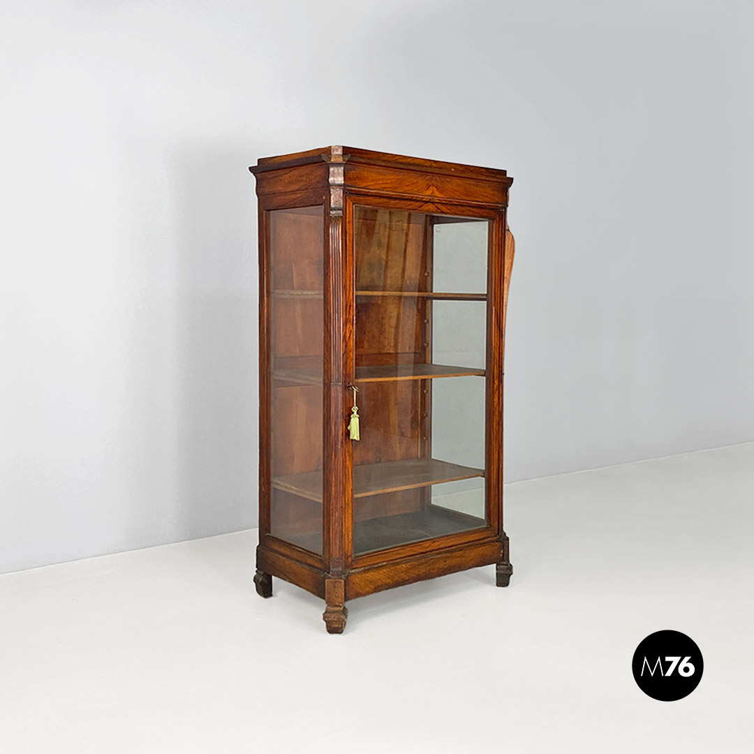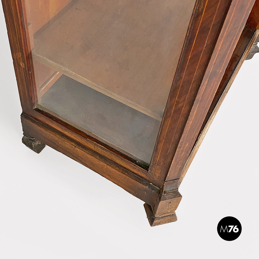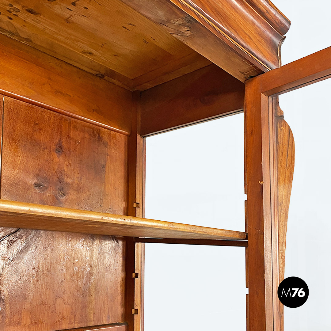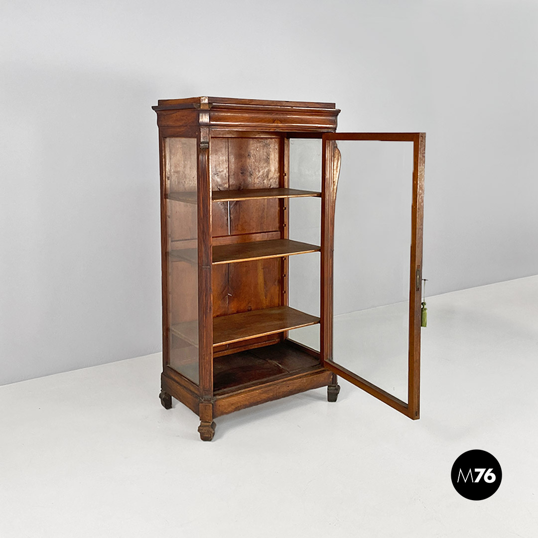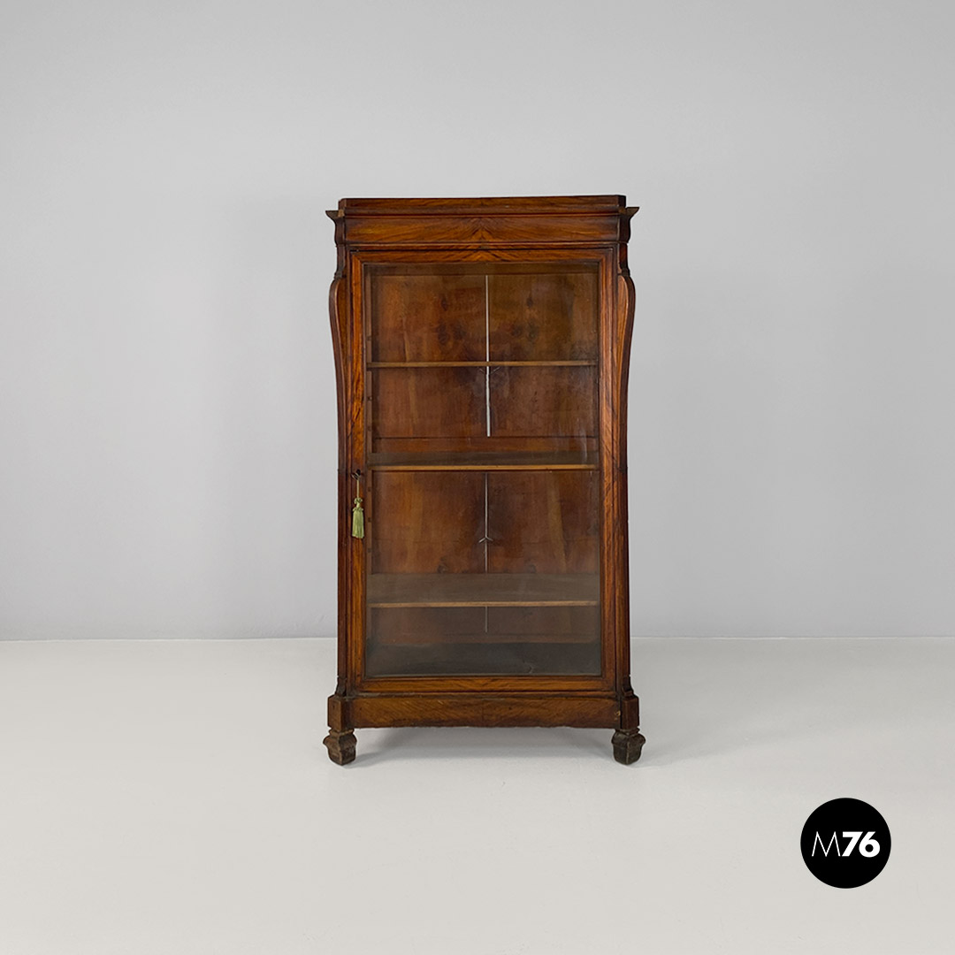 Vetrina antica in legno con ripiani interni e anta a vetro originale dell’epoca.